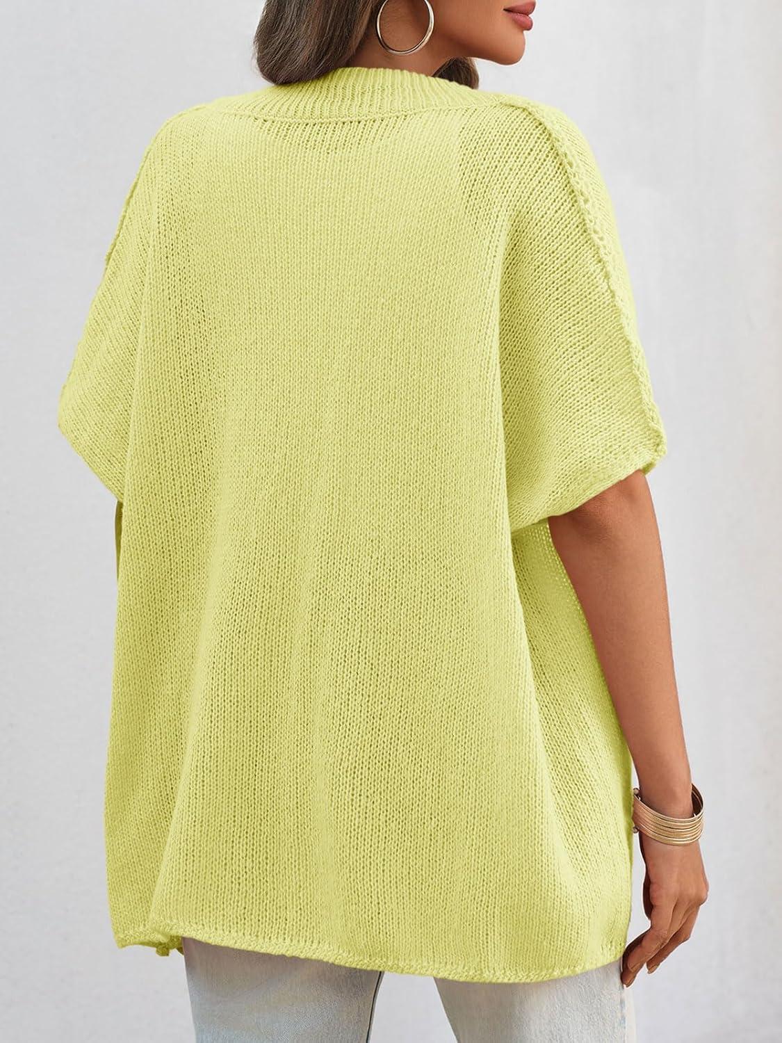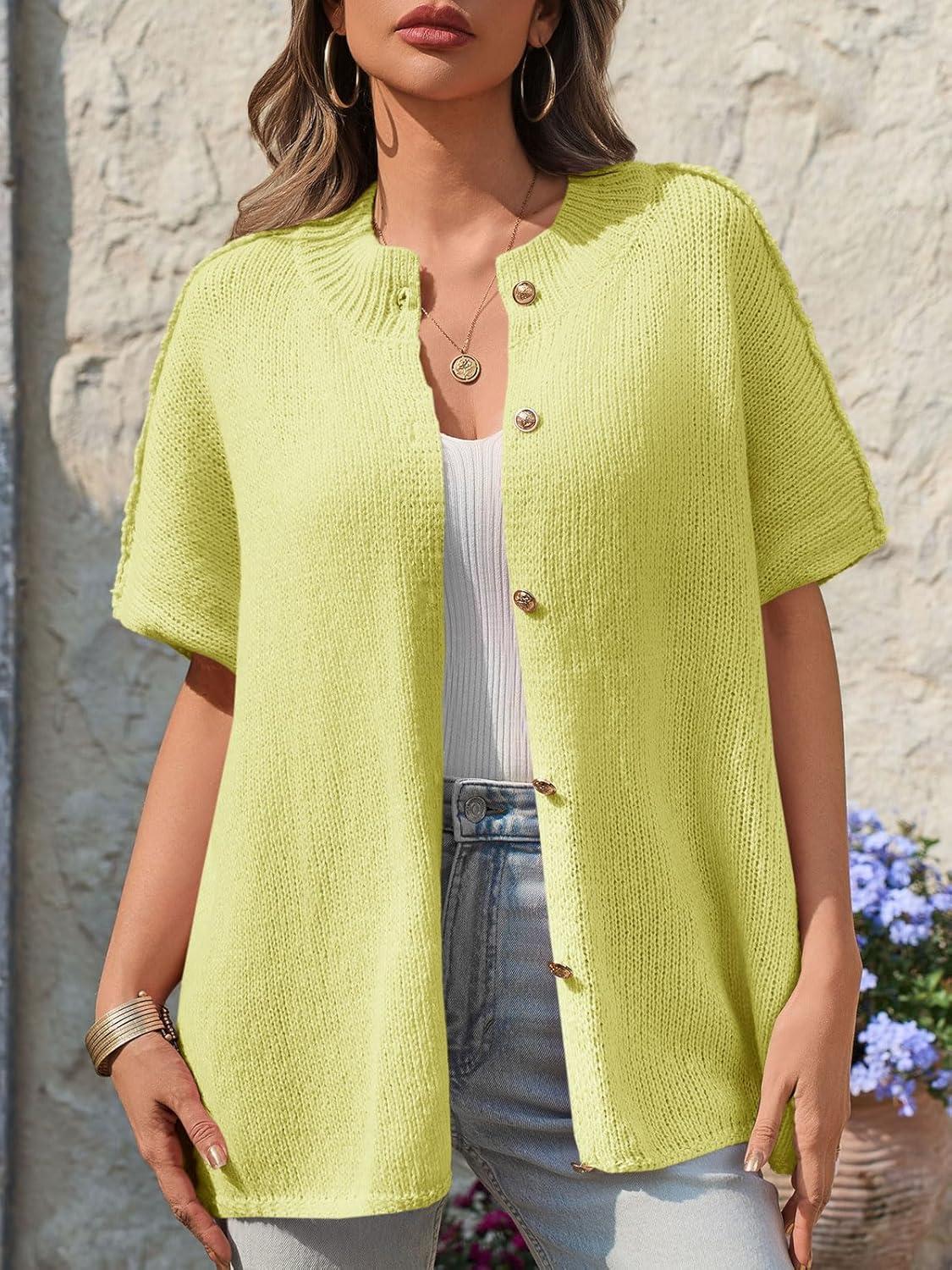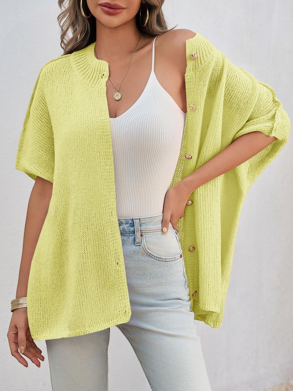 Saodimallsu Womens Oversized Cardigan Sweaters Short Sleeve Button Down Casual Lightweight Loose Knit Trendy Cardigans(Yellow)