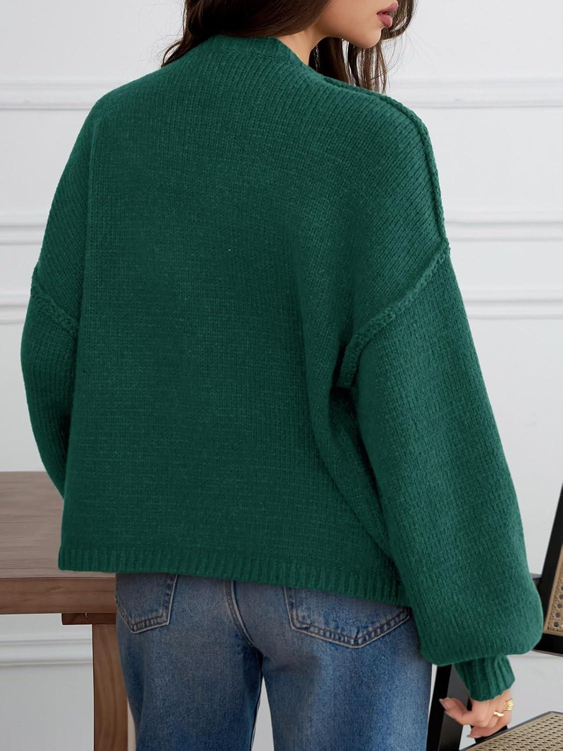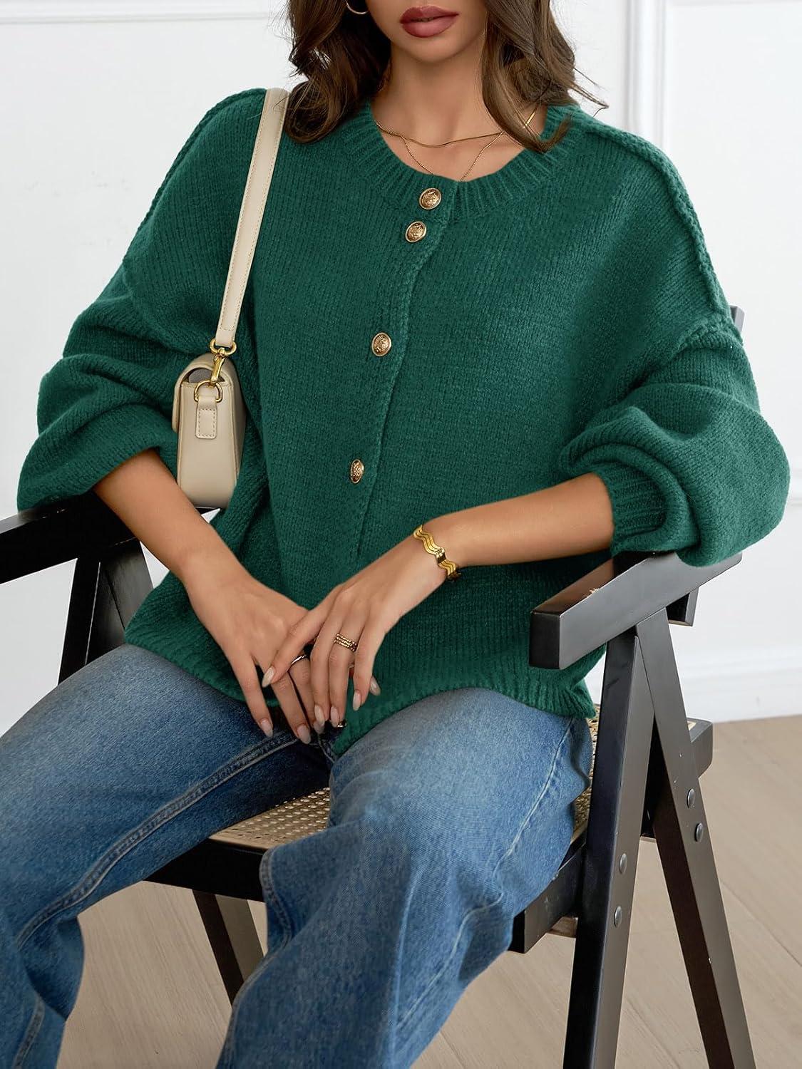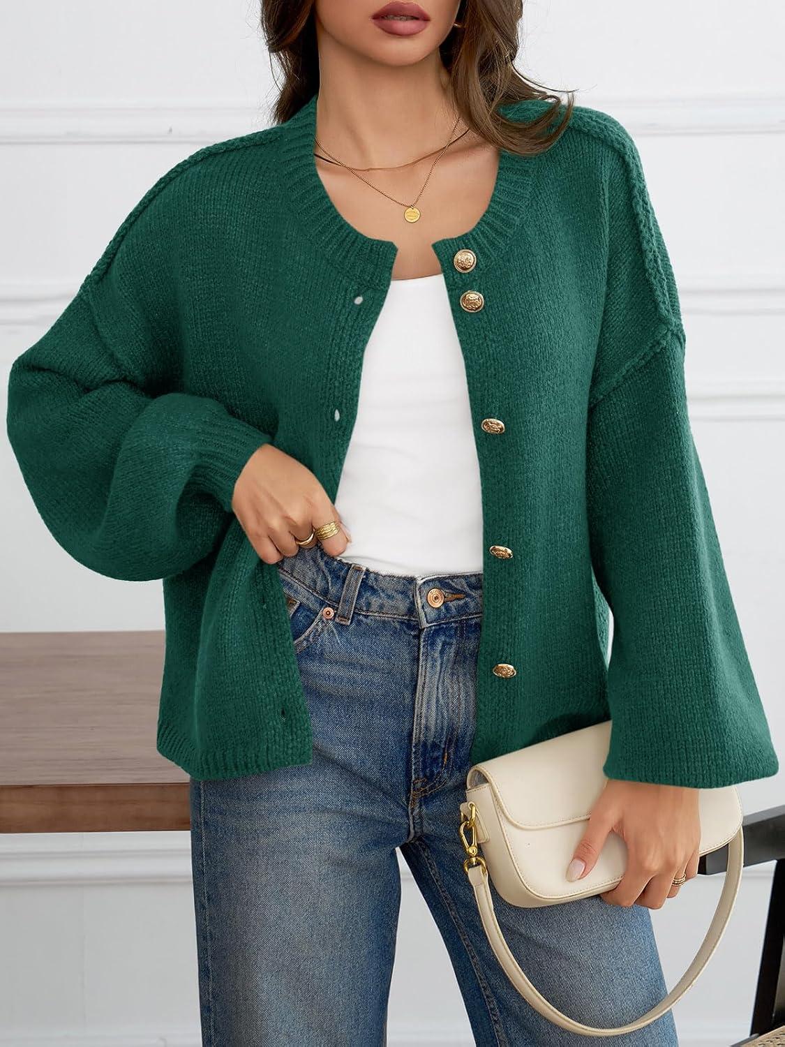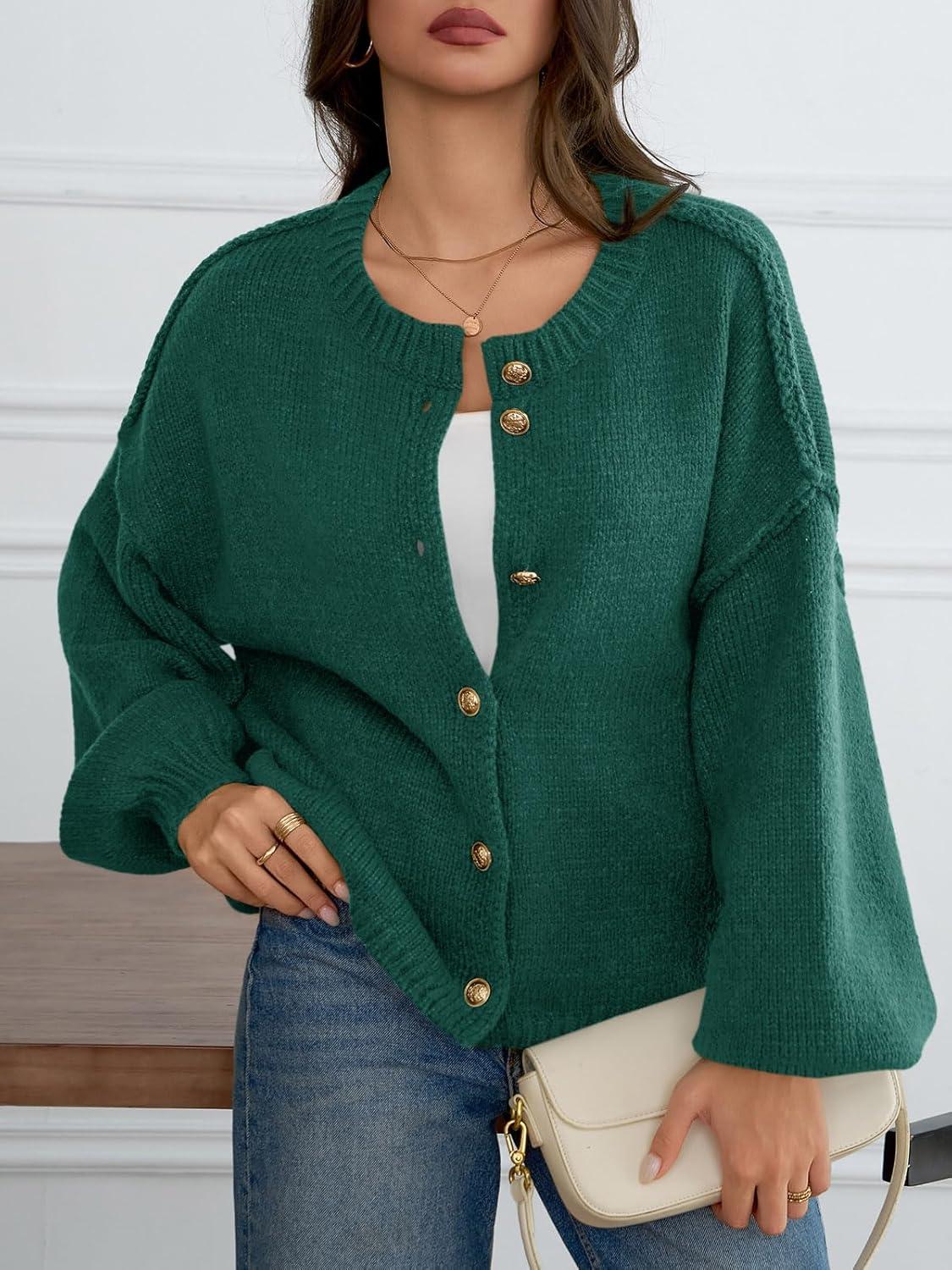 Saodimallsu Womens Oversized Cardigans Button Up Long Lantern Sleeve Chunky Knit Casual Soft Fall Sweater Coats(Green)
