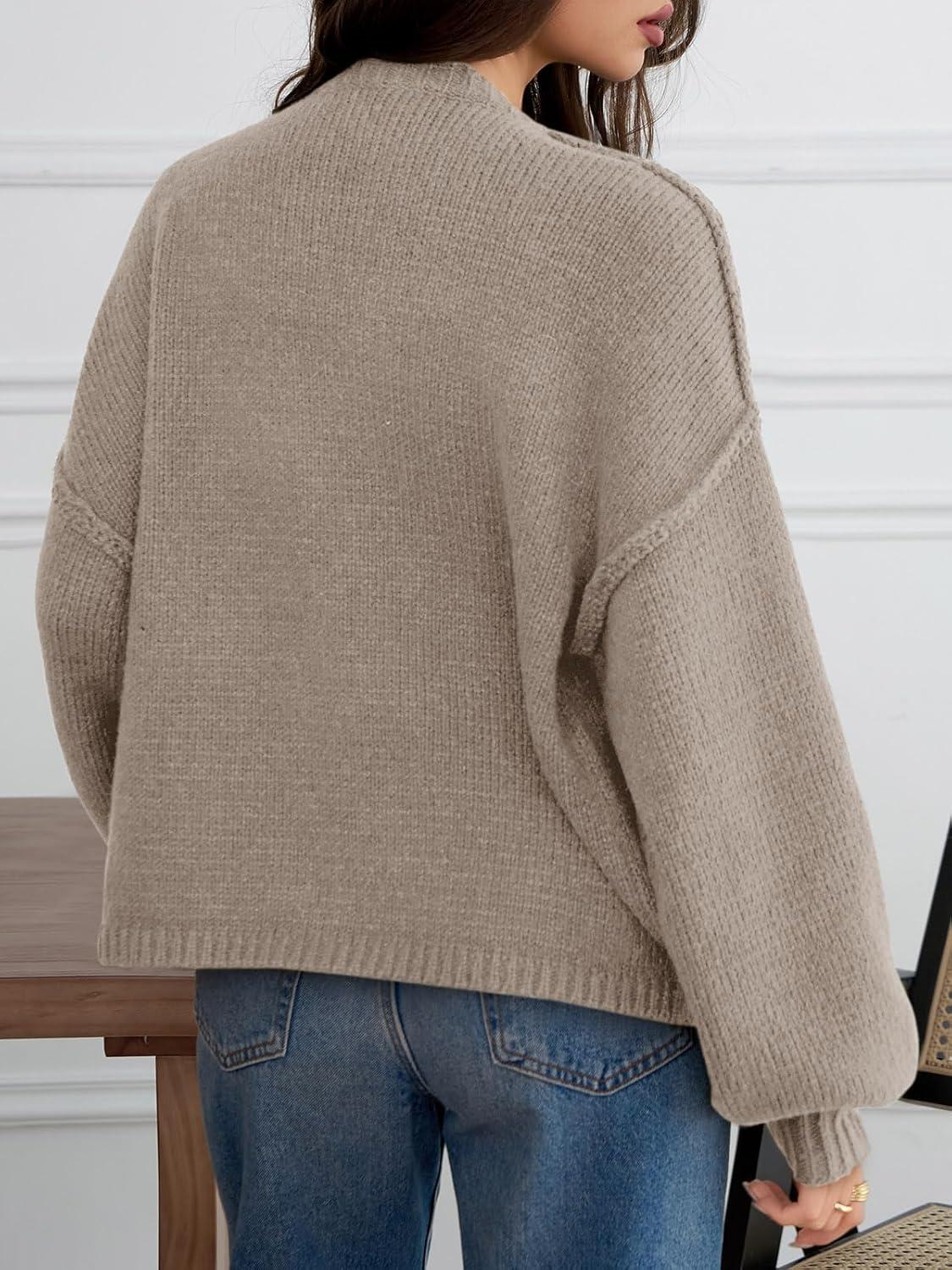 Saodimallsu Womens Oversized Cardigans Button Up Long Lantern Sleeve Chunky Knit Casual Soft Fall Sweater Coats(Khaki)