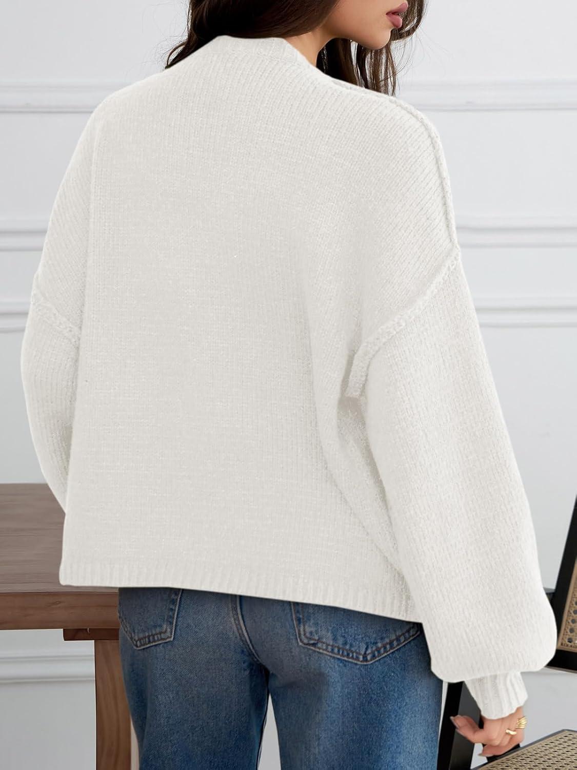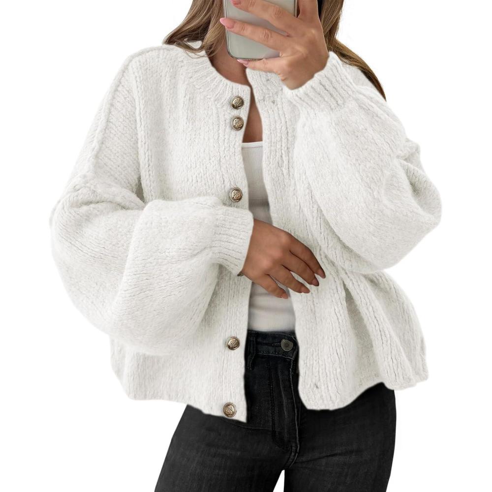 Saodimallsu Womens Oversized Cardigans Button Up Long Lantern Sleeve Chunky Knit Casual Soft Fall Sweater Coats(White)