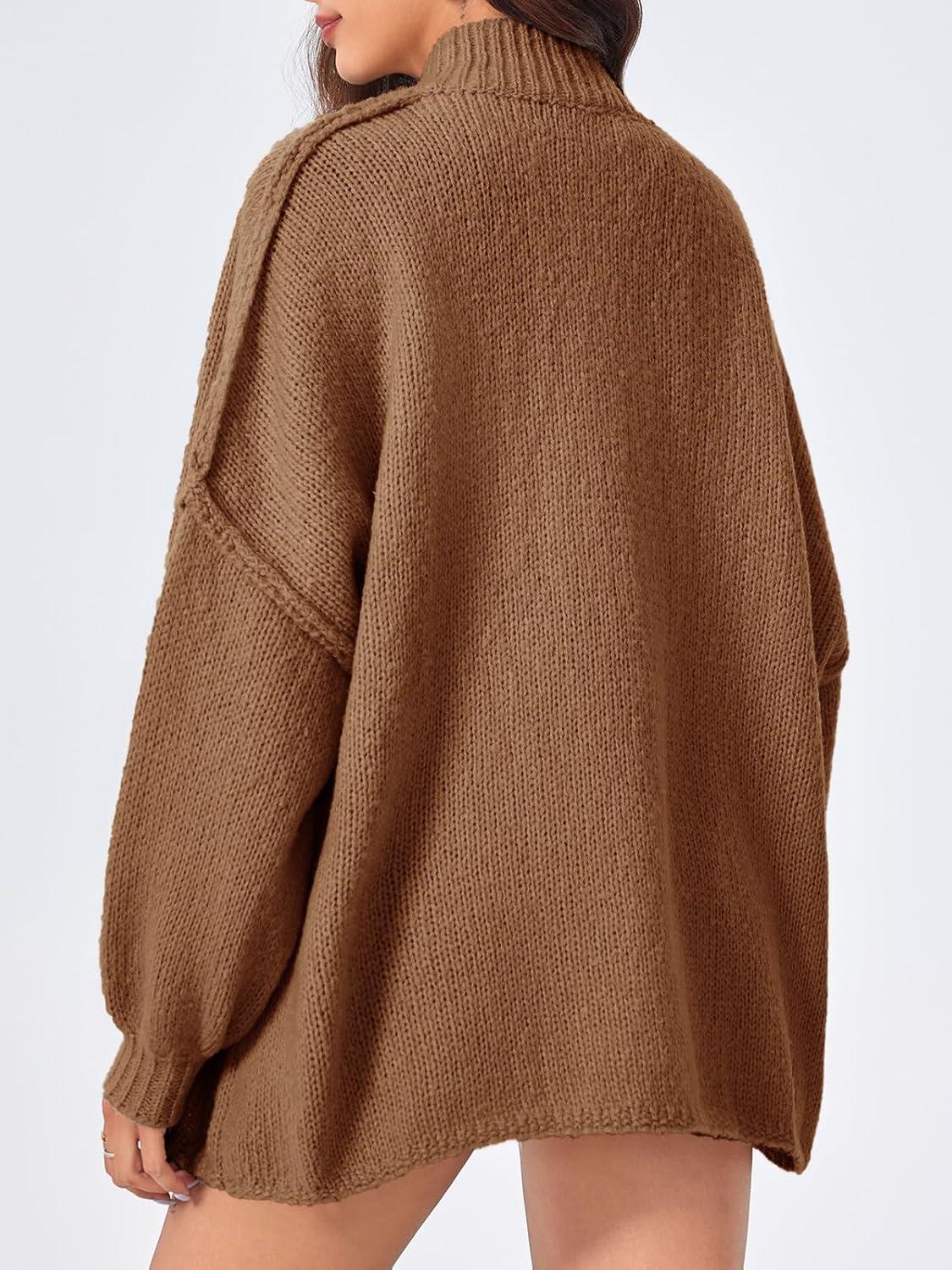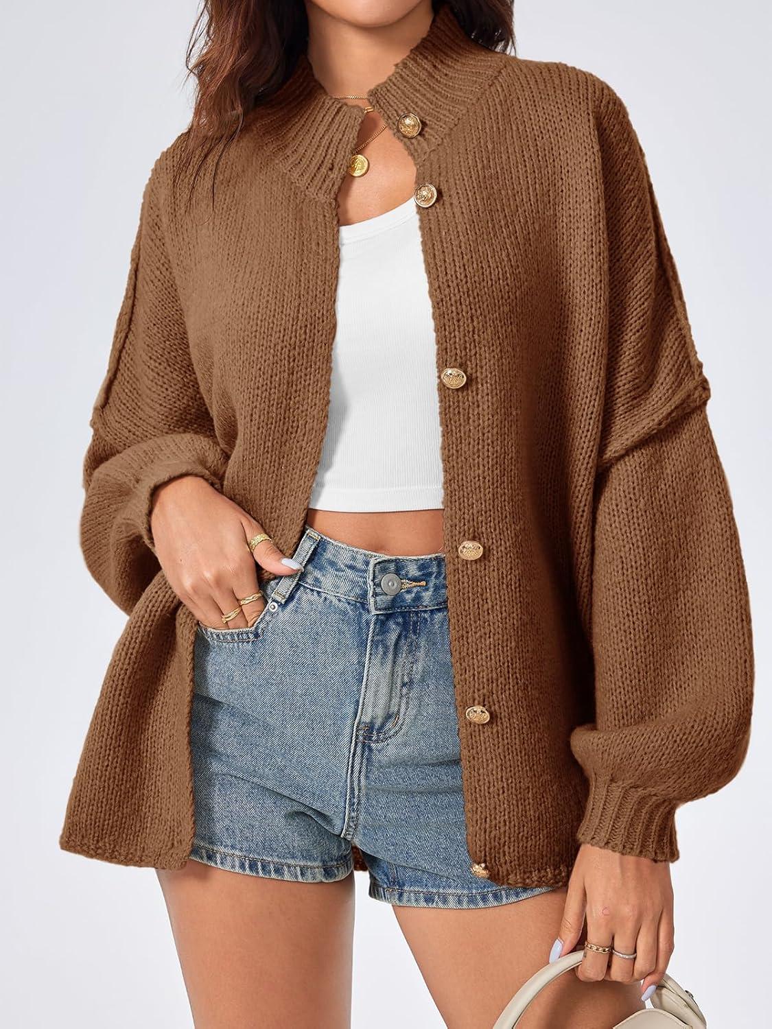 Saodimallsu Womens Oversized Cardigans Long Lantern Sleeve Button Down Chunky Knit Loose Fall Sweater Coats(Brown)