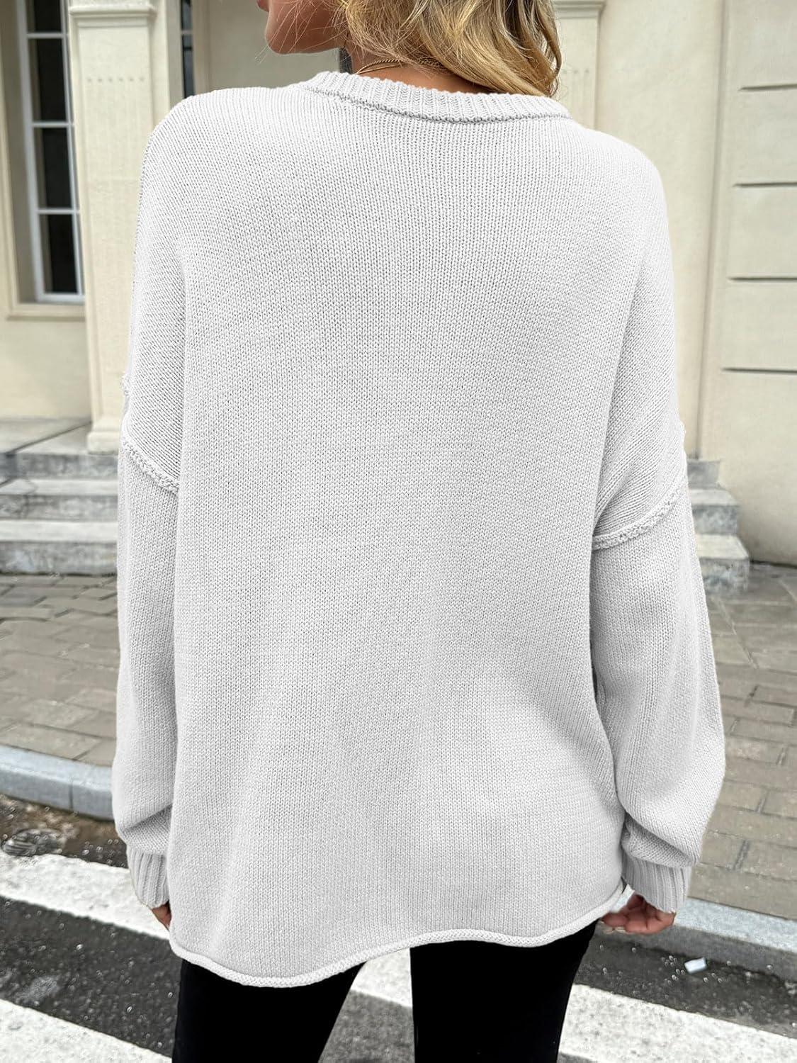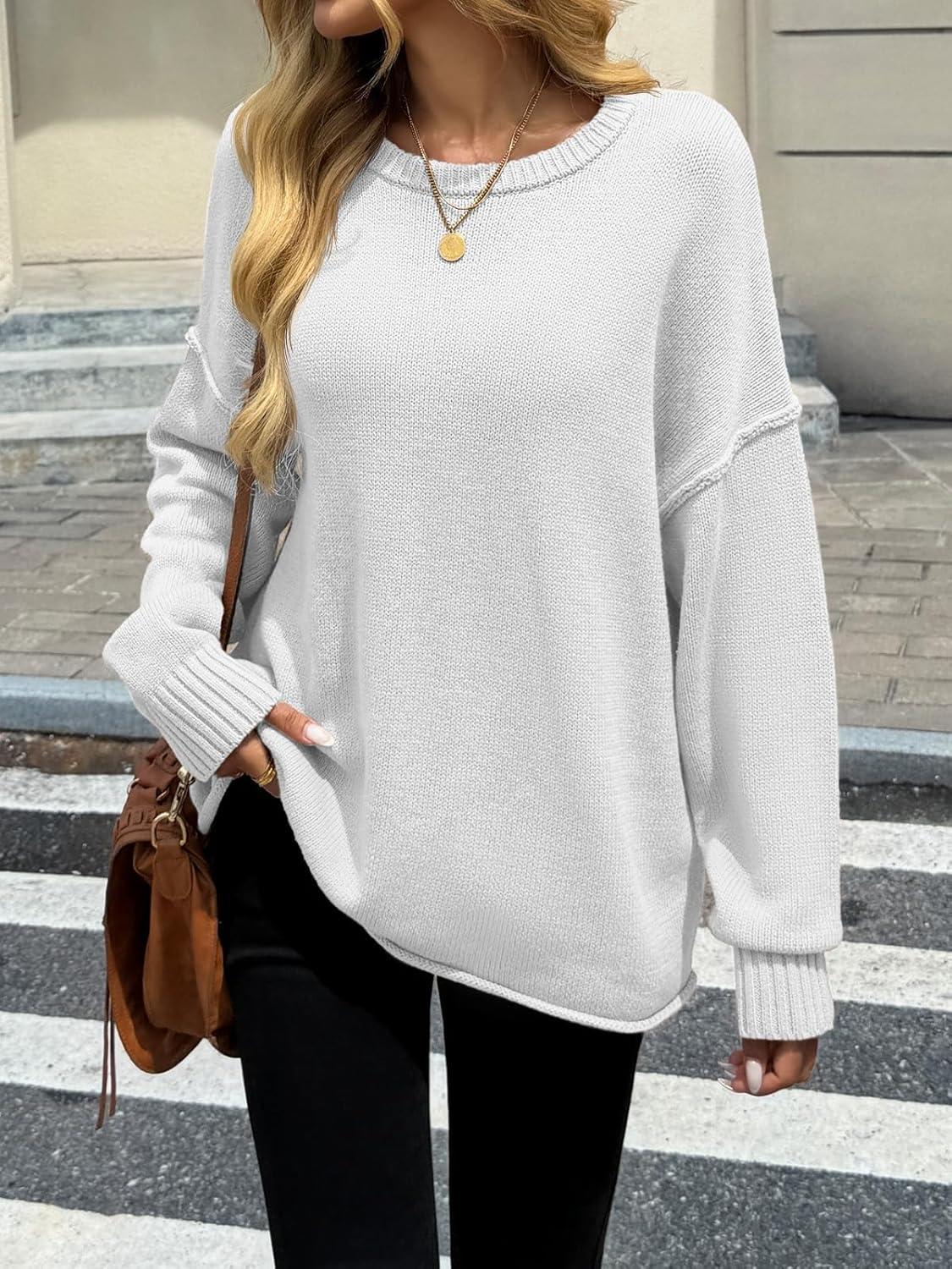 Saodimallsu Womens Oversized Crew Neck Sweaters Long Sleeve Slouchy Knit Fall Casual Loose Pullover Tops(White)