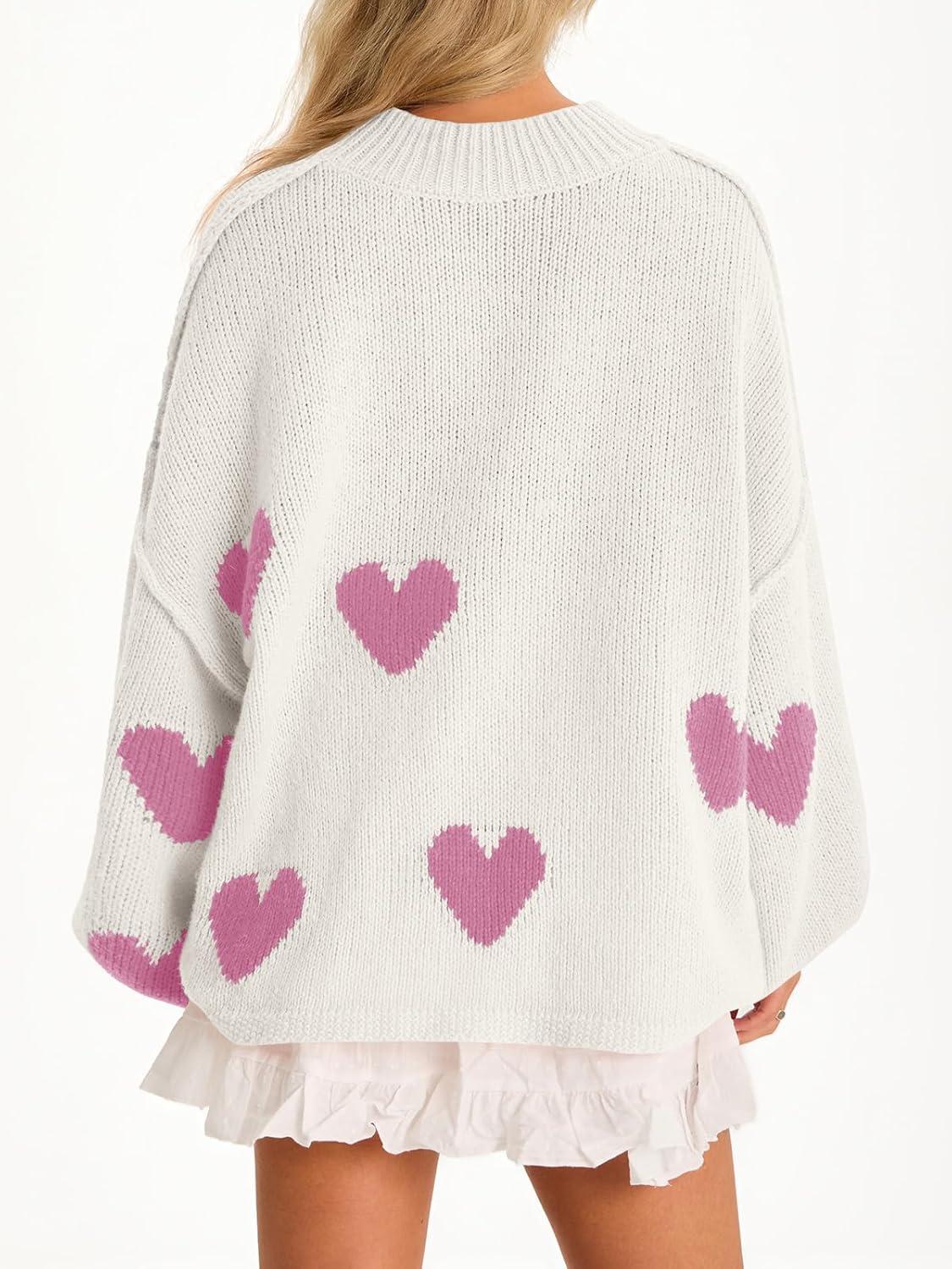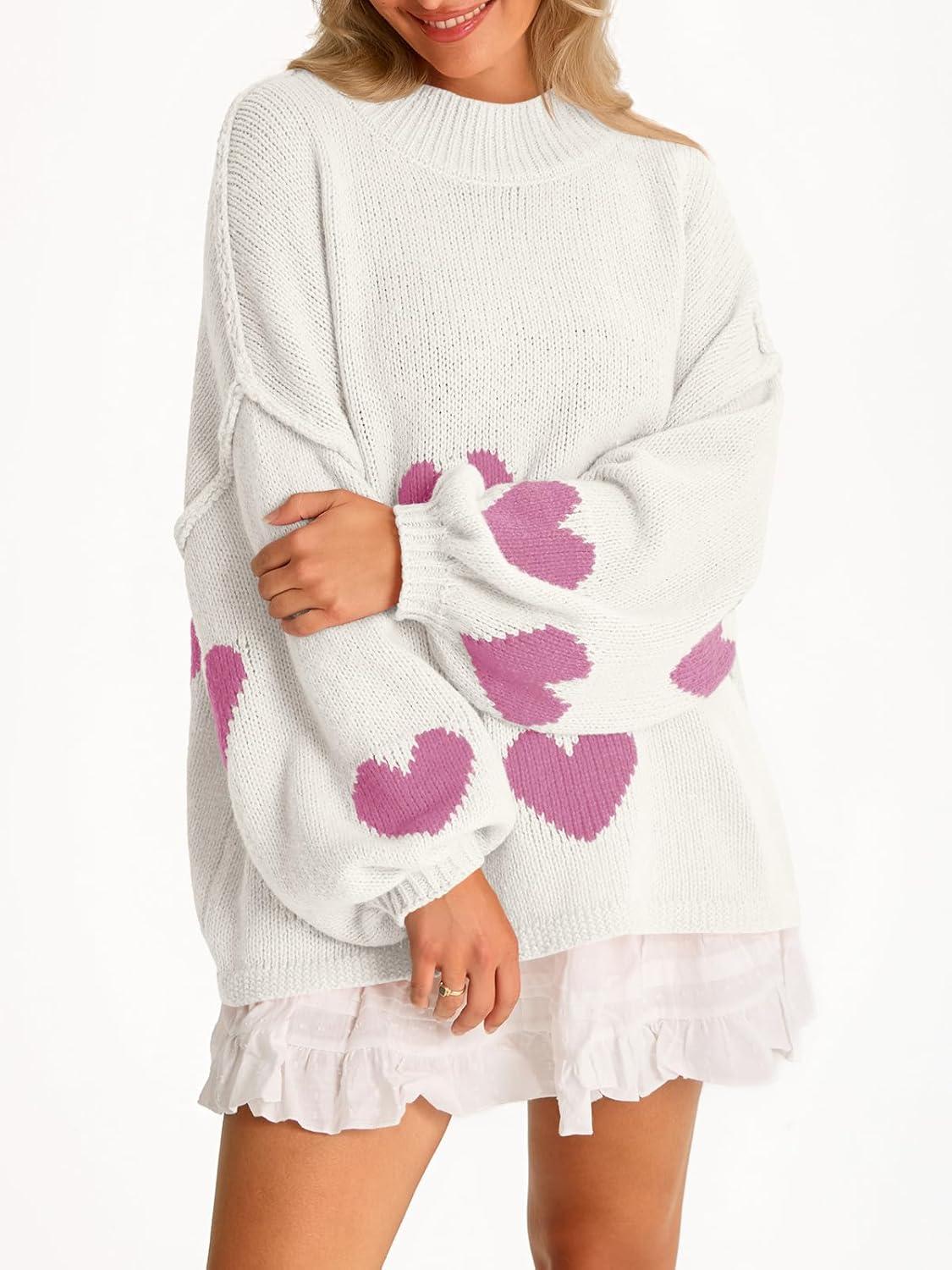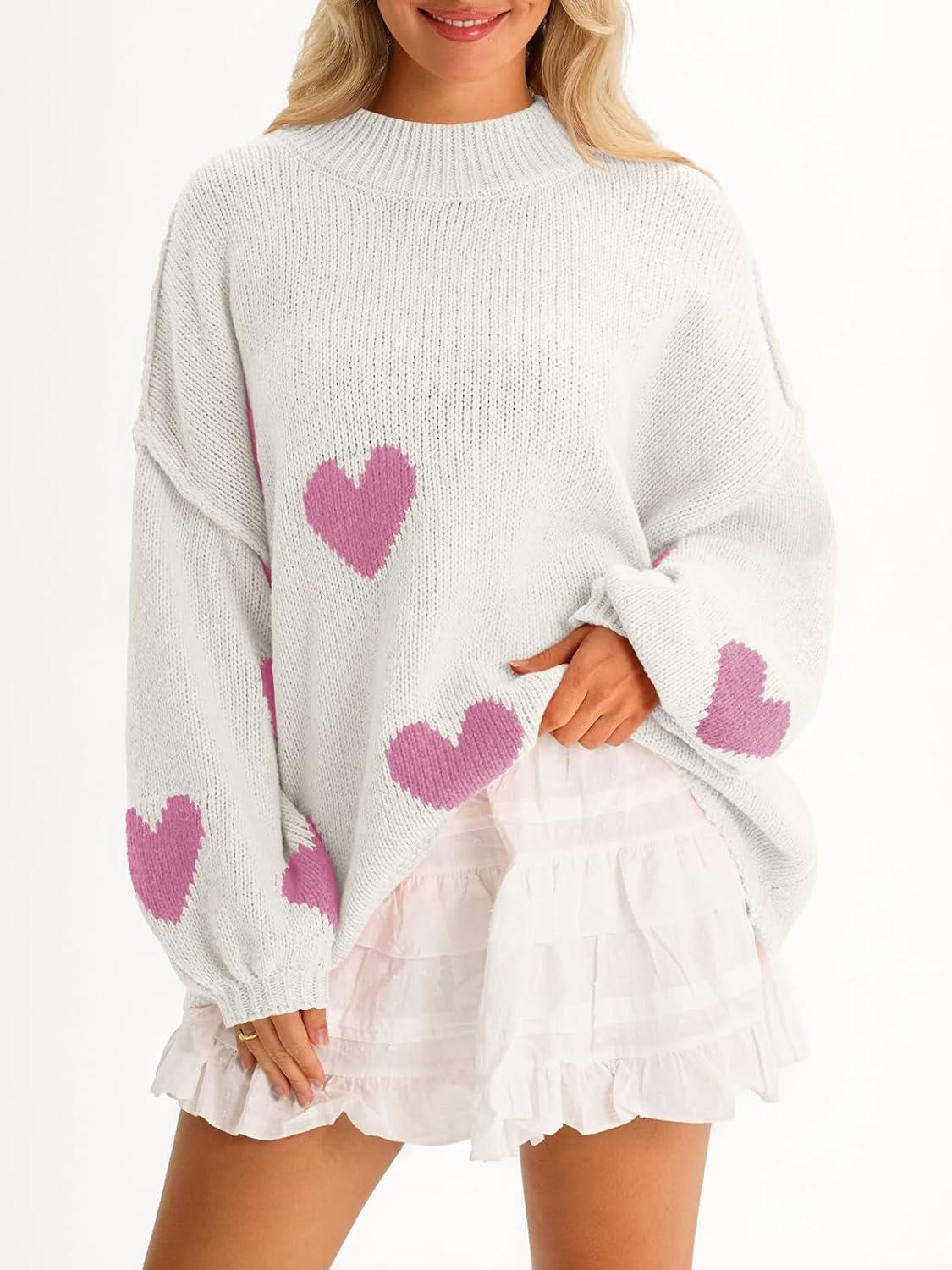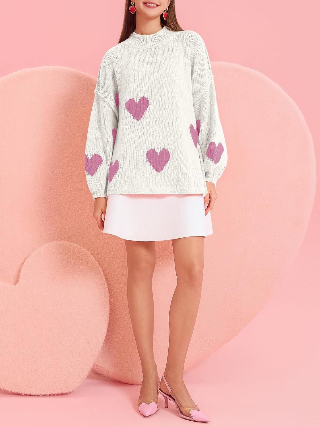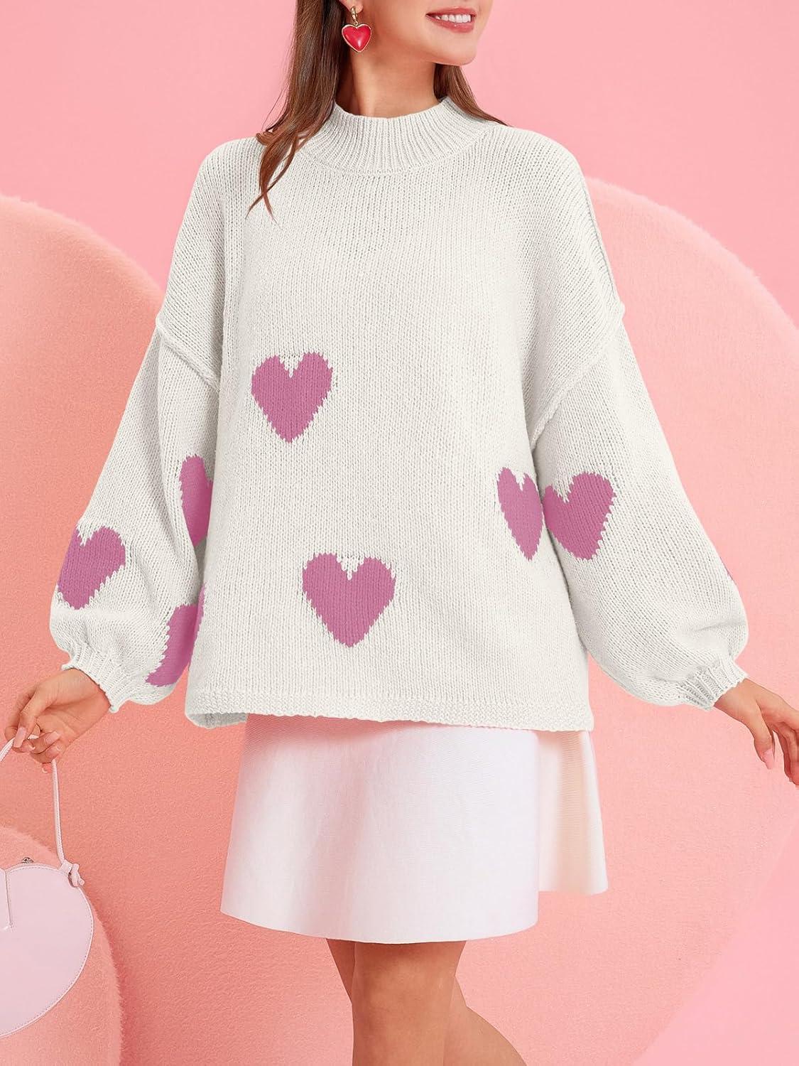 Saodimallsu Womens Oversized Heart Sweater Valentines Cute Mock Neck Chunky Knit Long Sleeve Tunic Sweaters(Light Pink-a)