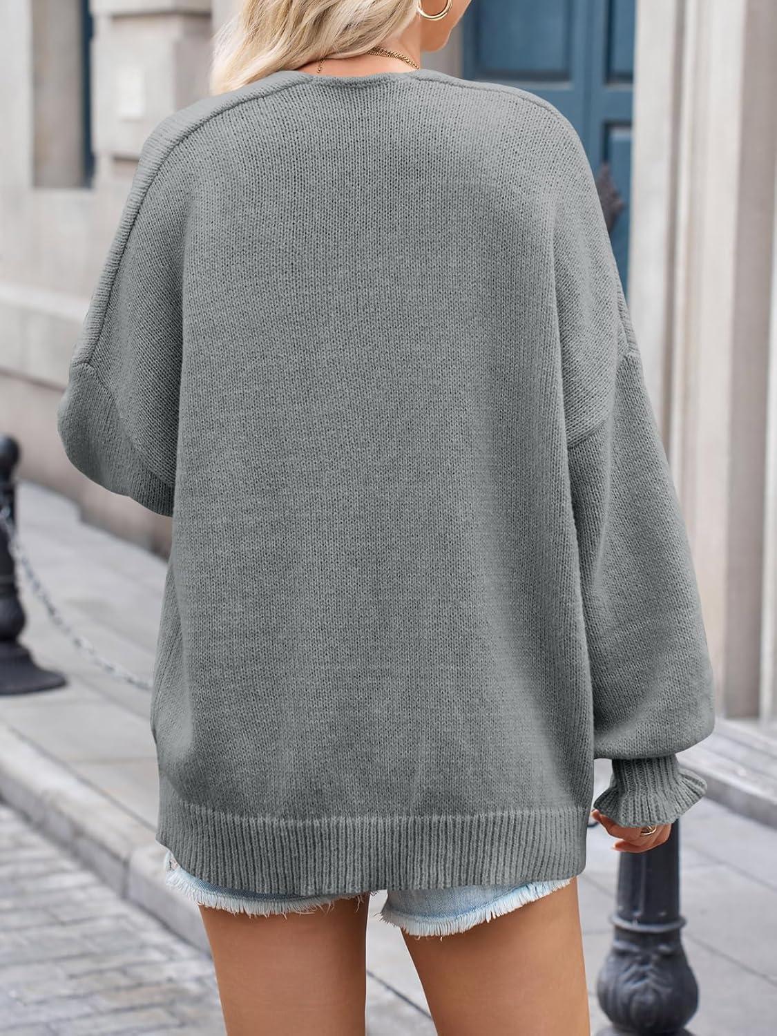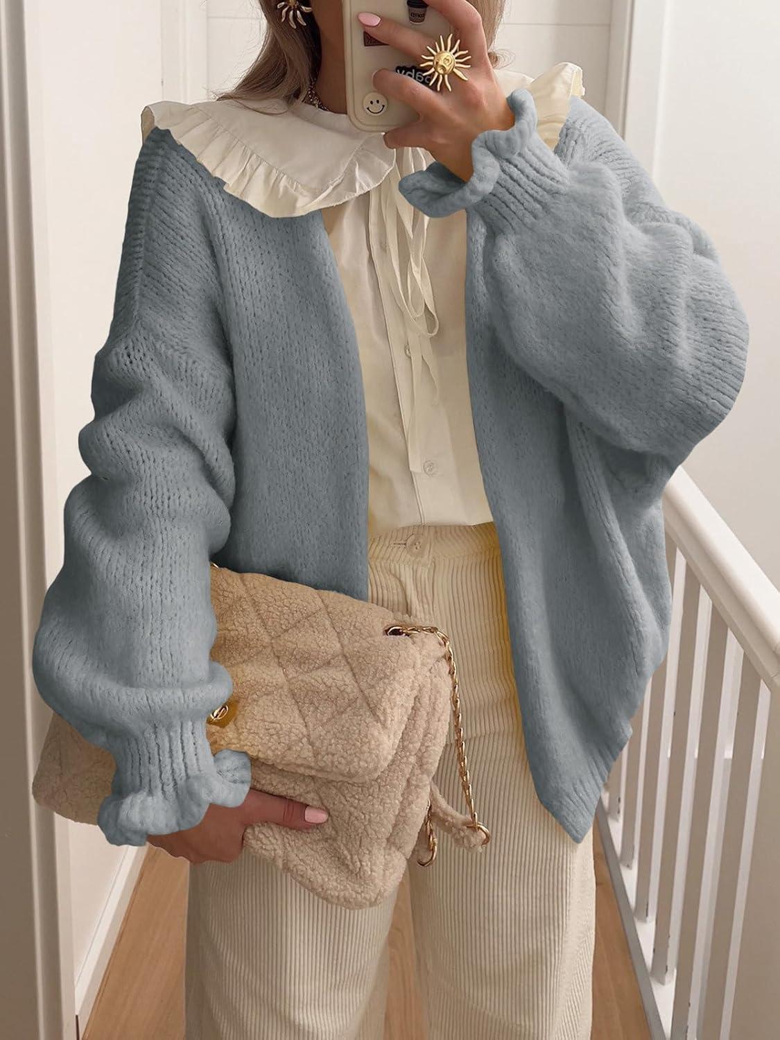 Saodimallsu Womens Oversized Open Front Cardigan Fall Ruffle Lantern Long Sleeve Chunky Knit Loose Sweater Coats(Grey)