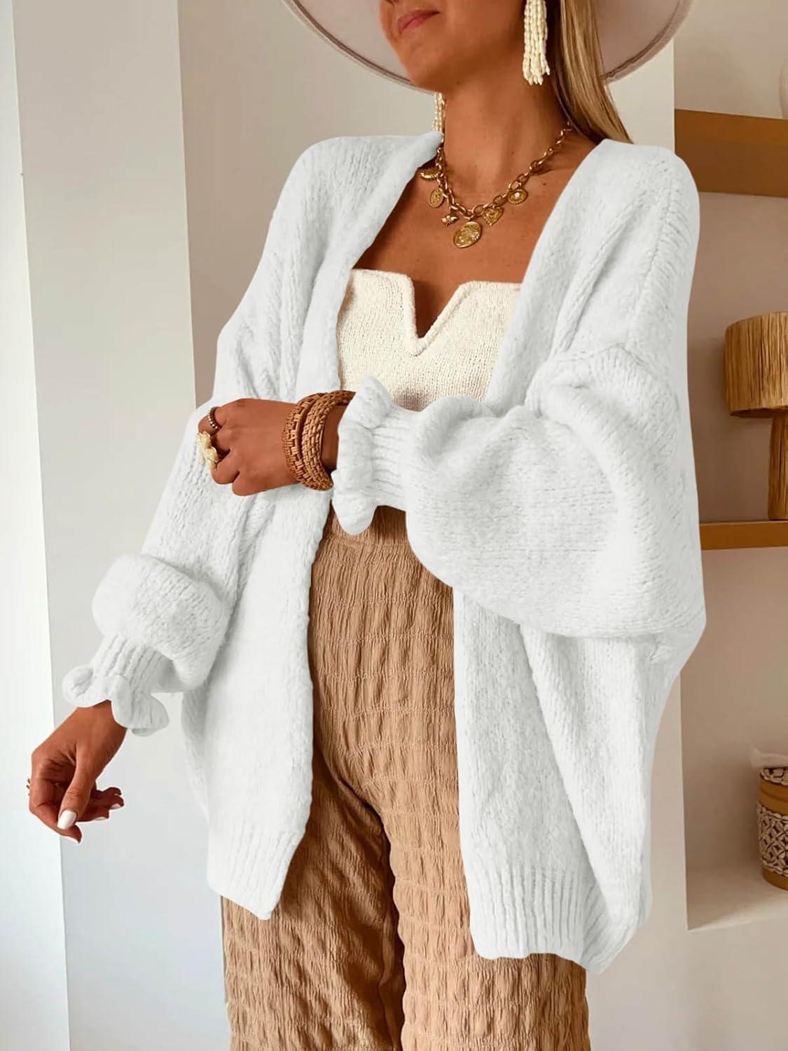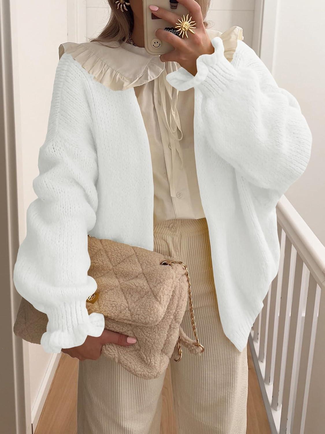 Saodimallsu Womens Oversized Open Front Cardigan Fall Ruffle Lantern Long Sleeve Chunky Knit Loose Sweater Coats(White)