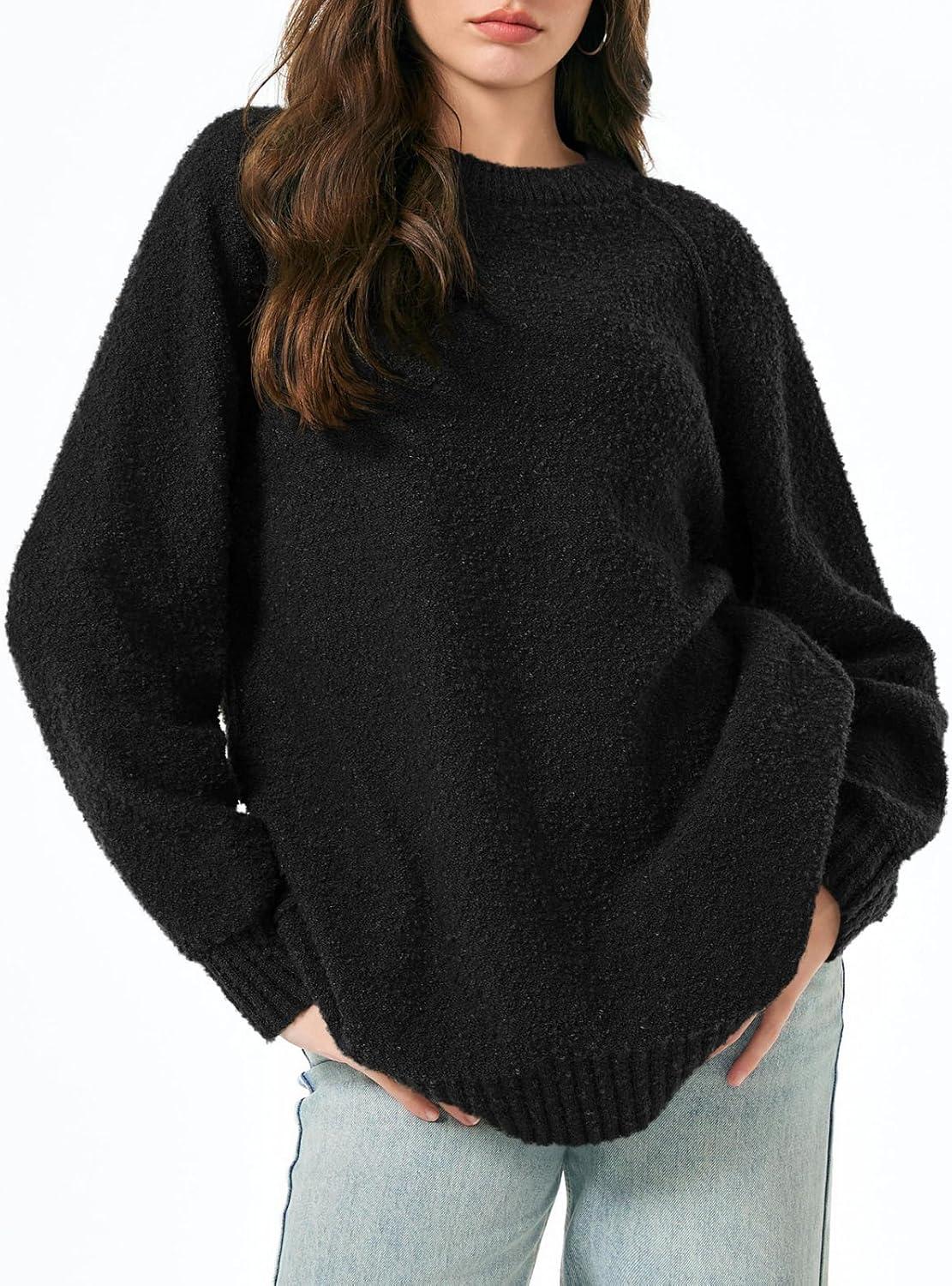 Saodimallsu Womens Oversized Sweater 2025 Fall Trendy Fuzzy Crew Neck Long Sleeve Casual Tunic Sweaters(Black)