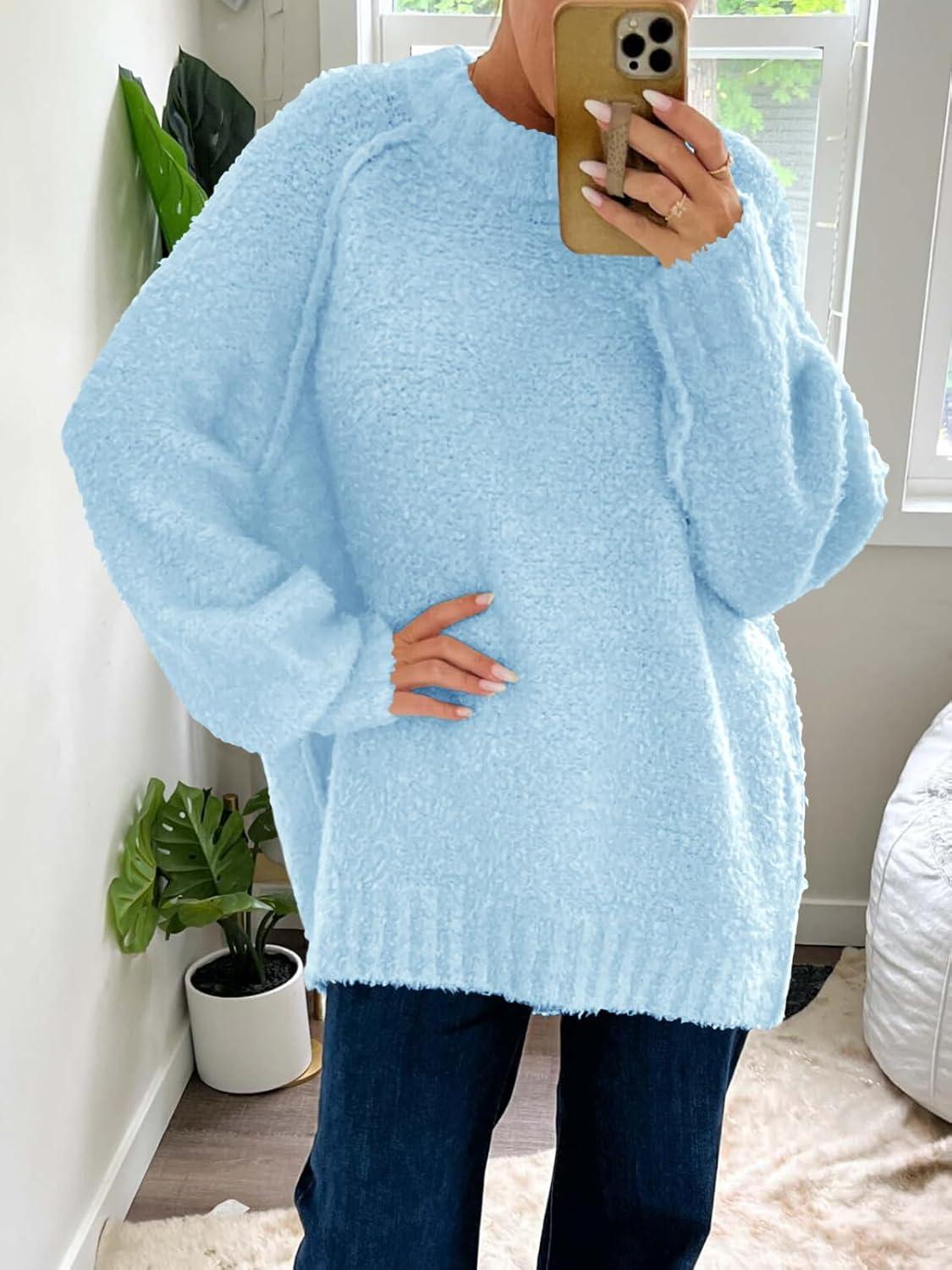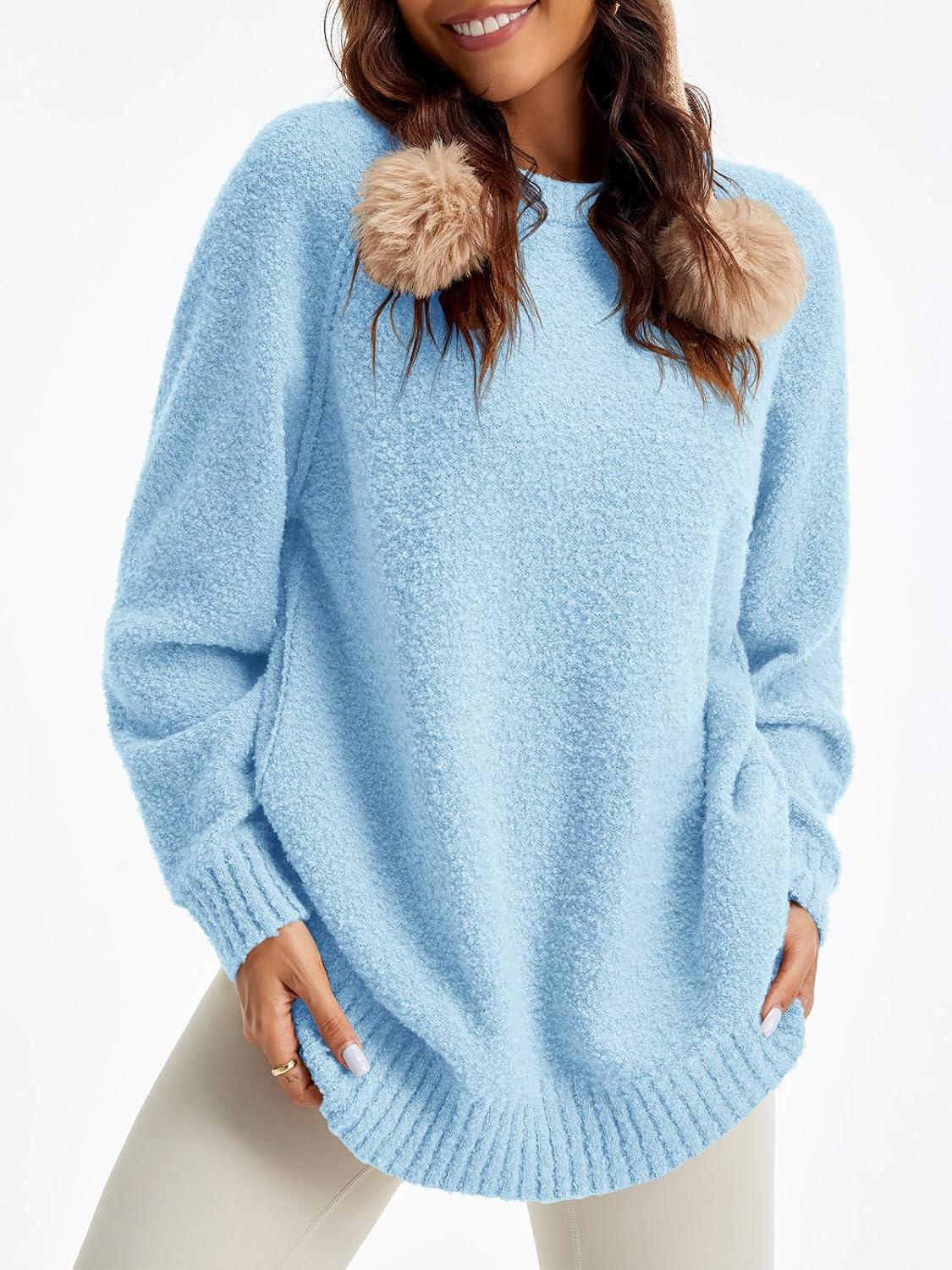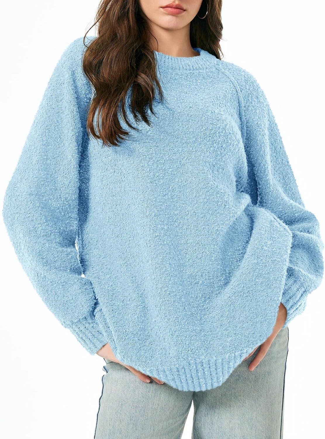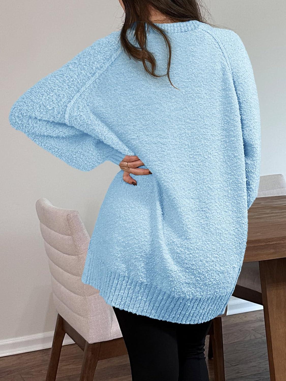 Saodimallsu Womens Oversized Sweater 2025 Fall Trendy Fuzzy Crew Neck Long Sleeve Casual Tunic Sweaters(Light Blue)