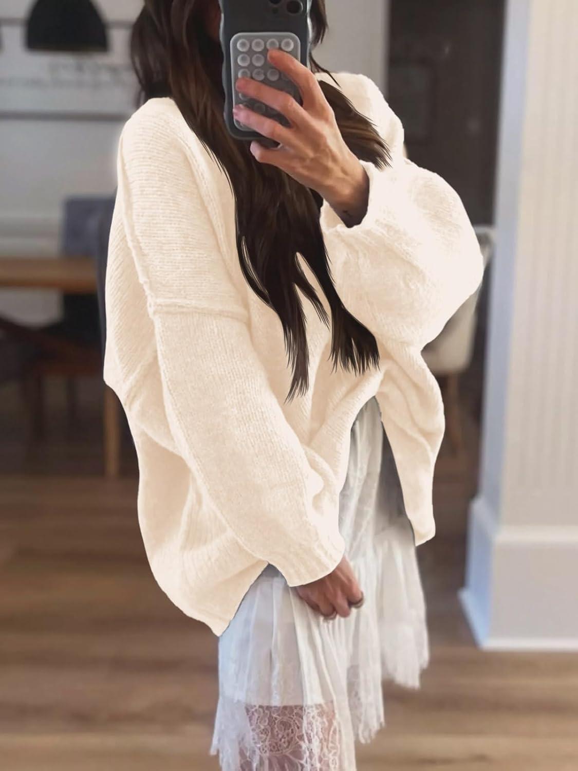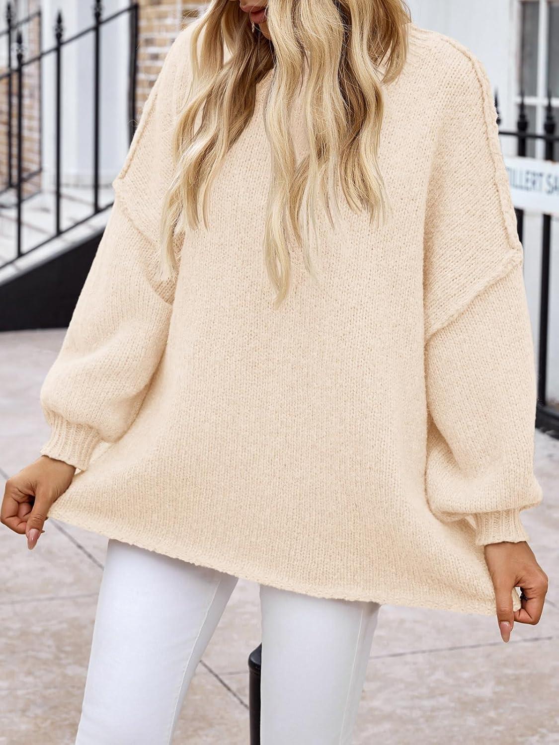 Saodimallsu Womens Oversized Sweater Chunky Crew Neck Long Lantern Sleeve Knit Fall Trendy Tunic Sweaters Top(Beige)