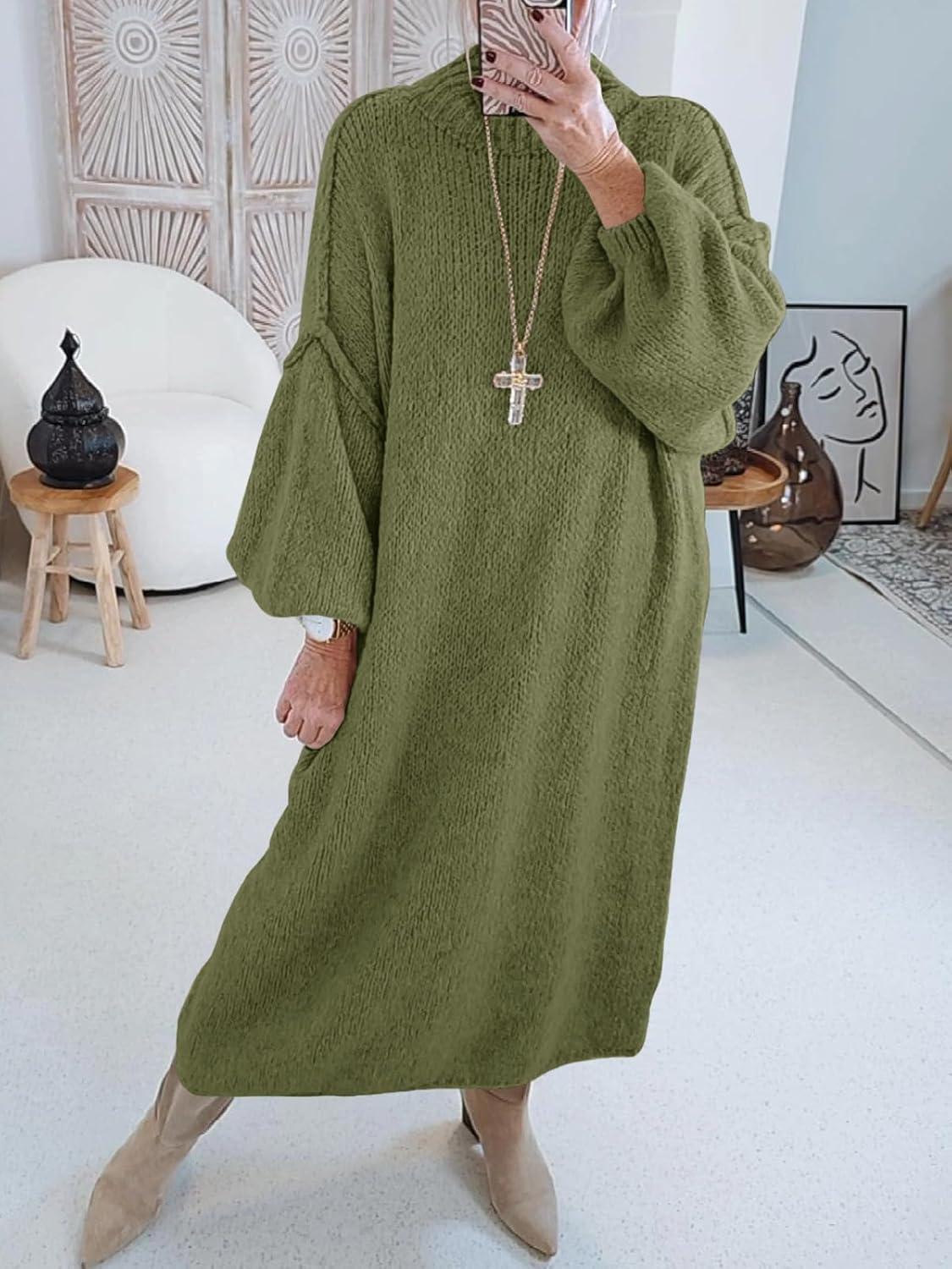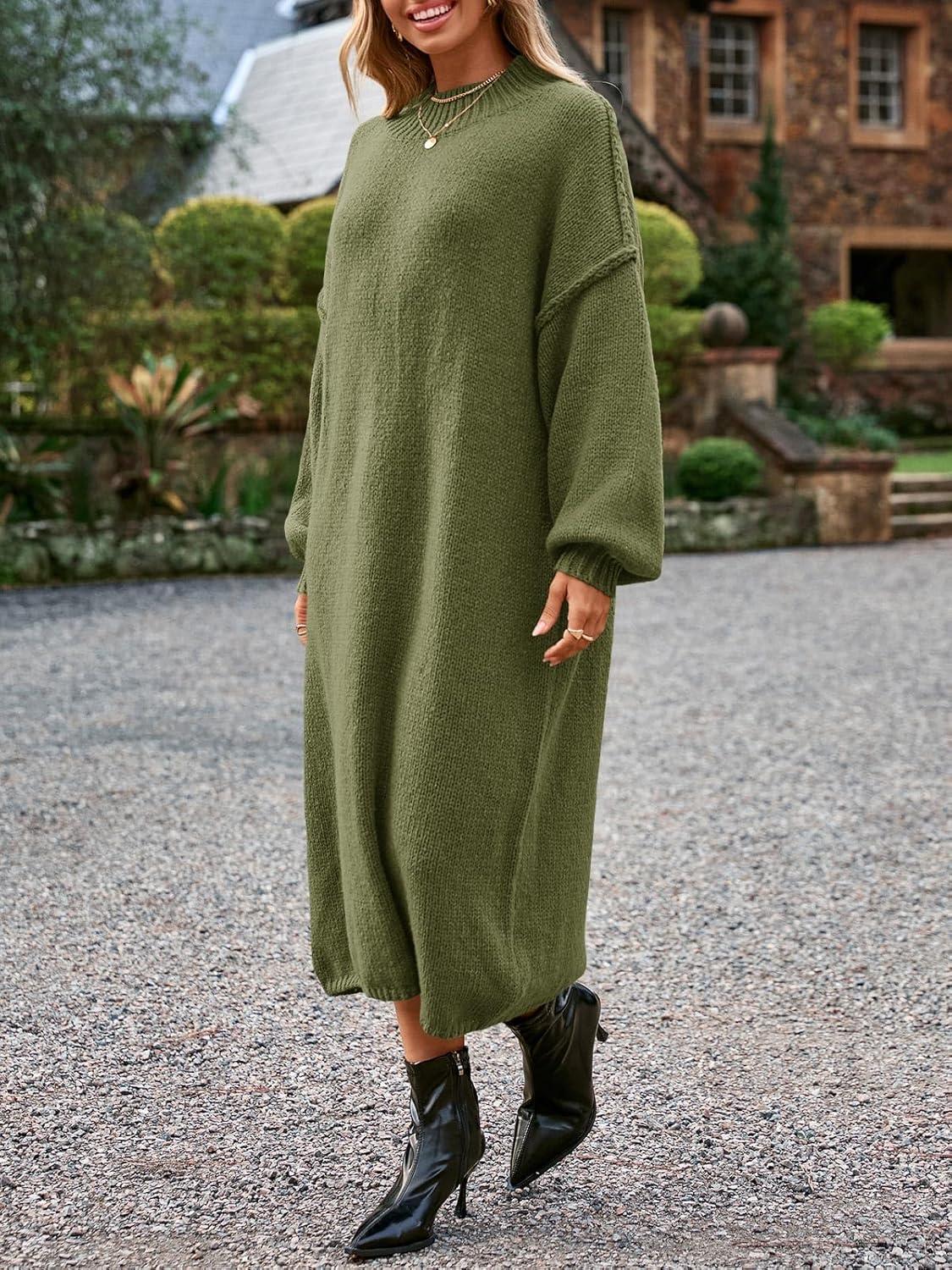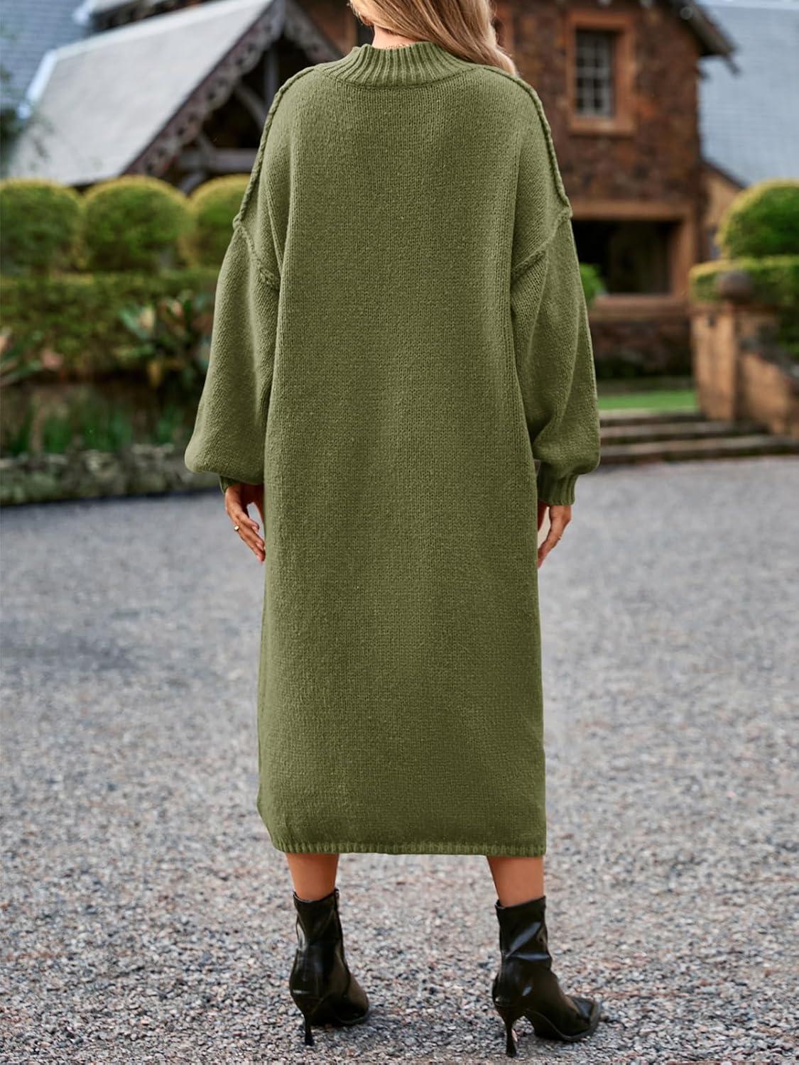 Saodimallsu Womens Oversized Sweater Dress Mock Neck Long Sleeve Casual Warm Chunky Knit Fall Winter Maxi Dresses(Army Green)