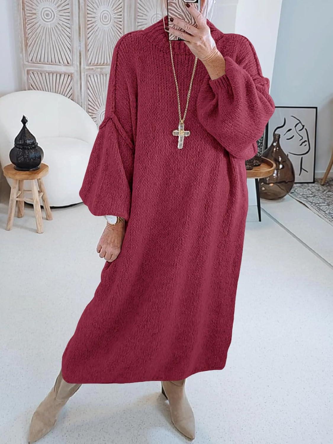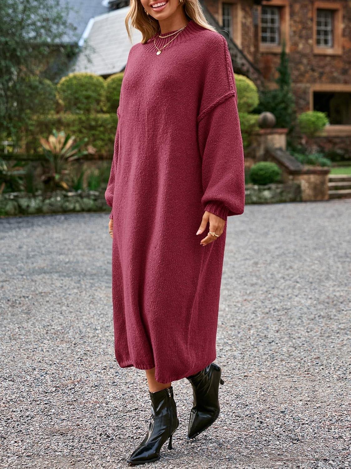 Saodimallsu Womens Oversized Sweater Dress Mock Neck Long Sleeve Casual Warm Chunky Knit Fall Winter Maxi Dresses(Burgundy)