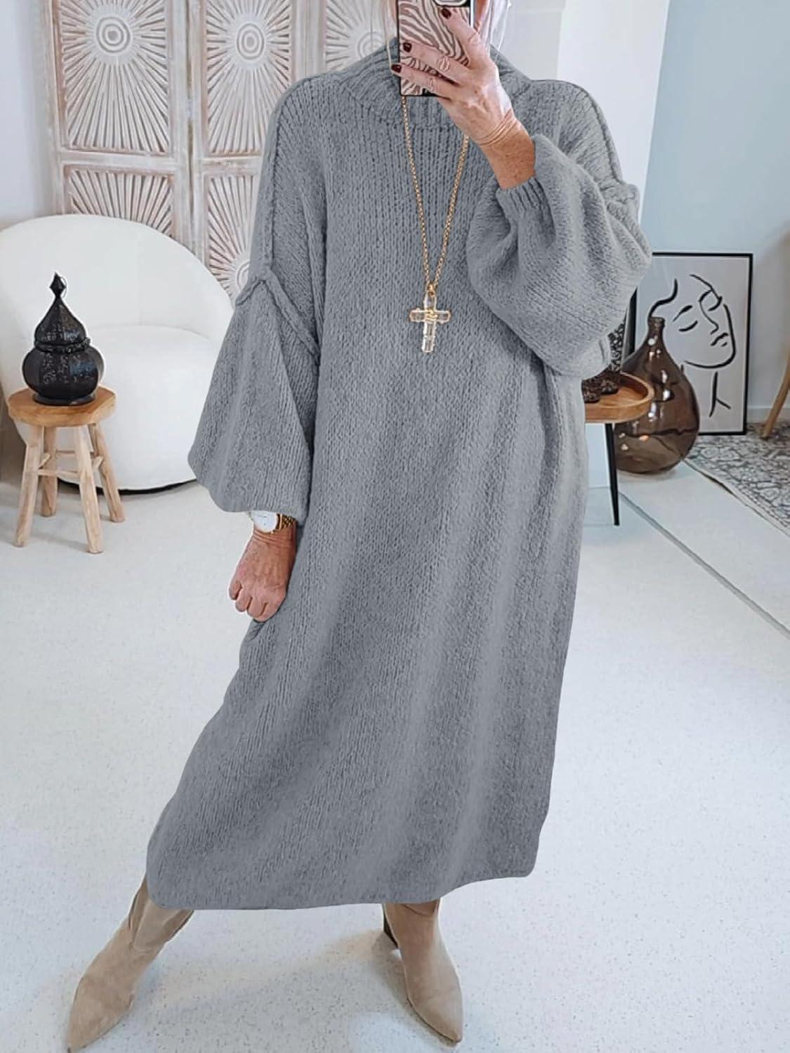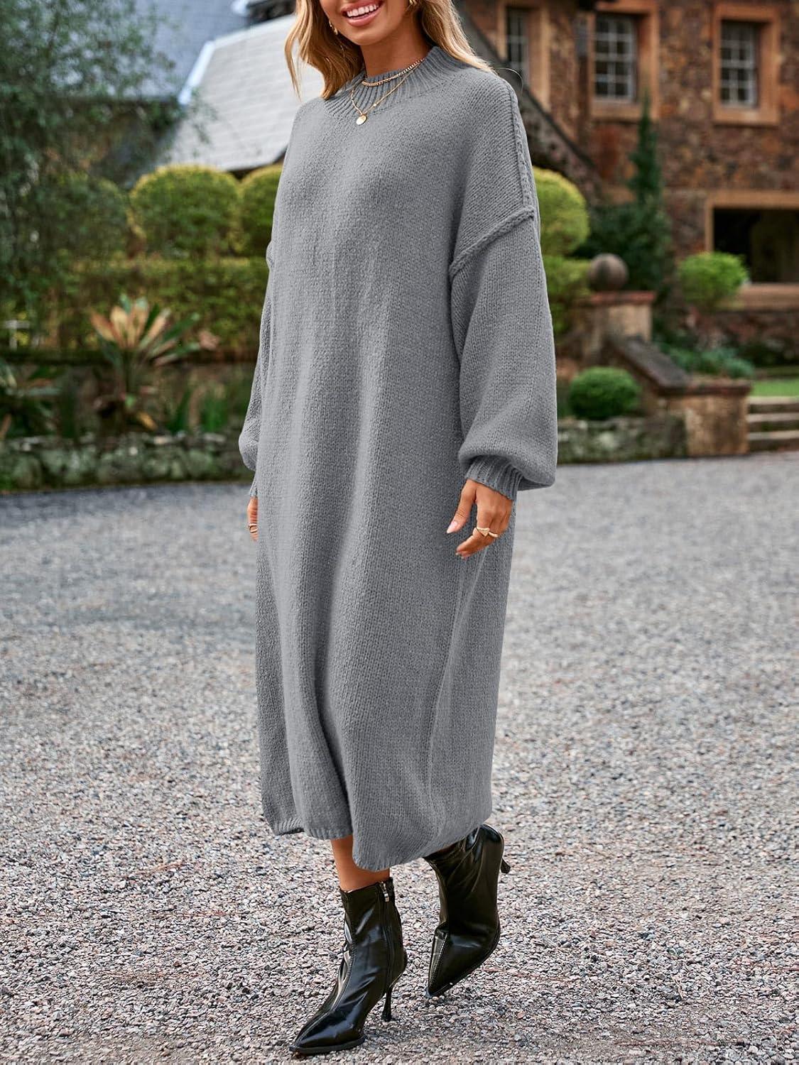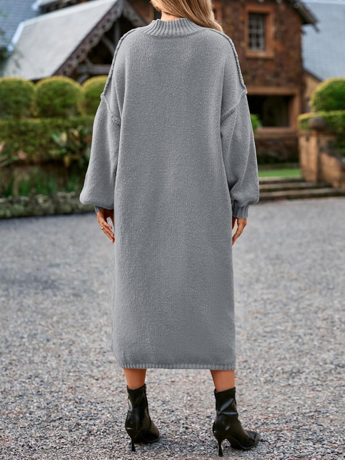 Saodimallsu Womens Oversized Sweater Dress Mock Neck Long Sleeve Casual Warm Chunky Knit Fall Winter Maxi Dresses(Grey)