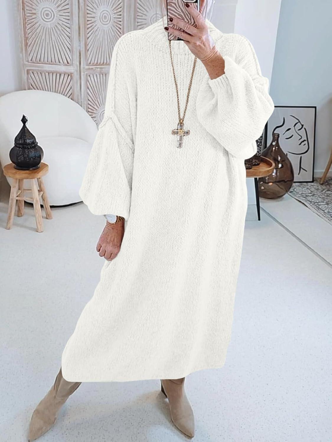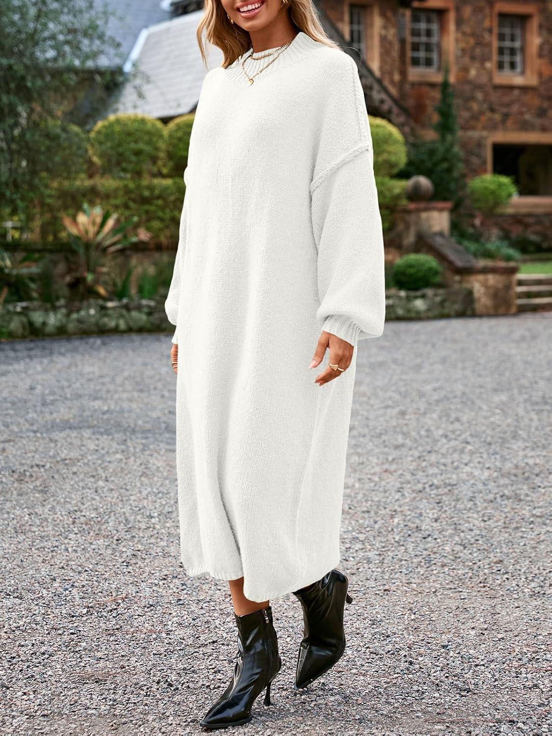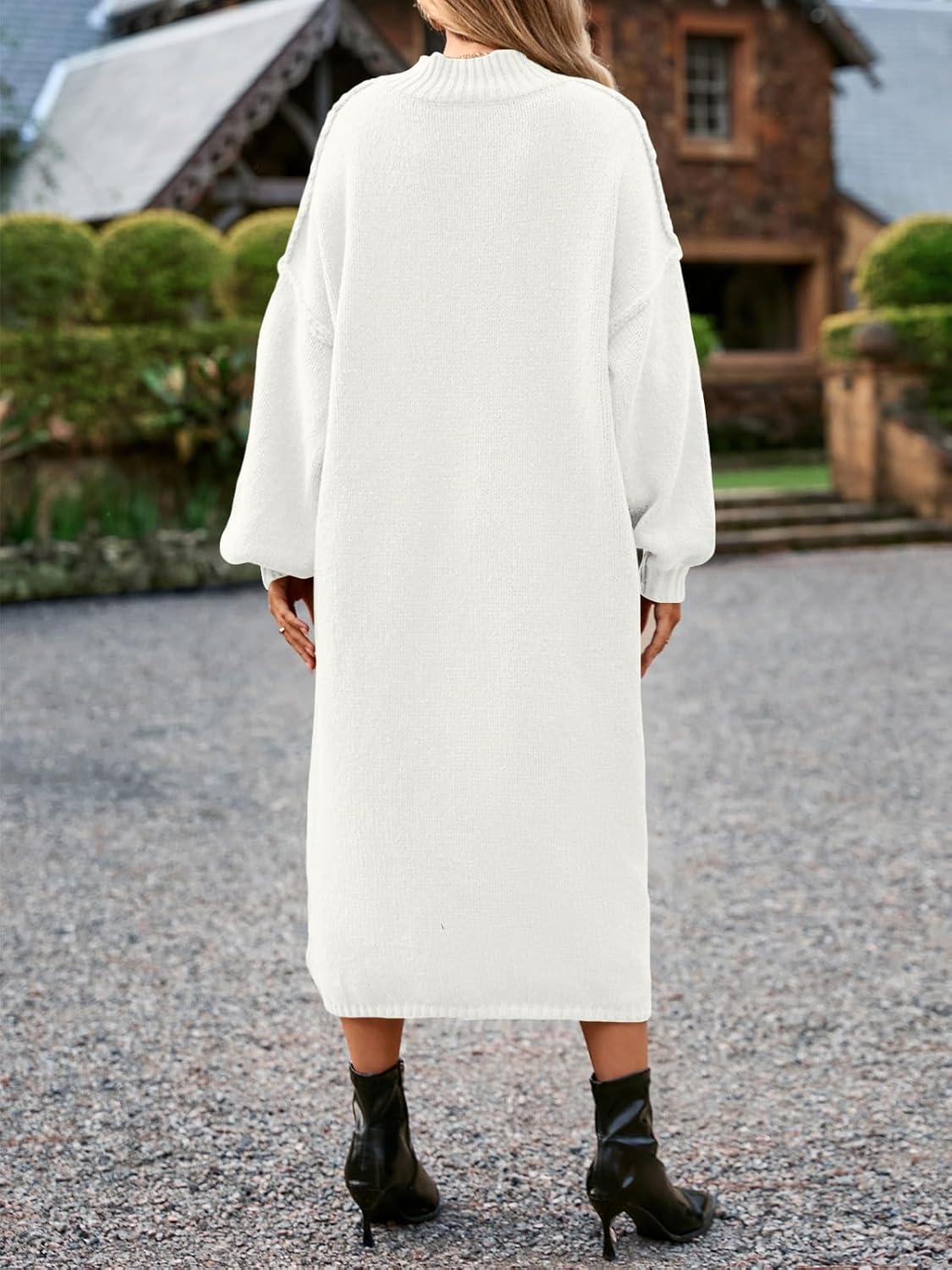 Saodimallsu Womens Oversized Sweater Dress Mock Neck Long Sleeve Casual Warm Chunky Knit Fall Winter Maxi Dresses(White)