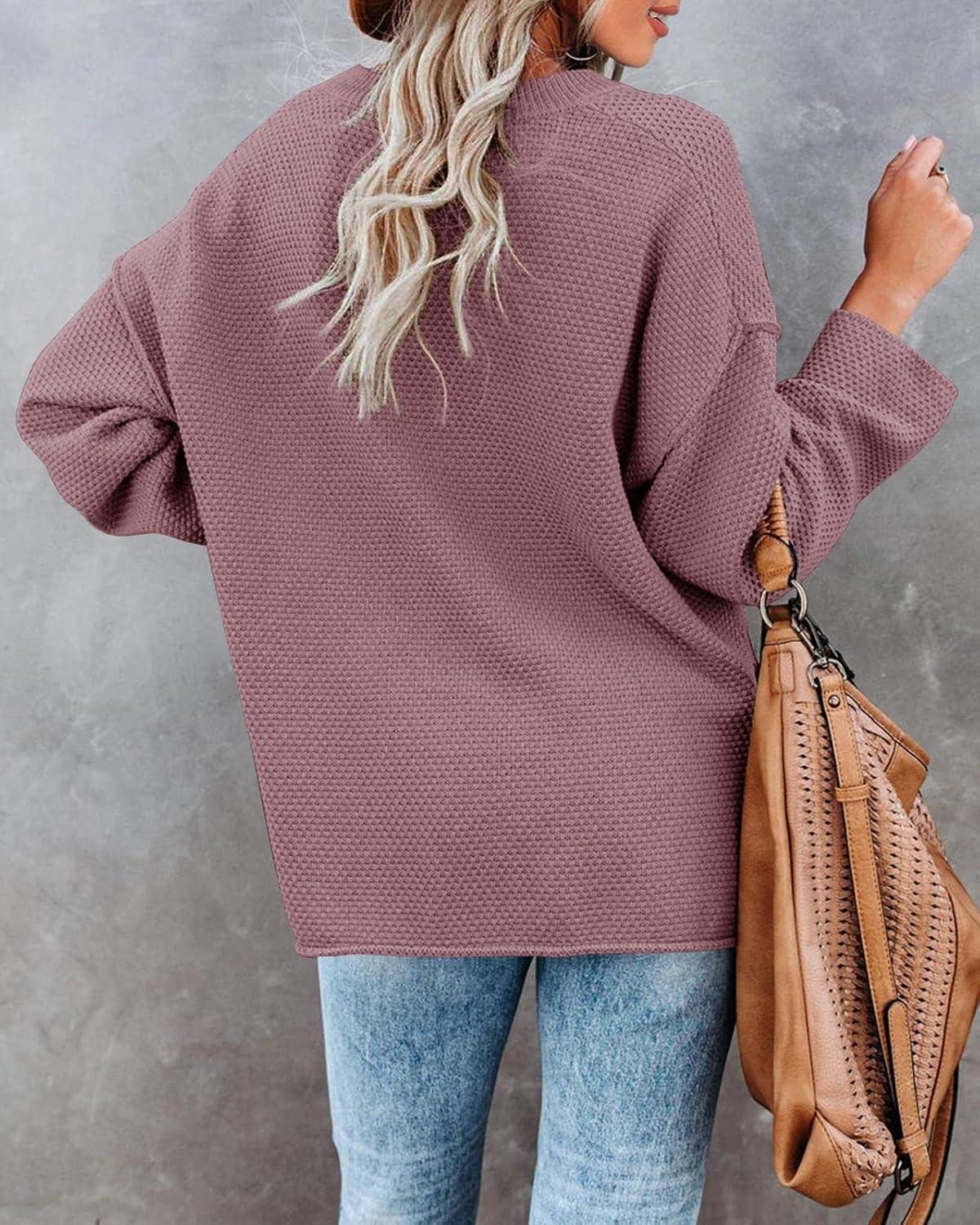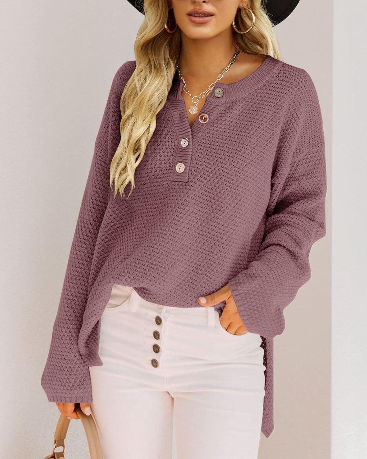 Saodimallsu Women’s Oversized Sweaters Batwing Long Sleeve Loose V Neck Button Henley Tops Pullover Knit Jumper(Dark Purple)