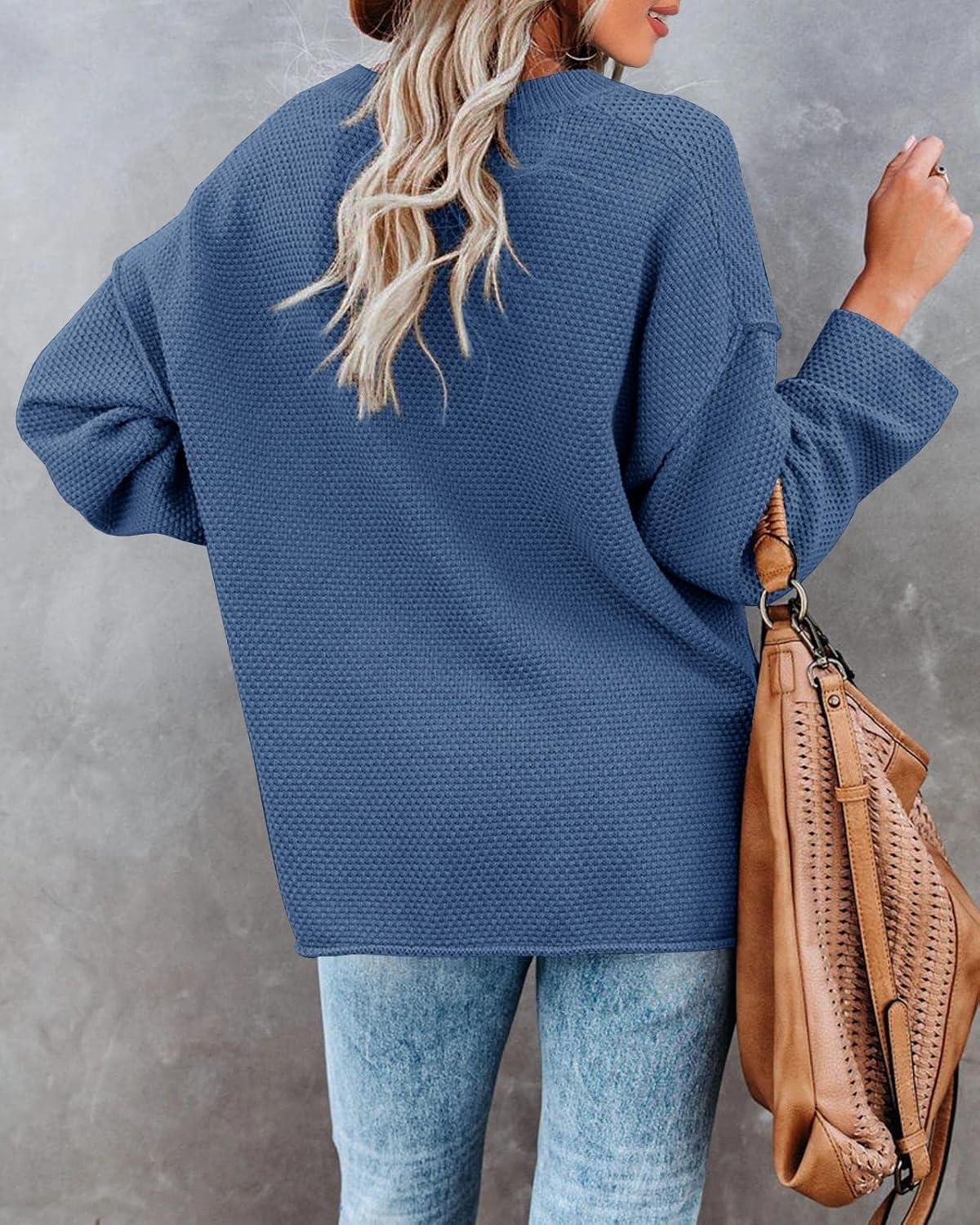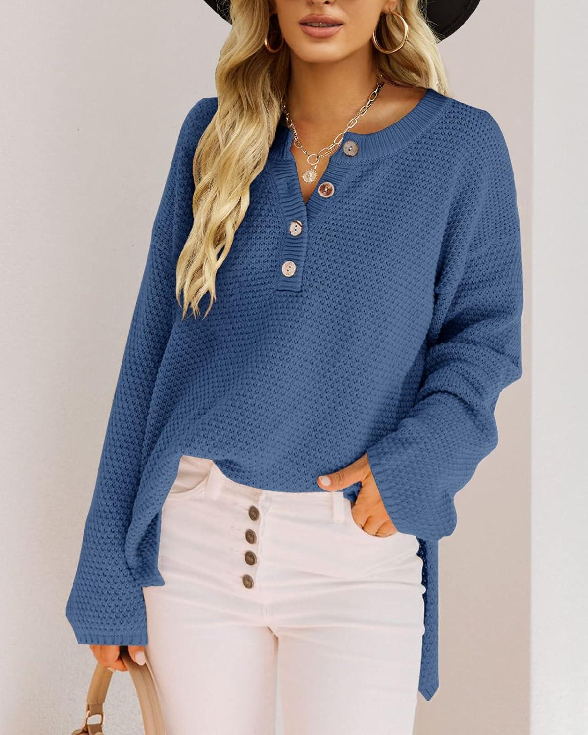 Saodimallsu Women’s Oversized Sweaters Batwing Long Sleeve Loose V Neck Button Henley Tops Pullover Knit Jumper(Navy)