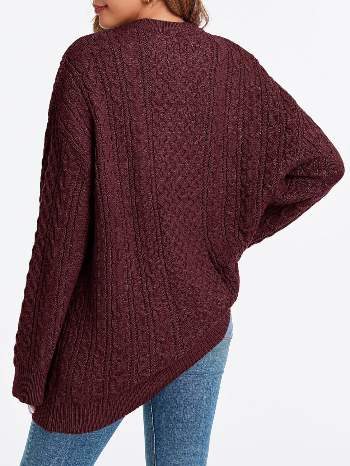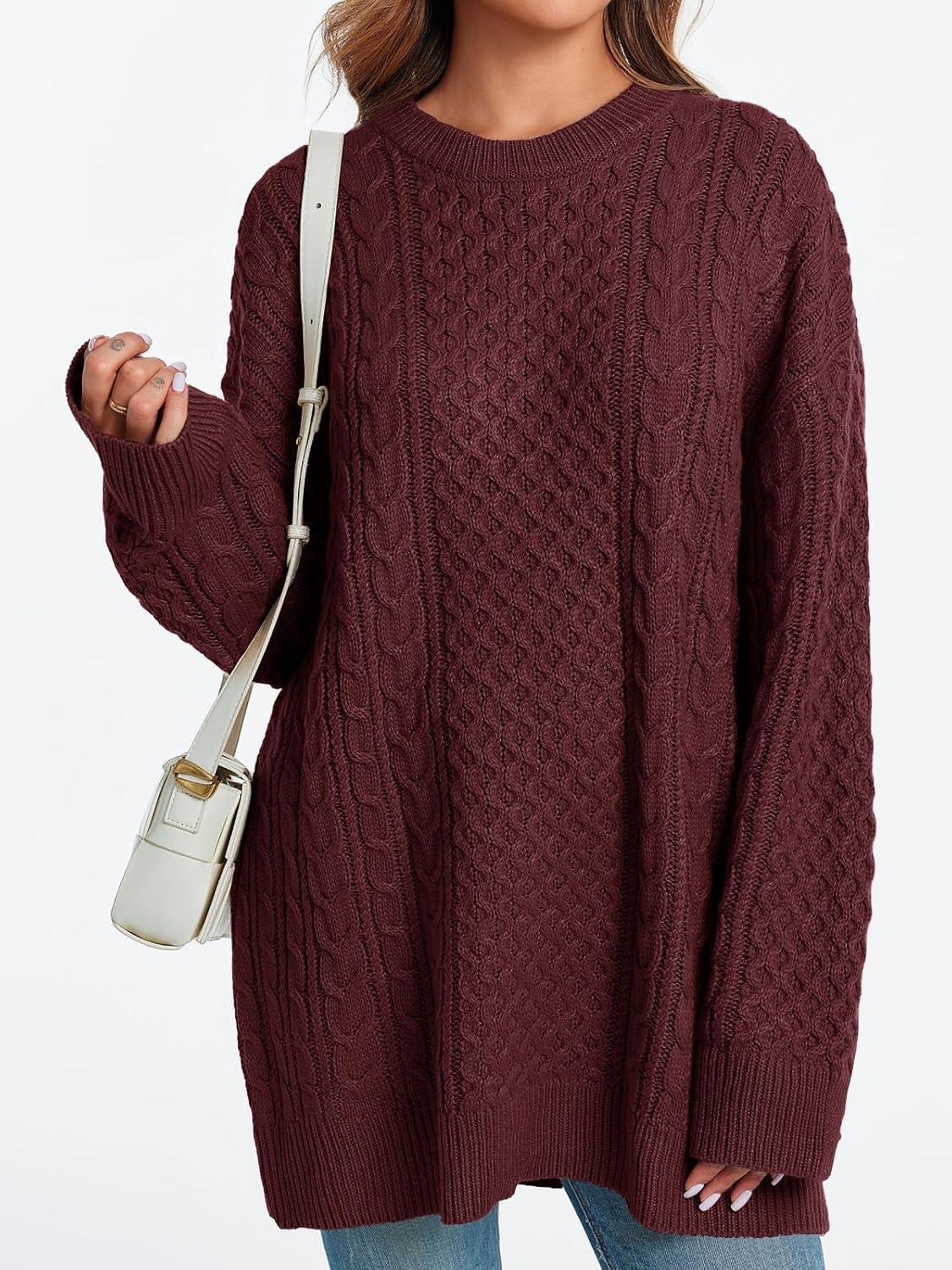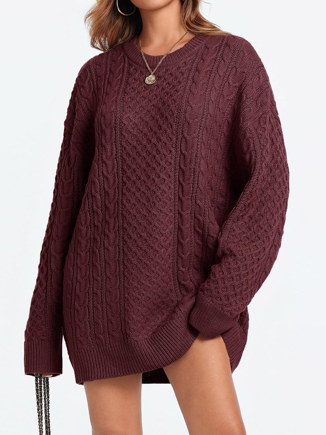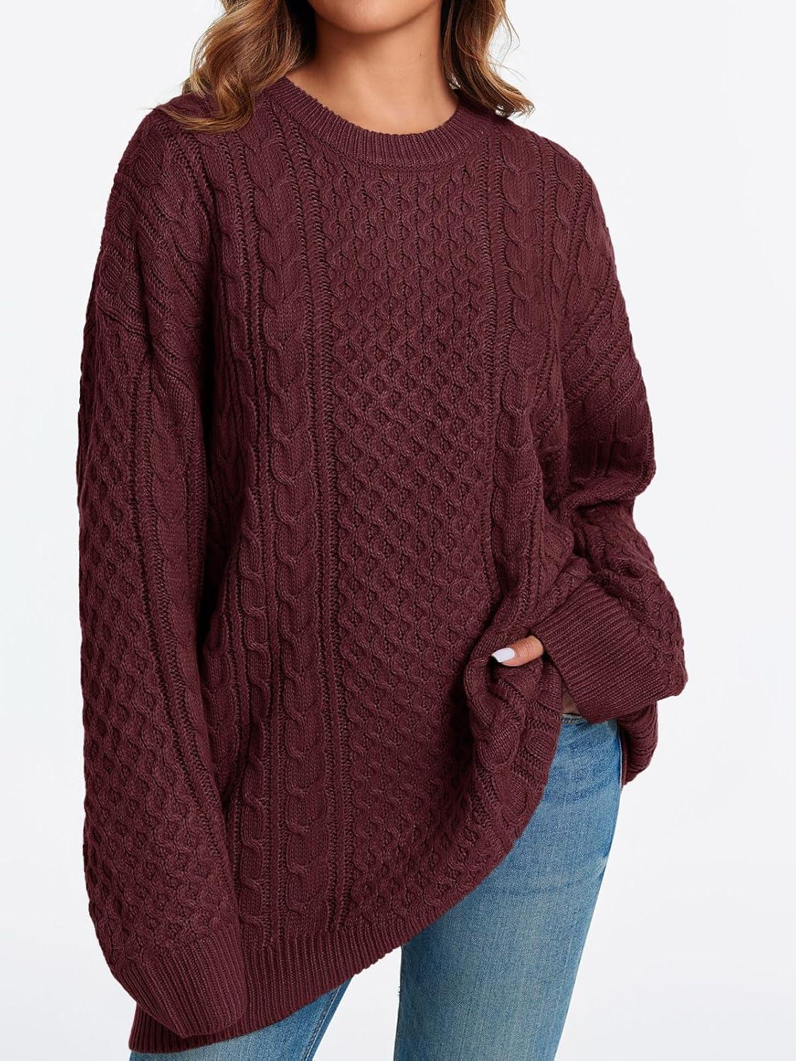 Saodimallsu Womens Oversized Sweaters Chunky Cable Knit Crewneck Long Sleeve Loose Tunic Sweater Tops(Burgundy)