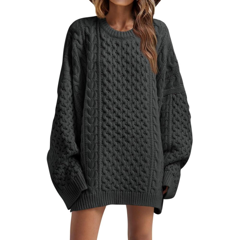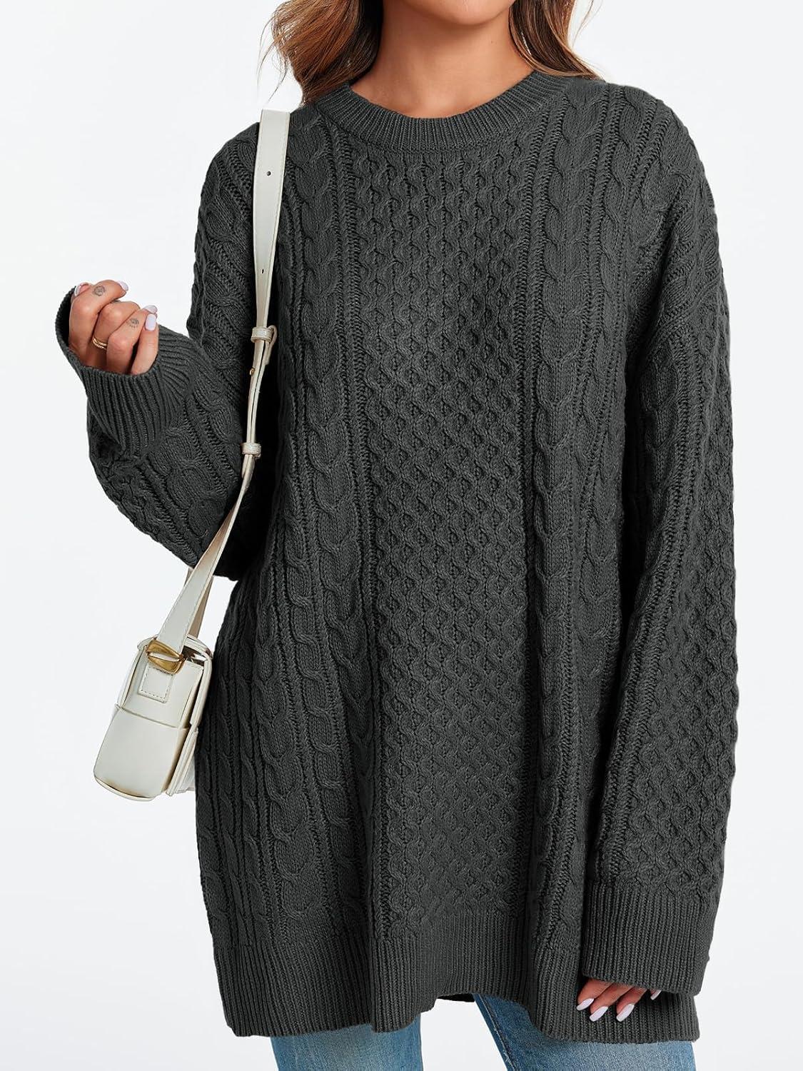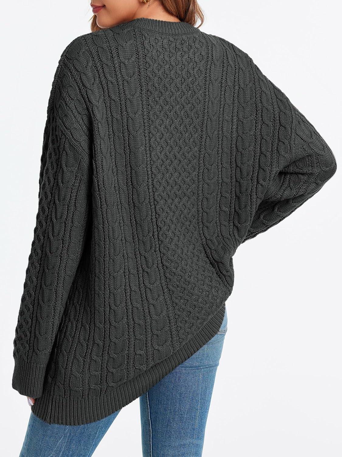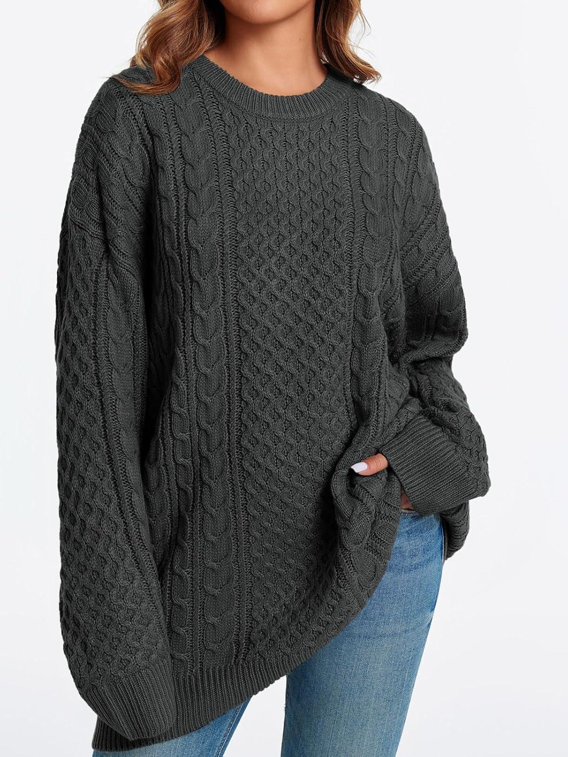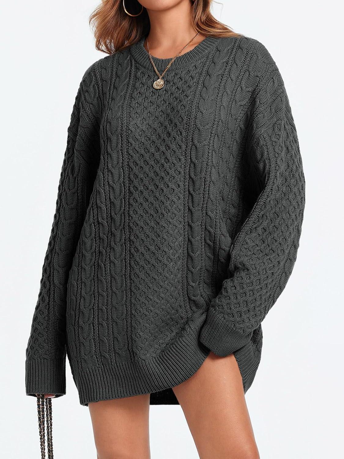 Saodimallsu Womens Oversized Sweaters Chunky Cable Knit Crewneck Long Sleeve Loose Tunic Sweater Tops(Dark Gray)