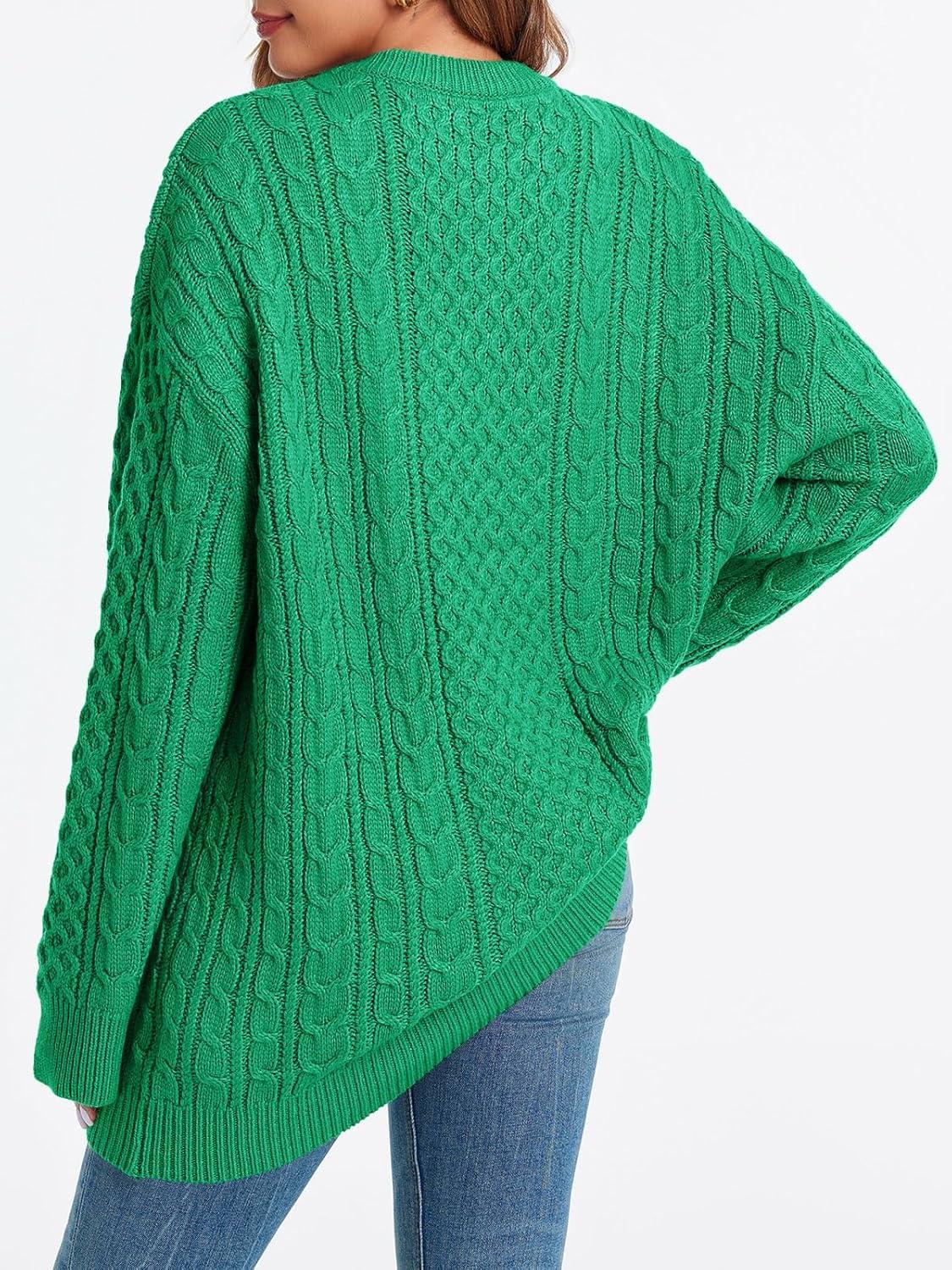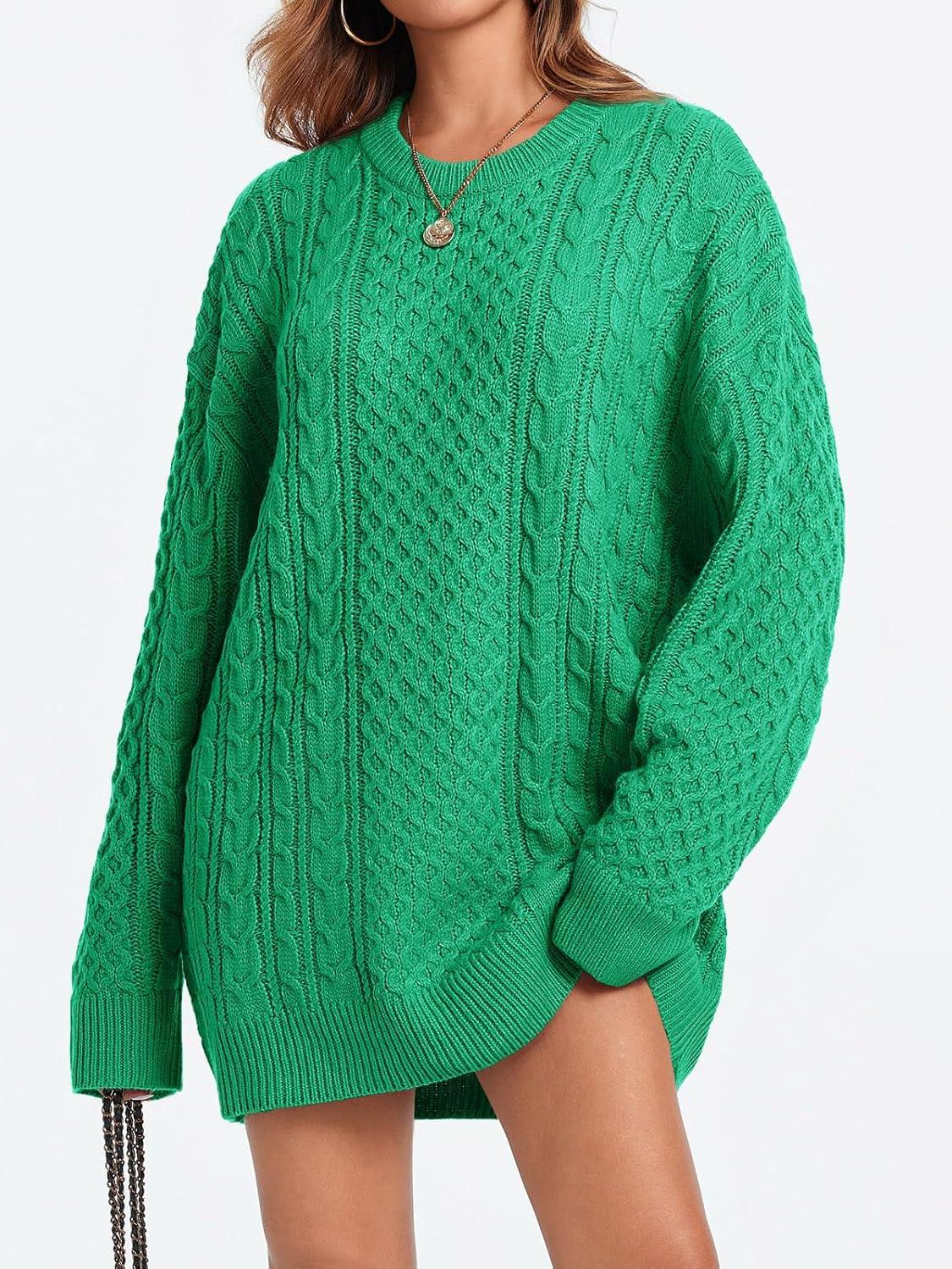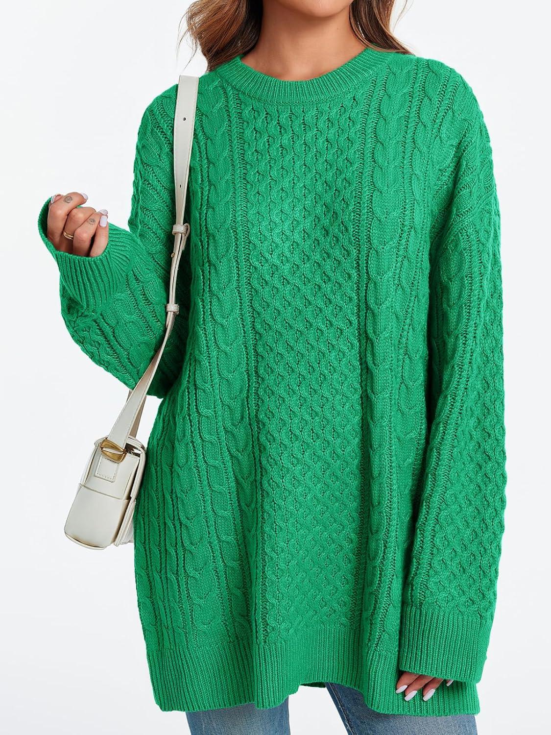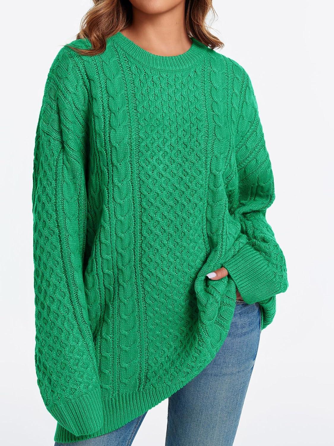 Saodimallsu Womens Oversized Sweaters Chunky Cable Knit Crewneck Long Sleeve Loose Tunic Sweater Tops(Green)