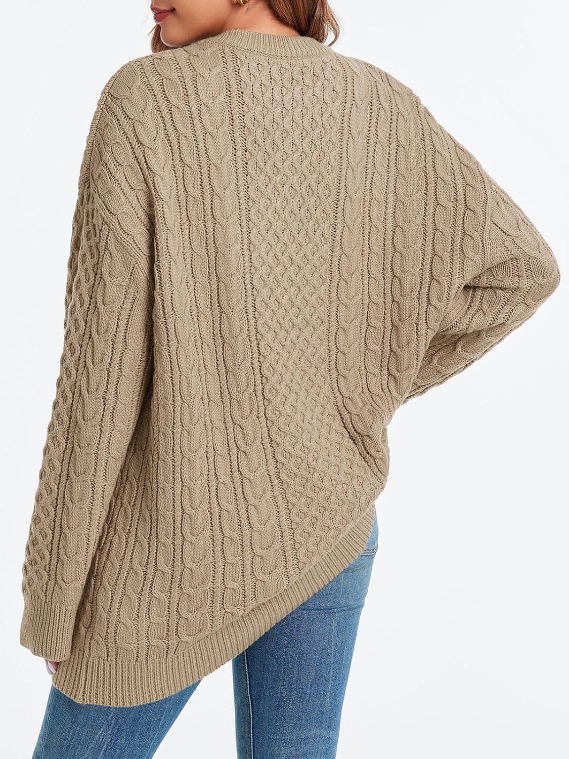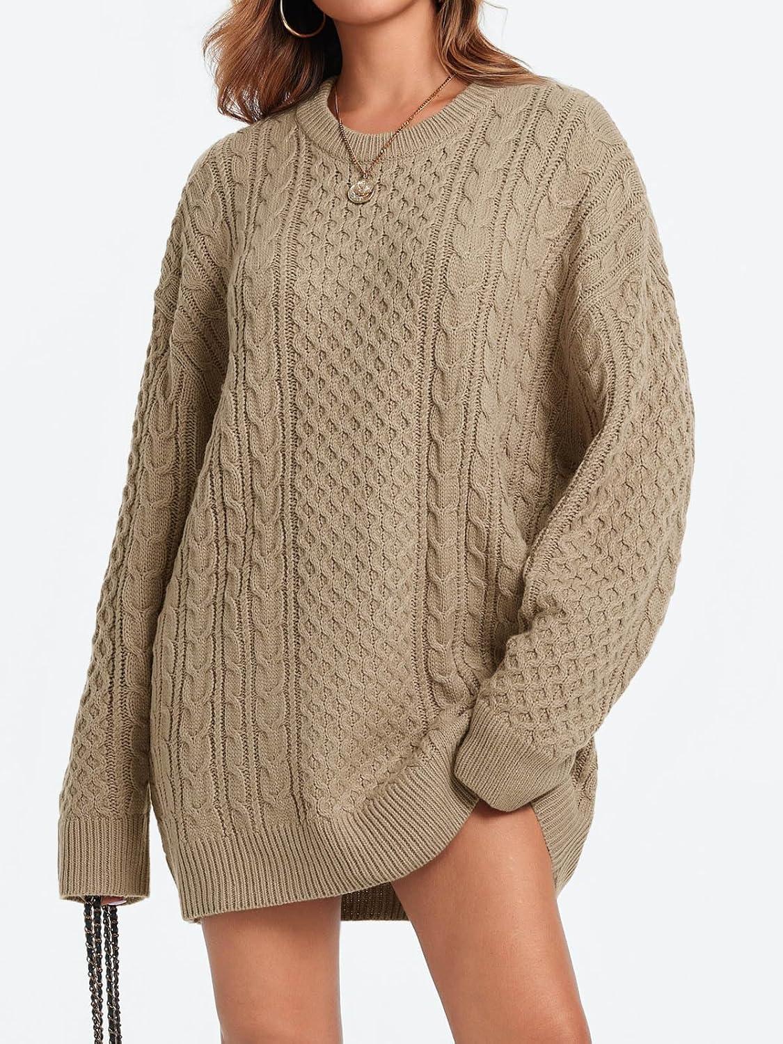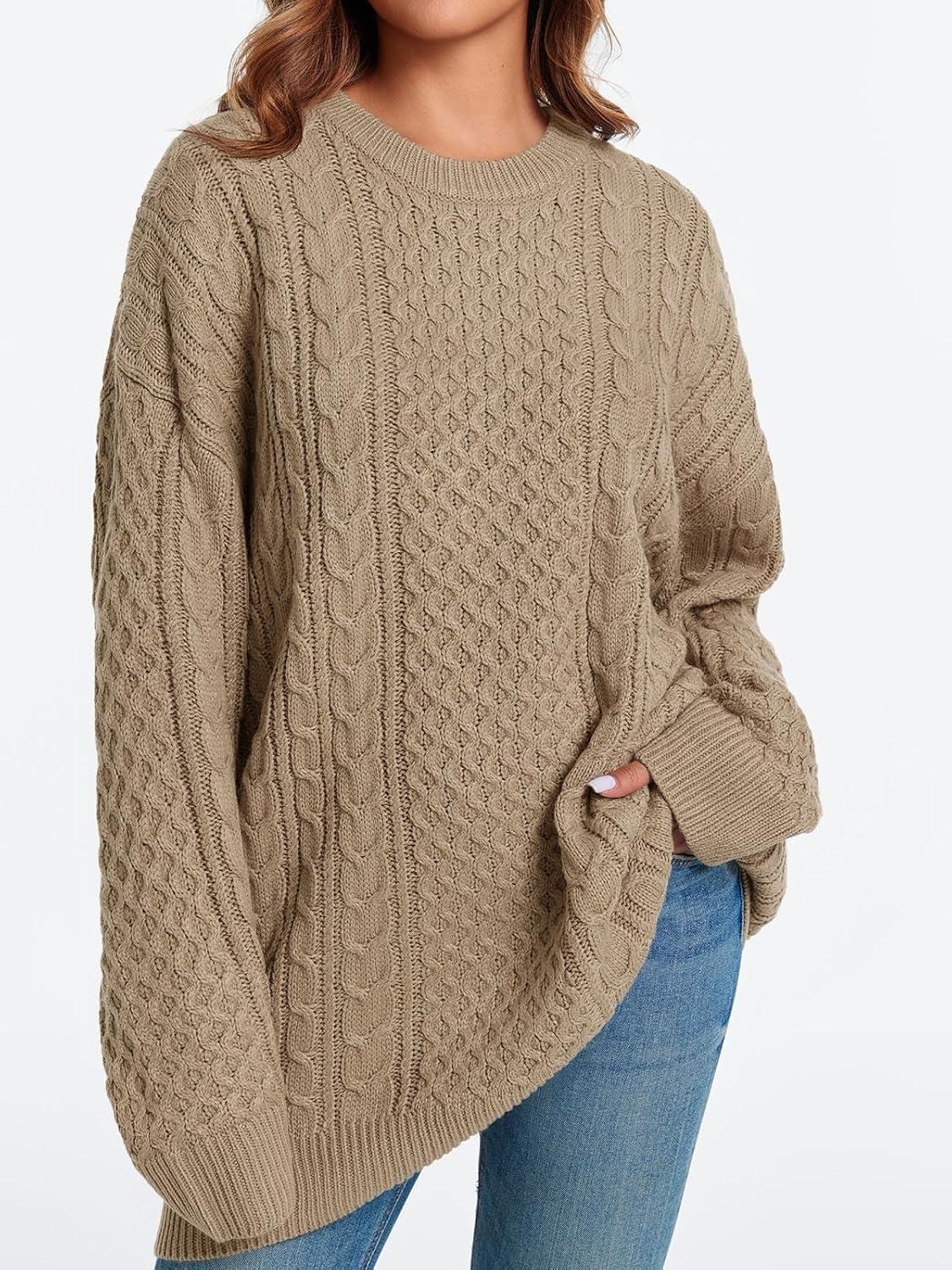 Saodimallsu Womens Oversized Sweaters Chunky Cable Knit Crewneck Long Sleeve Loose Tunic Sweater Tops(Light Coffee)