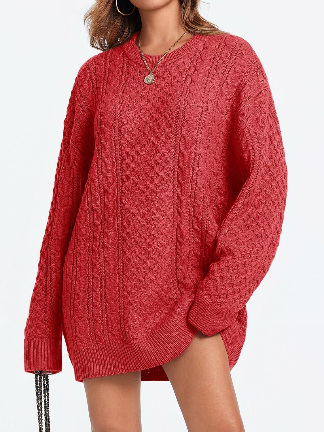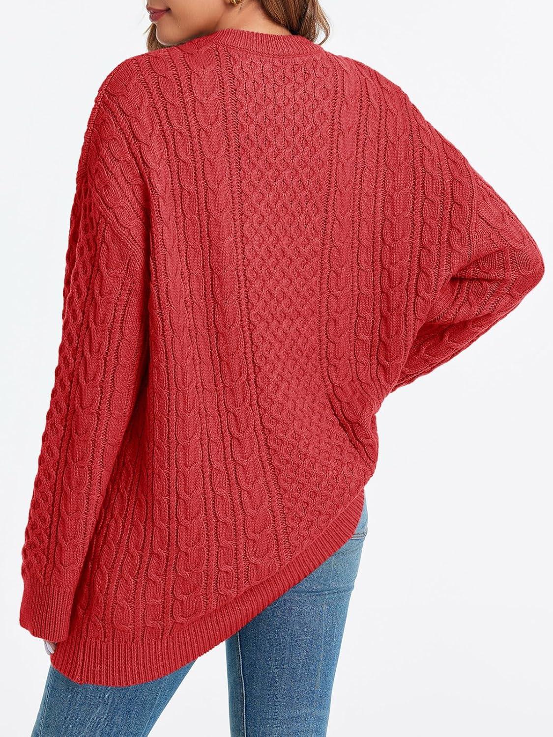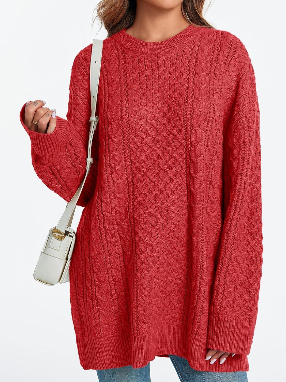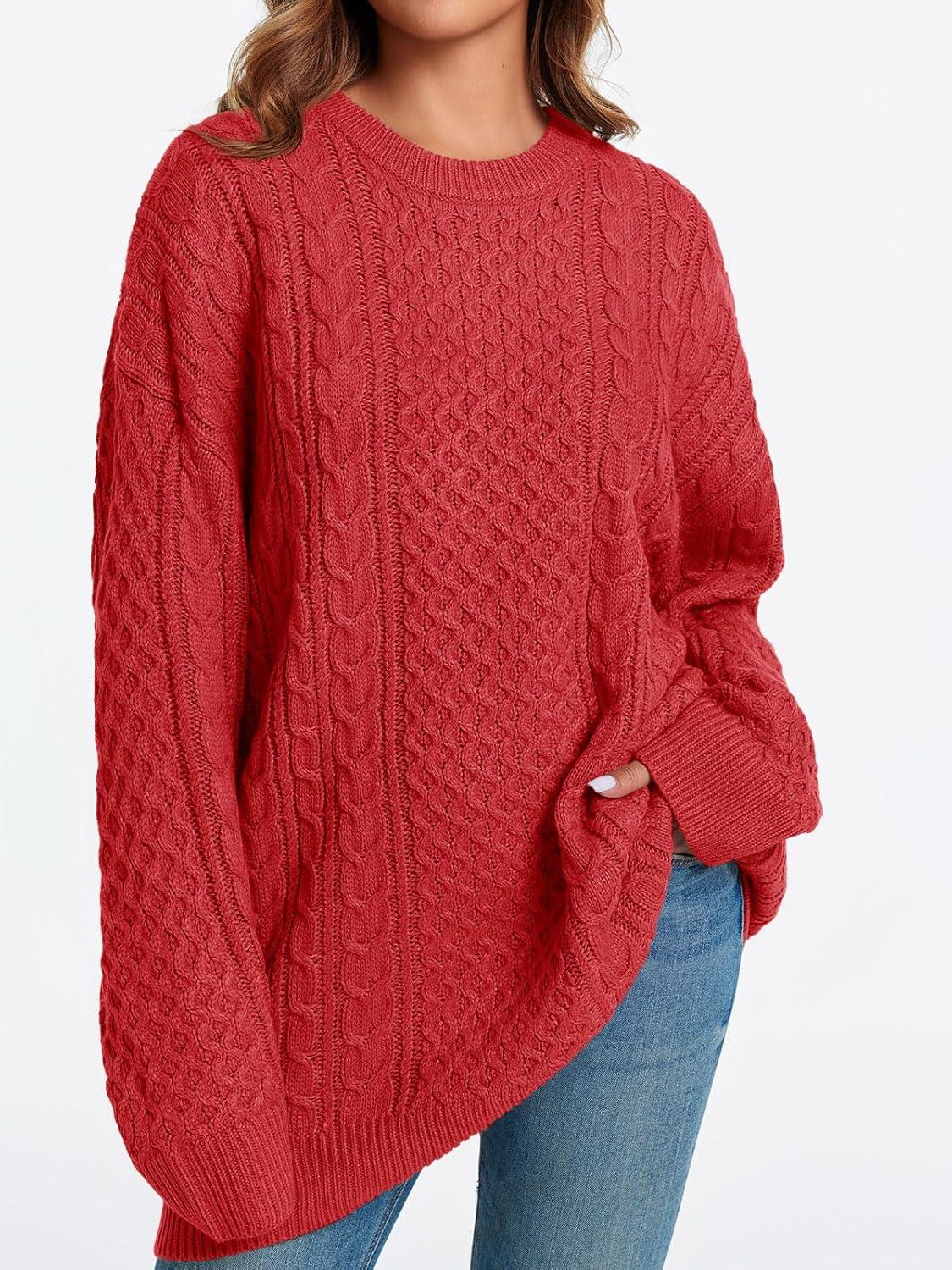 Saodimallsu Womens Oversized Sweaters Chunky Cable Knit Crewneck Long Sleeve Loose Tunic Sweater Tops(Red)