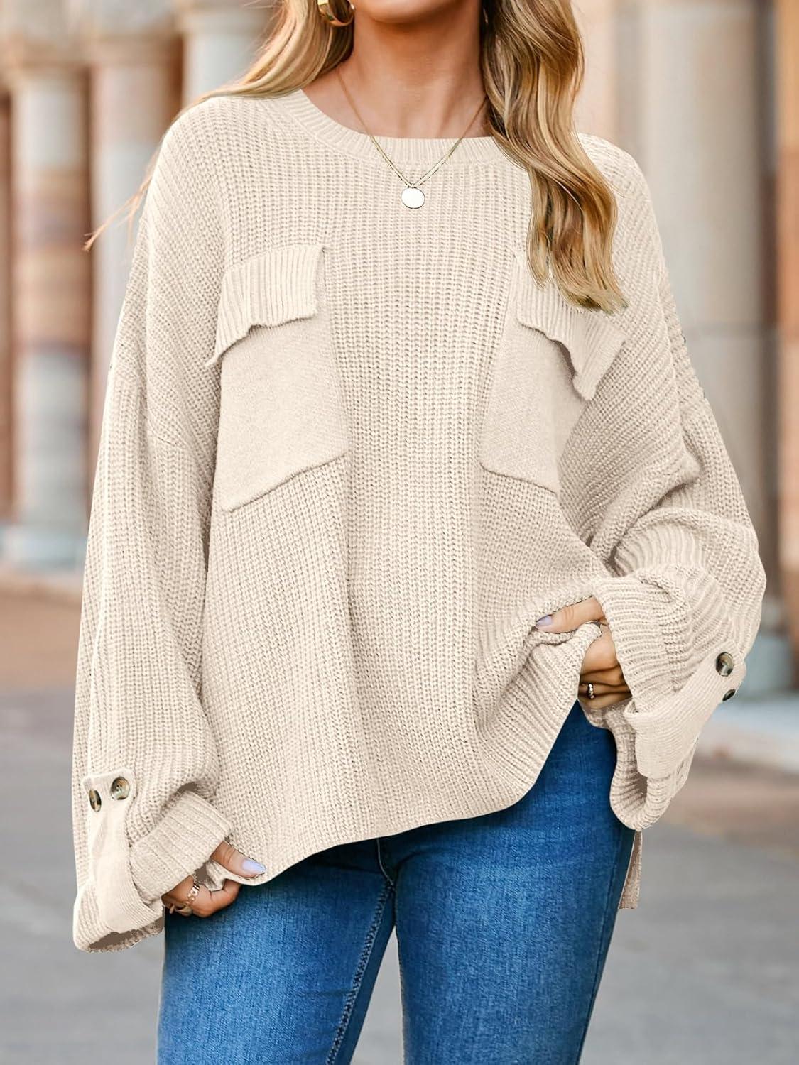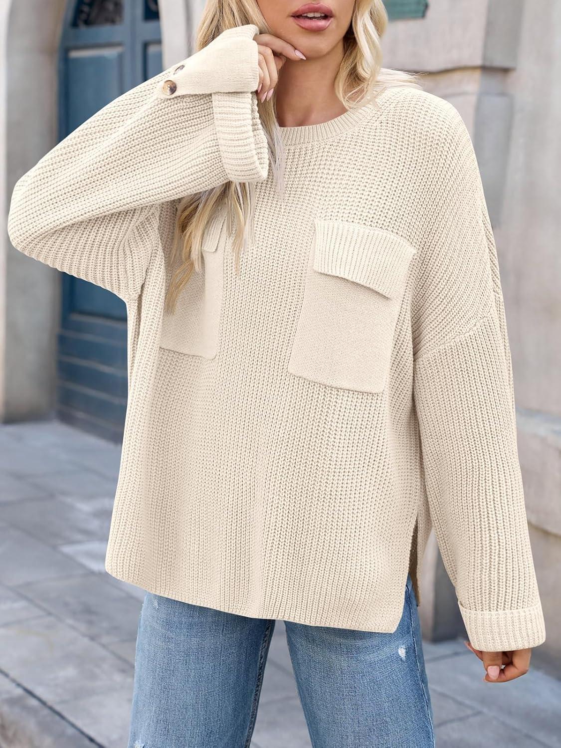 Saodimallsu Womens Oversized Sweaters Chunky Ribbed Knit Crew Neck Casual Long Sleeve Fall Winter Trendy Pullover Tops(Beige)