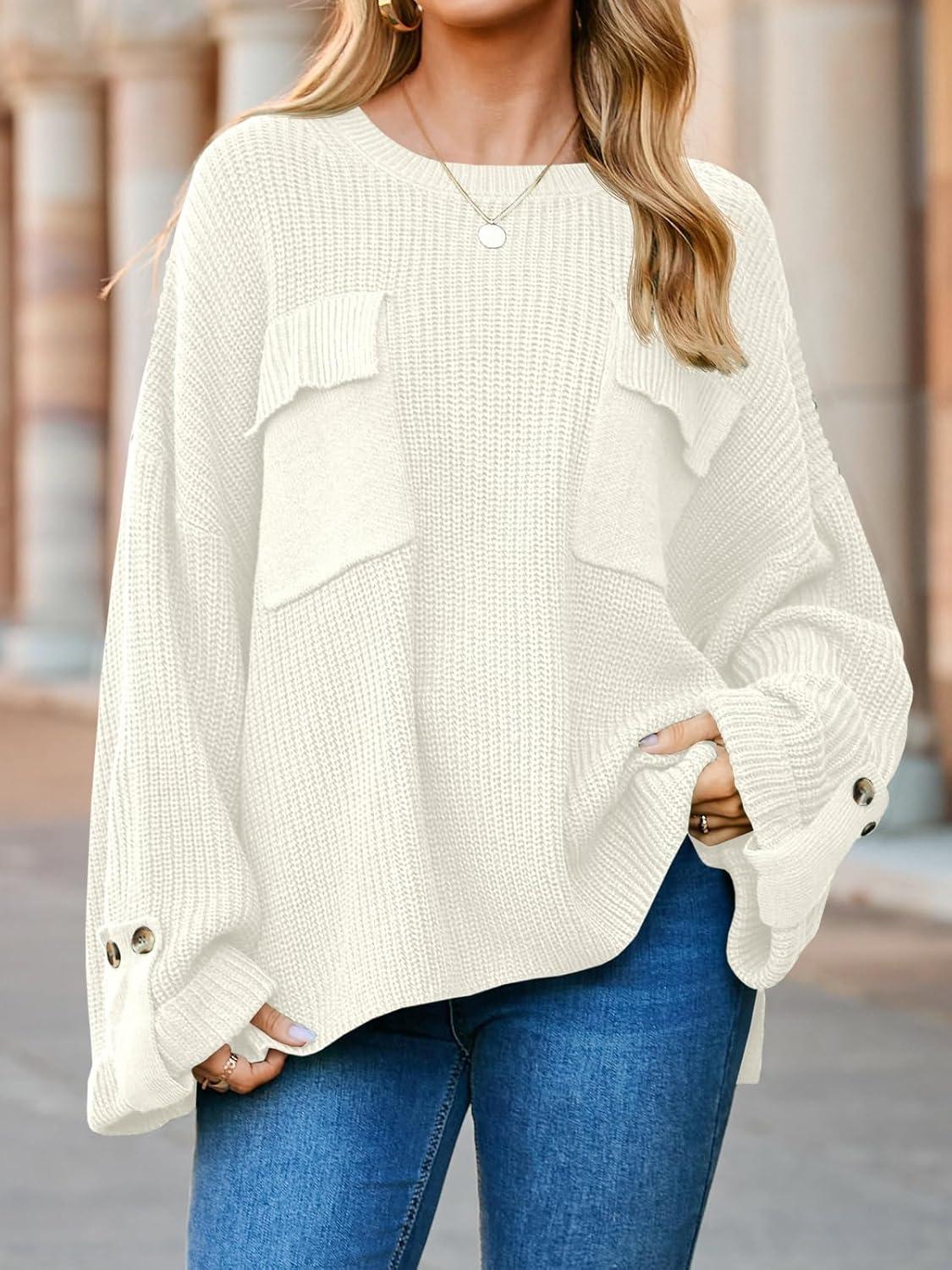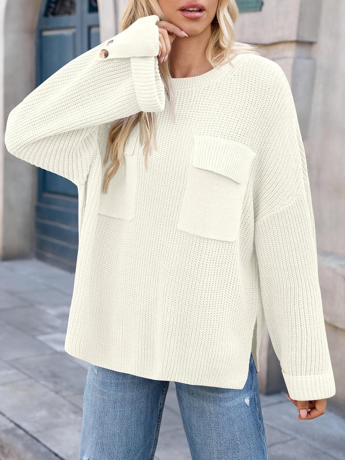 Saodimallsu Womens Oversized Sweaters Chunky Ribbed Knit Crew Neck Casual Long Sleeve Fall Winter Trendy Pullover Tops(White)