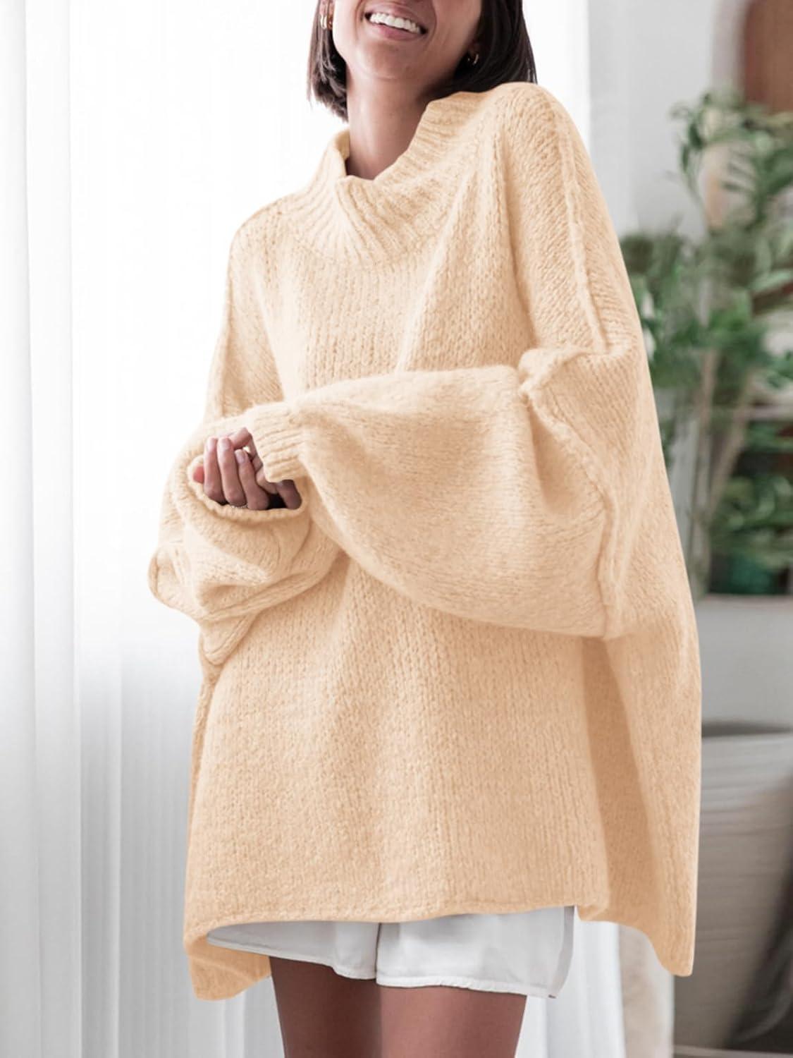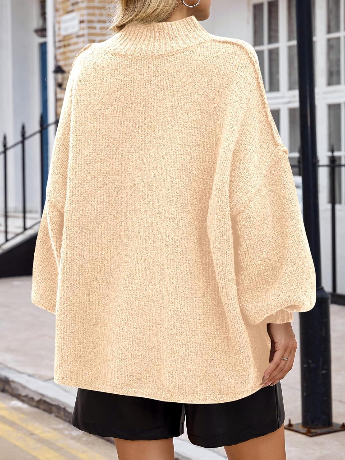 Saodimallsu Womens Oversized Sweaters Mock Neck Batwing Long Sleeve 2025 Fall Trendy Ribbed Knit Casual Tunic Sweater(Beige)