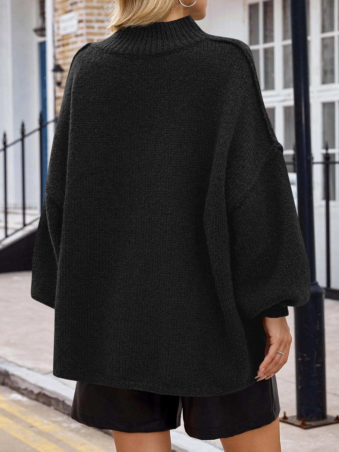 Saodimallsu Womens Oversized Sweaters Mock Neck Batwing Long Sleeve 2025 Fall Trendy Ribbed Knit Casual Tunic Sweater(Black)