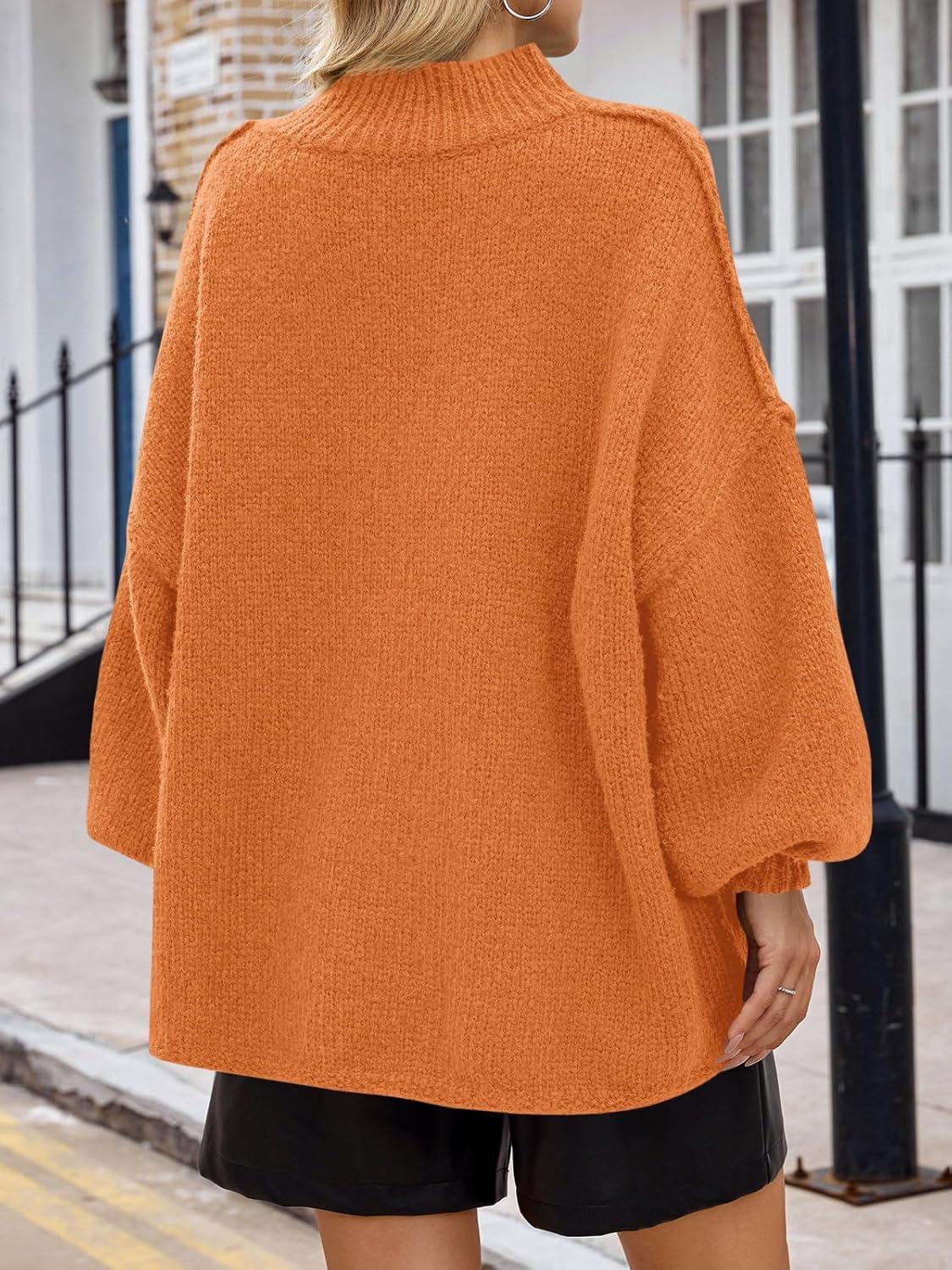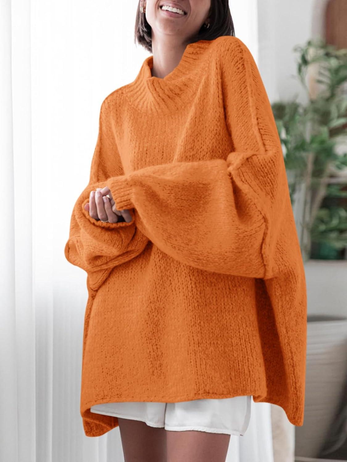 Saodimallsu Womens Oversized Sweaters Mock Neck Batwing Long Sleeve 2025 Fall Trendy Ribbed Knit Casual Tunic Sweater(Orange)