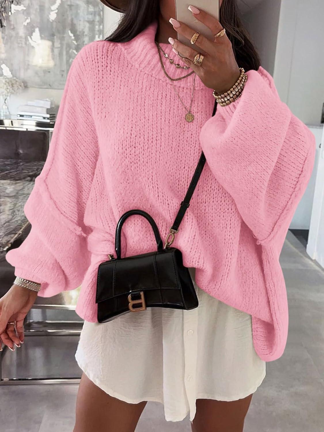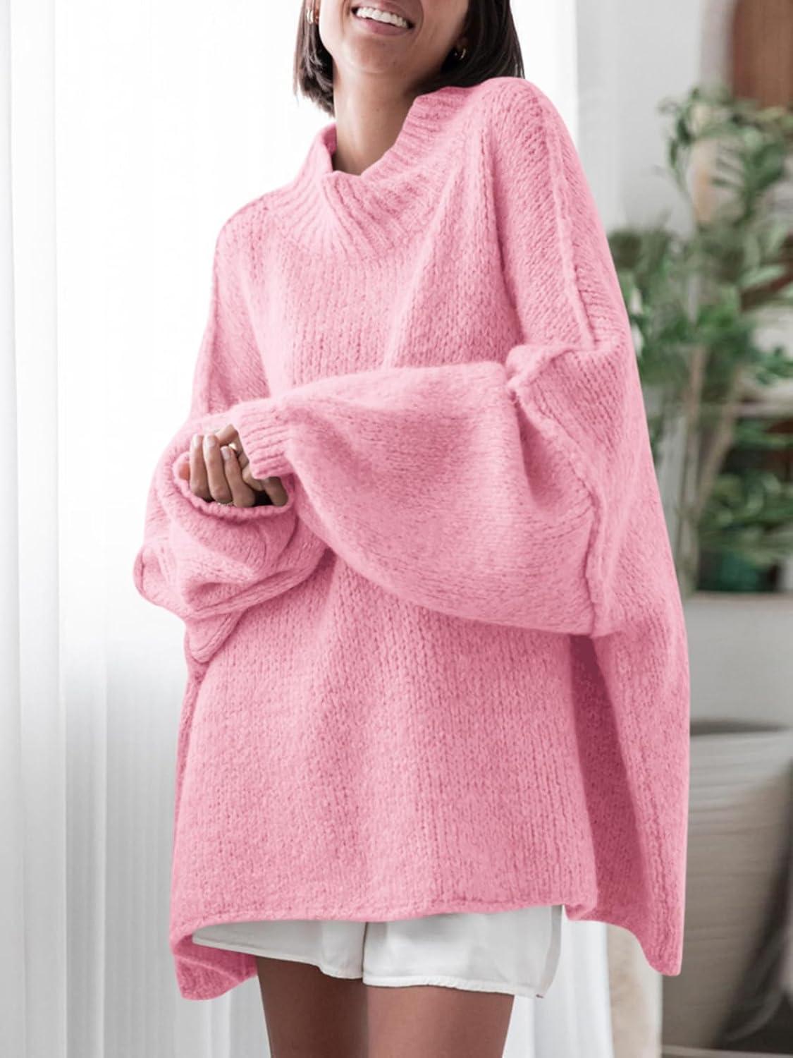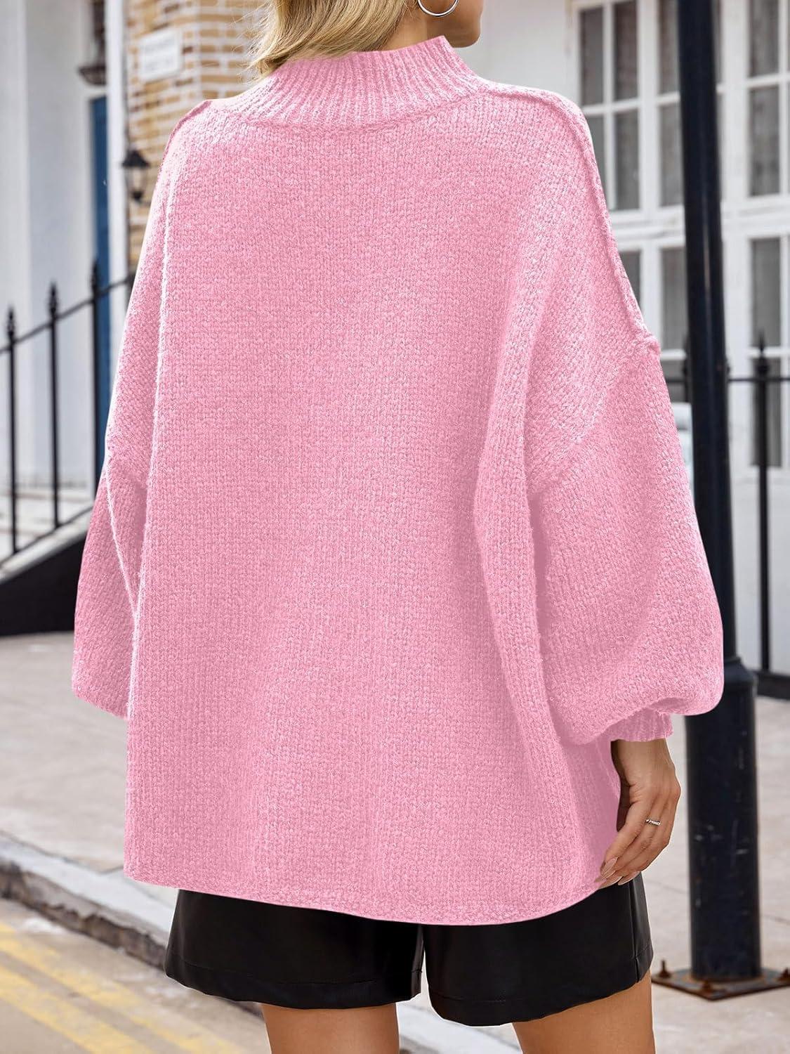 Saodimallsu Womens Oversized Sweaters Mock Neck Batwing Long Sleeve 2025 Fall Trendy Ribbed Knit Casual Tunic Sweater(Pink)
