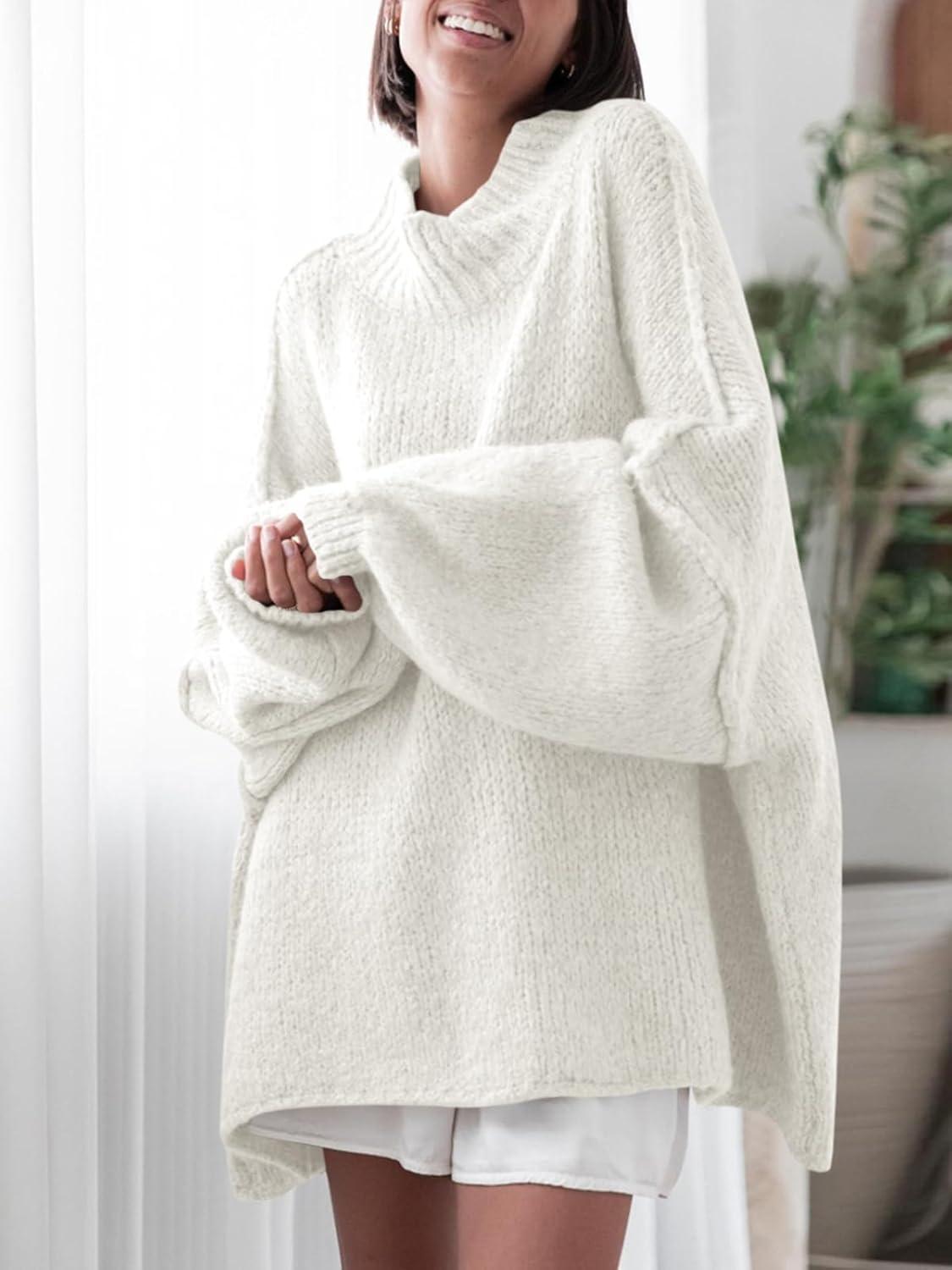 Saodimallsu Womens Oversized Sweaters Mock Neck Batwing Long Sleeve 2025 Fall Trendy Ribbed Knit Casual Tunic Sweater(White)