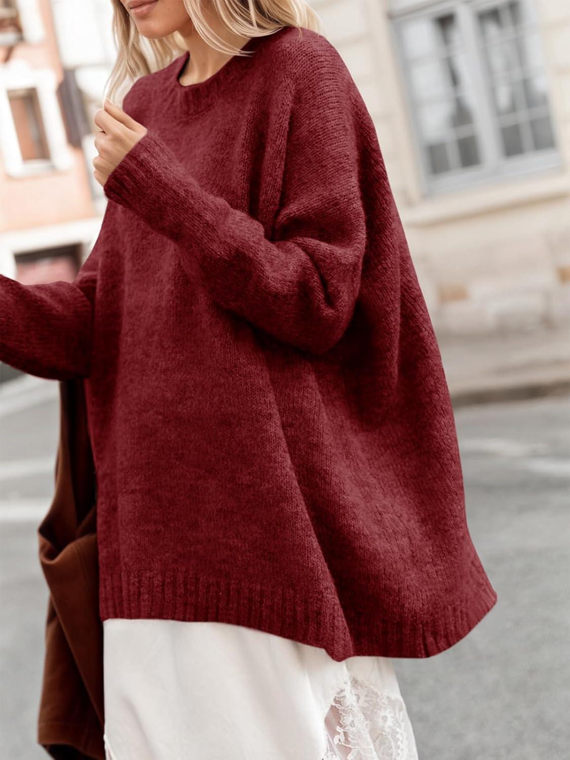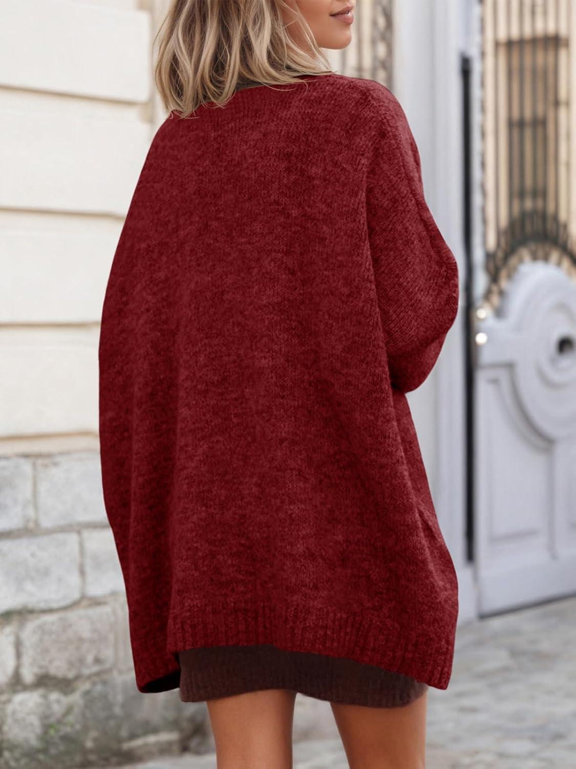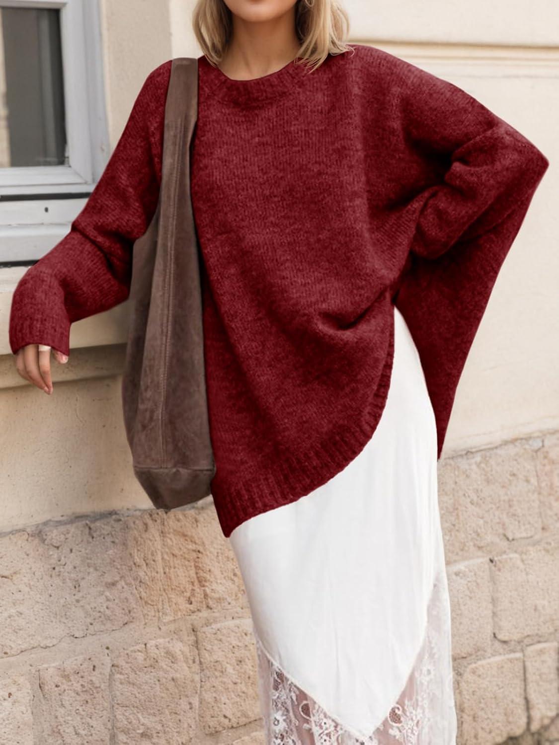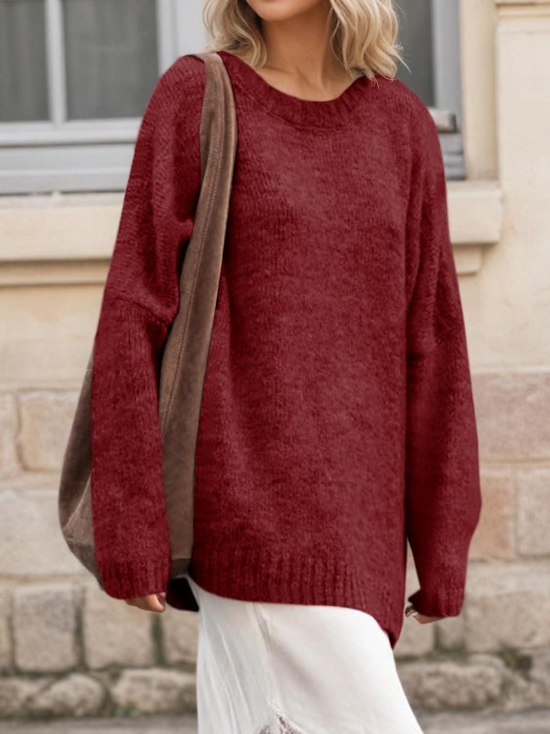 Saodimallsu Womens Oversized Tunic Sweaters Long Sleeve Crew Neck Chunky Knit Slouchy Casual Pullover Sweater Tops(Burgundy)