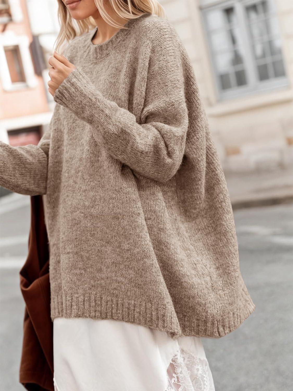 Saodimallsu Womens Oversized Tunic Sweaters Long Sleeve Crew Neck Chunky Knit Slouchy Casual Pullover Sweater Tops(Khaki)