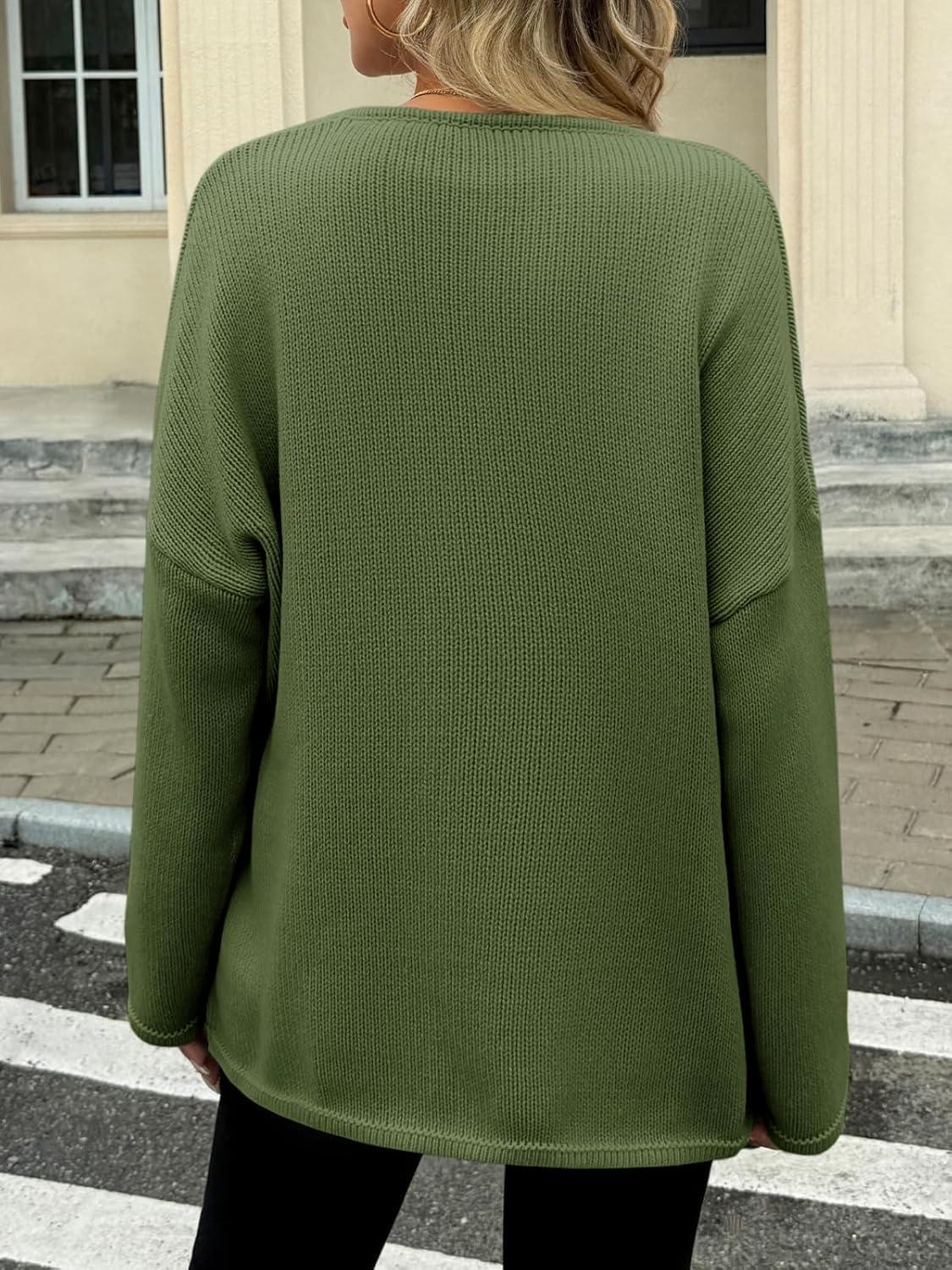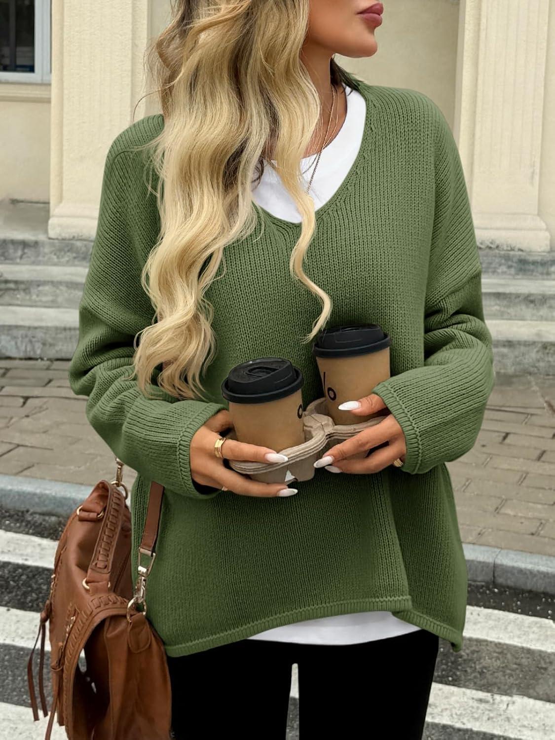 Saodimallsu Womens Oversized V Neck Sweaters Batwing Long Sleeve Knit Fall Slouchy Pullover Sweater Tops(Army Green)