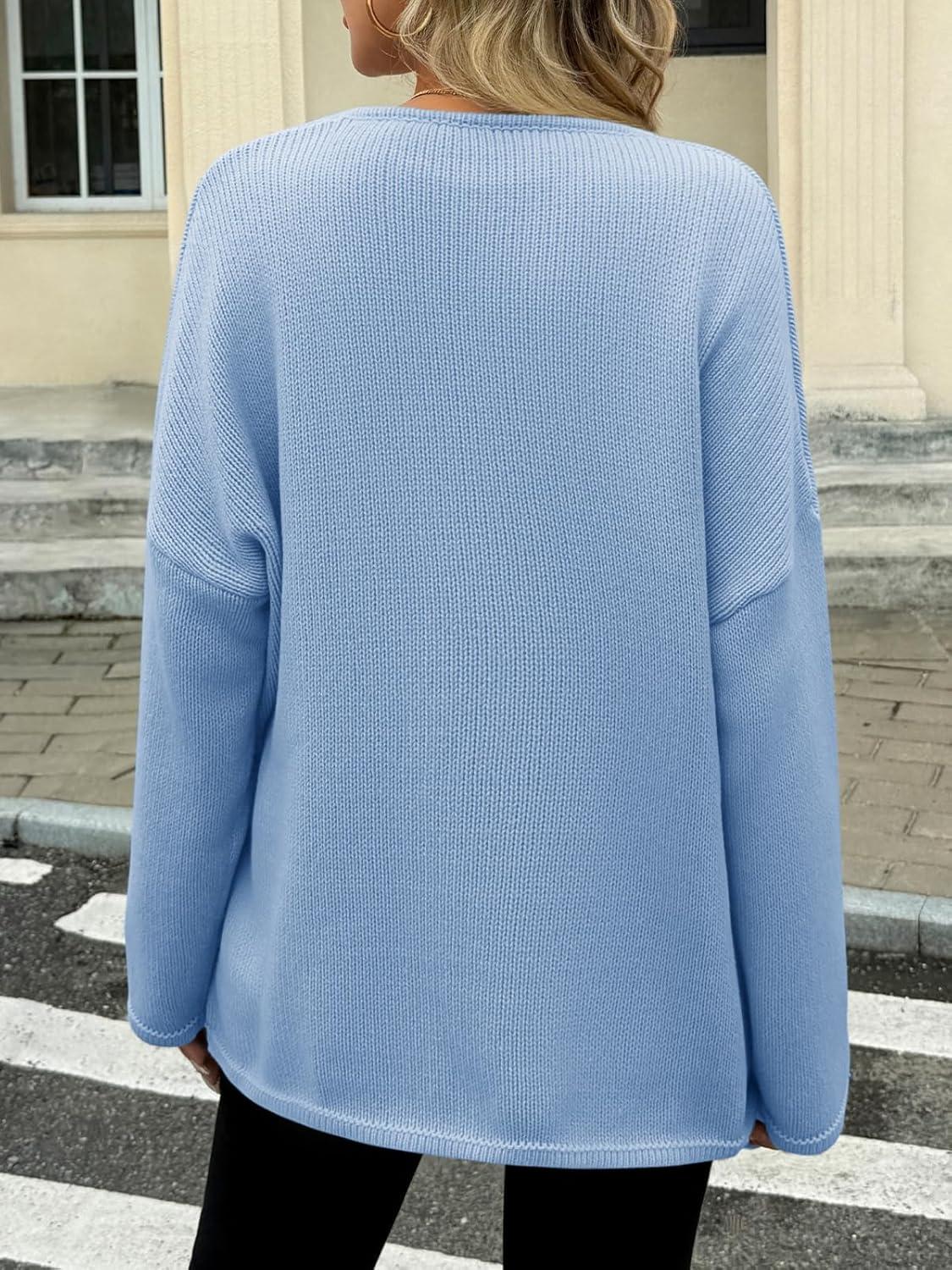 Saodimallsu Womens Oversized V Neck Sweaters Batwing Long Sleeve Knit Fall Slouchy Pullover Sweater Tops(Blue)