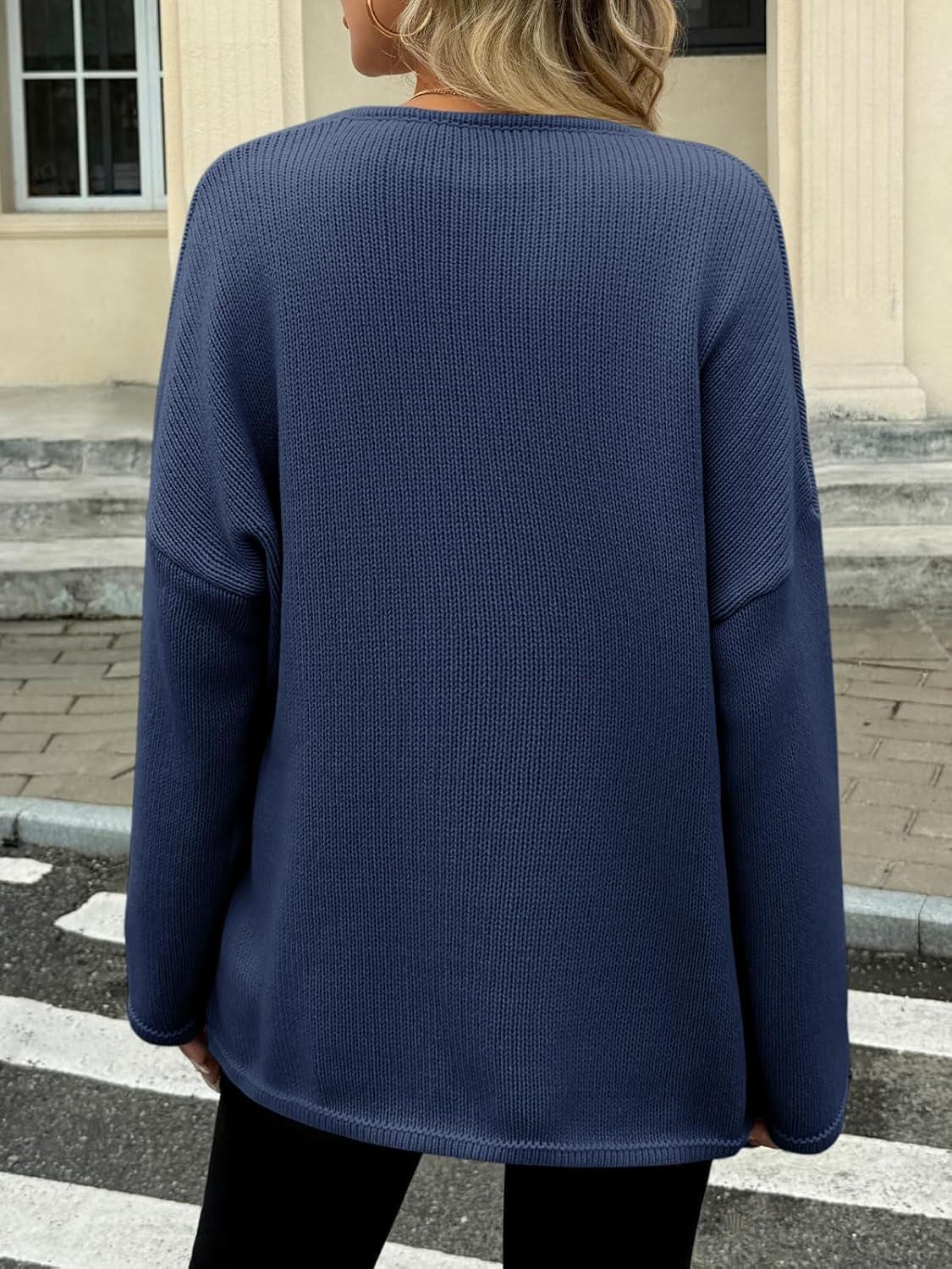 Saodimallsu Womens Oversized V Neck Sweaters Batwing Long Sleeve Knit Fall Slouchy Pullover Sweater Tops(Dark Blue)