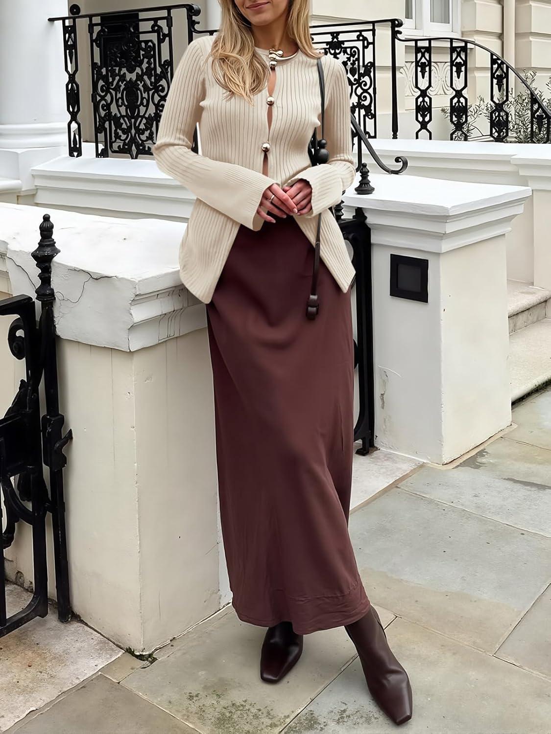Saodimallsu Womens Ribbed Long Sleeve Sweater Tops Button Up Crewneck Slim Fitted Cardigans Sexy Going Out Knit Shirts(Apricot)