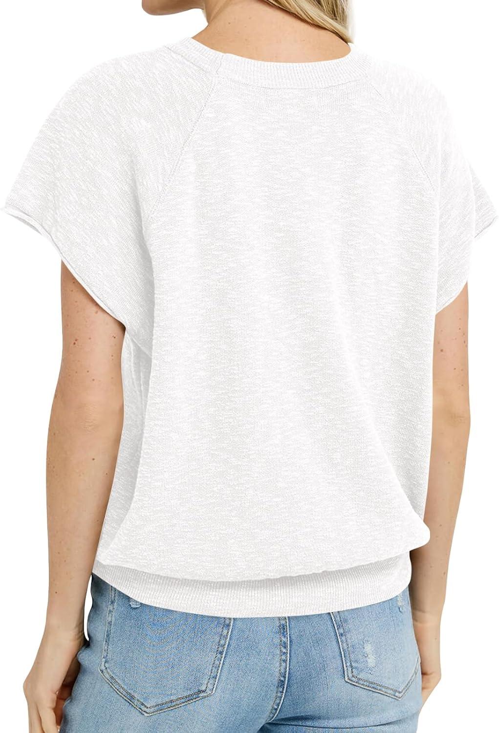 Saodimallsu Womens Short Sleeve Crewneck Sweater Summer Tops Casual Loose Knit Lightweight Basic Pullover Shirts(White)