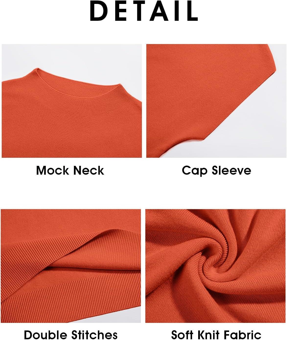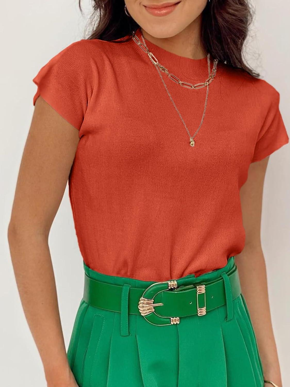 Saodimallsu Womens Short Sleeve Sweater Mock Neck Summer Casual Basic Knit Slim Fitted Pullover Tops Shirt(Orange Red)