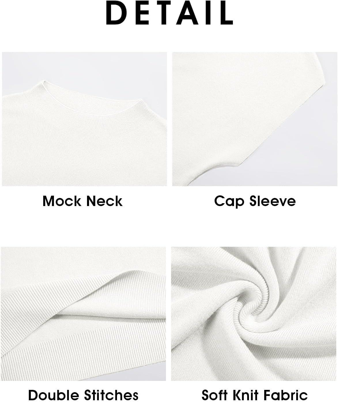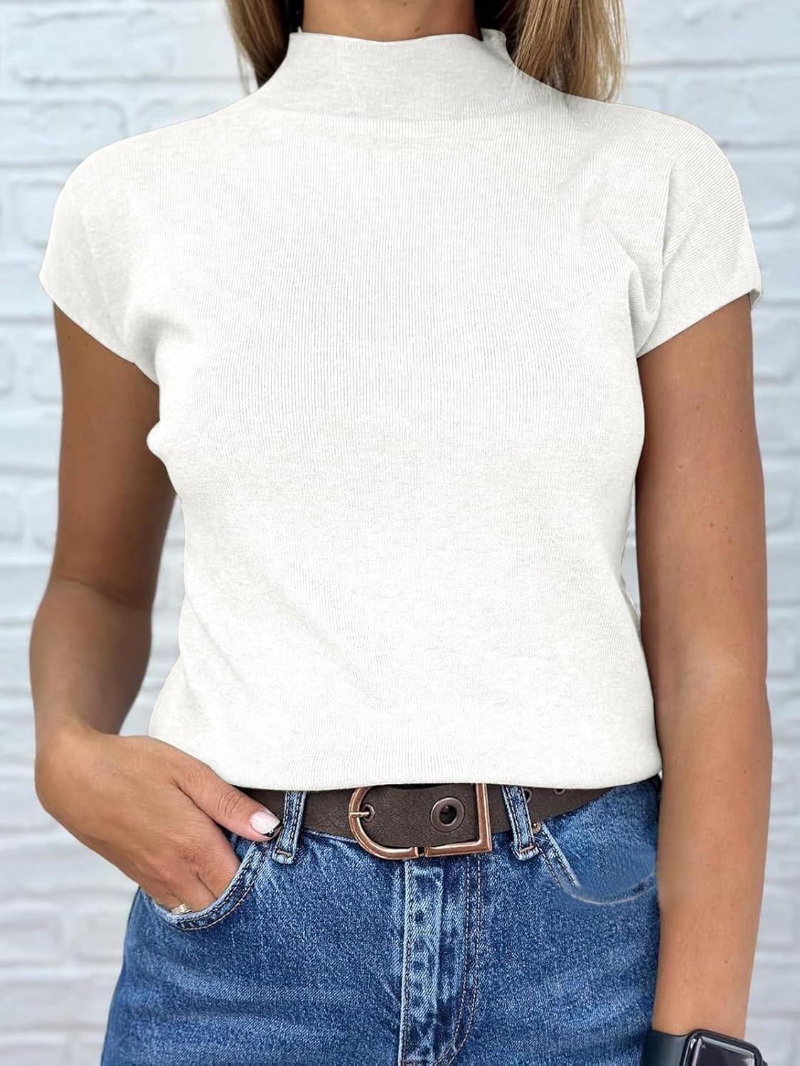 Saodimallsu Womens Short Sleeve Sweater Mock Neck Summer Casual Basic Knit Slim Fitted Pullover Tops Shirt(White)