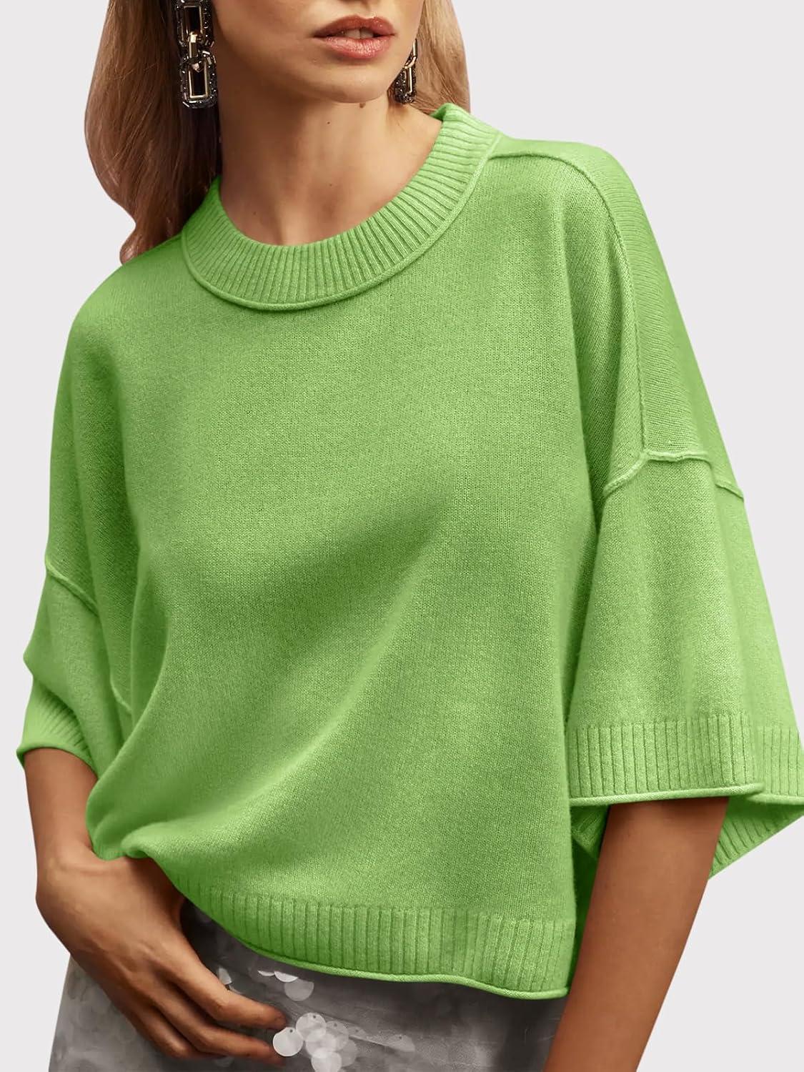 Saodimallsu Womens Short Sleeve Sweater Summer Oversized Cropped Sweaters Casual Crewneck Lightweight Knit Tops(Grass Green)