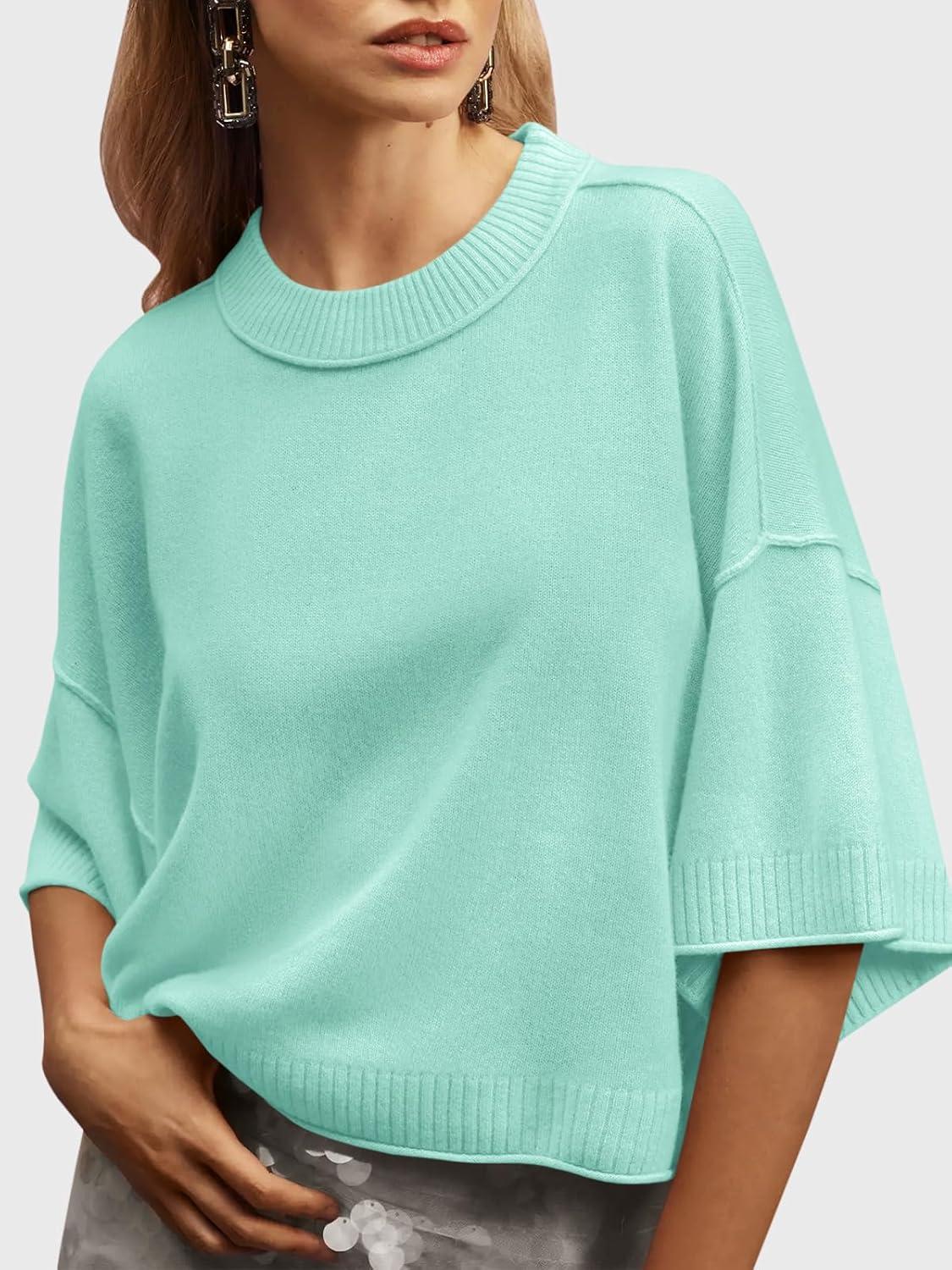 Saodimallsu Womens Short Sleeve Sweater Summer Oversized Cropped Sweaters Casual Crewneck Lightweight Knit Tops(Mint Green)