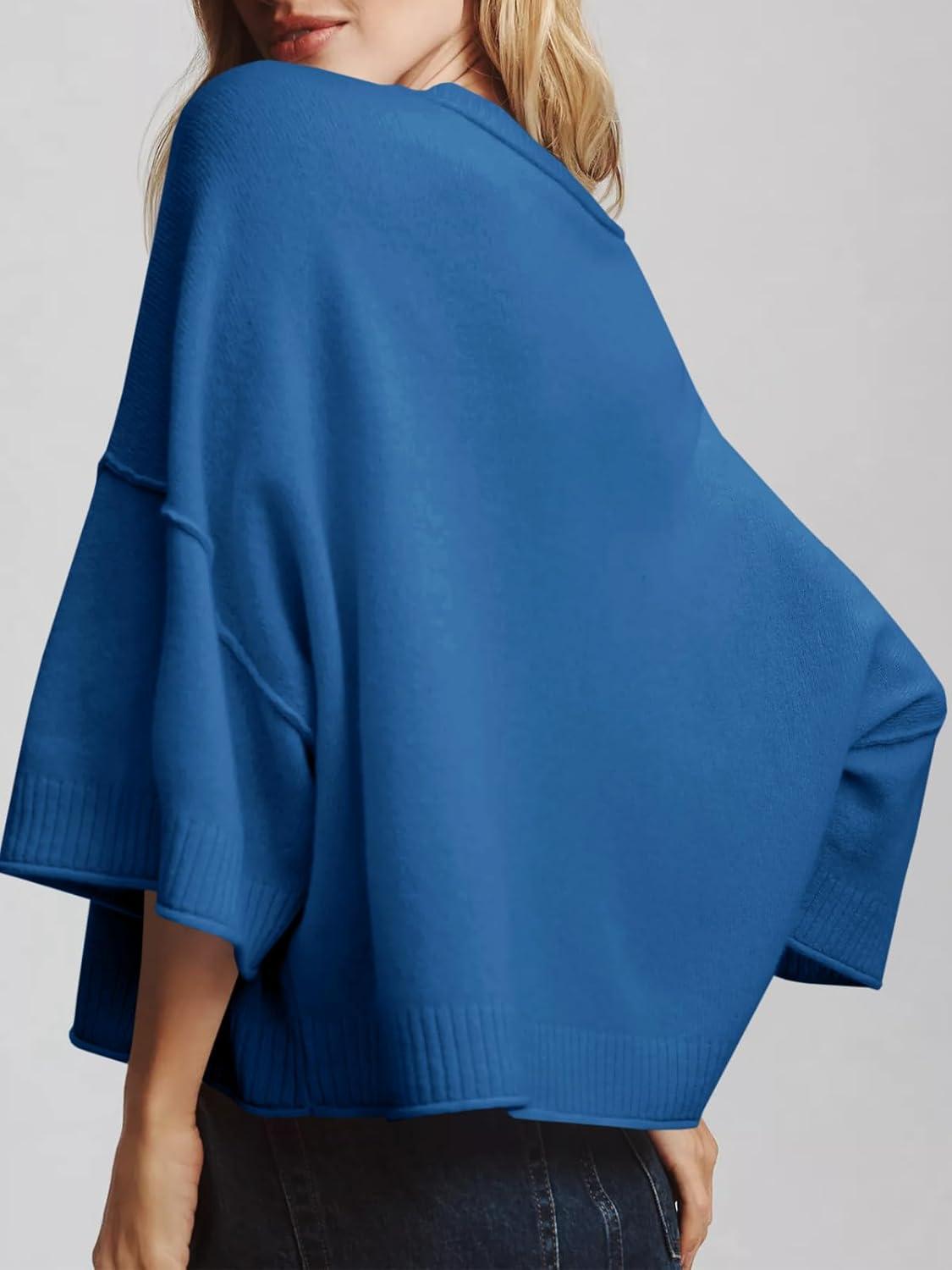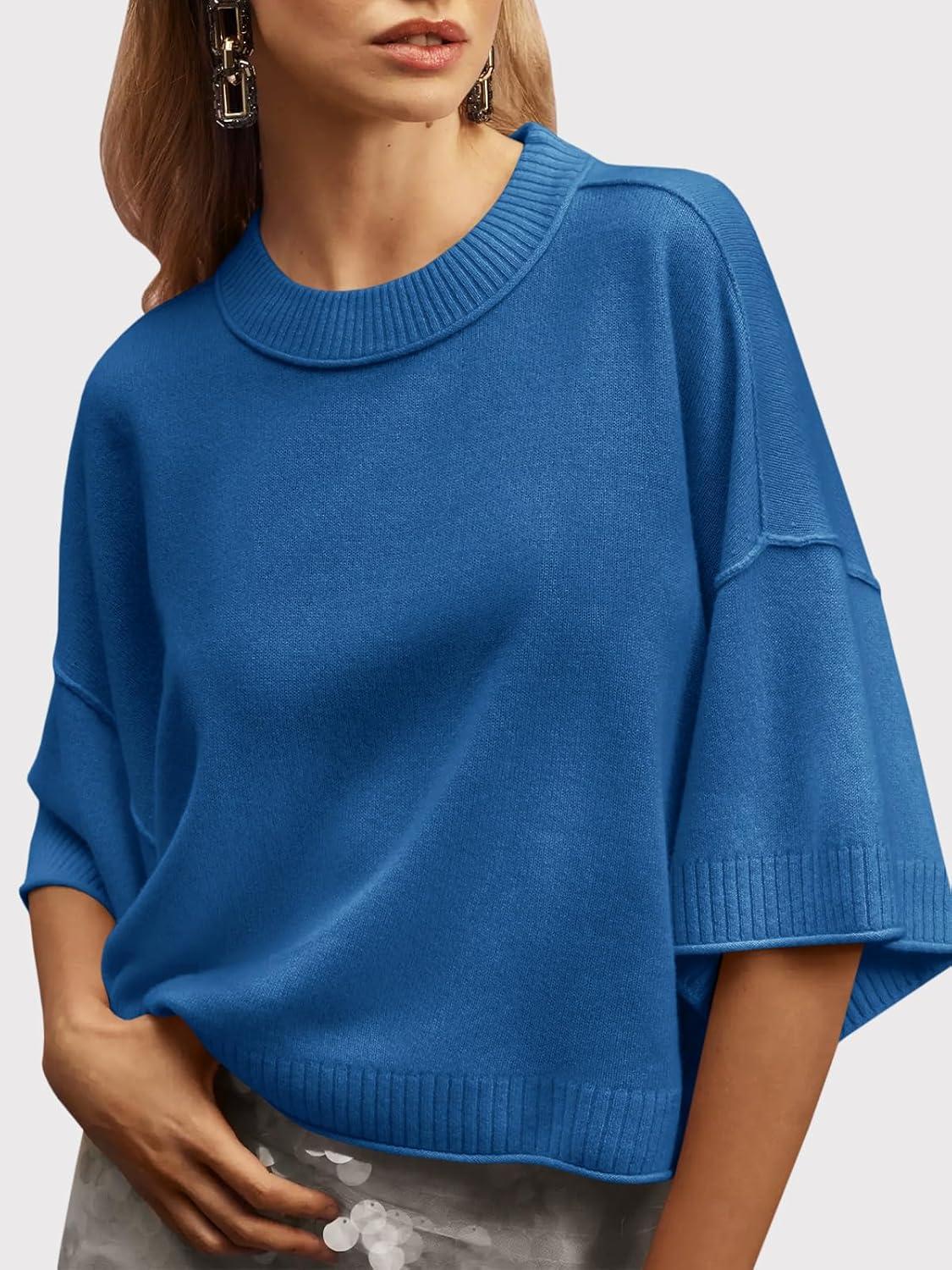 Saodimallsu Womens Short Sleeve Sweater Summer Oversized Cropped Sweaters Casual Crewneck Lightweight Knit Tops(Navy Blue)