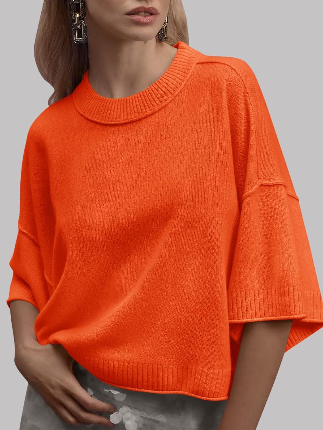 Saodimallsu Womens Short Sleeve Sweater Summer Oversized Cropped Sweaters Casual Crewneck Lightweight Knit Tops(Orange)