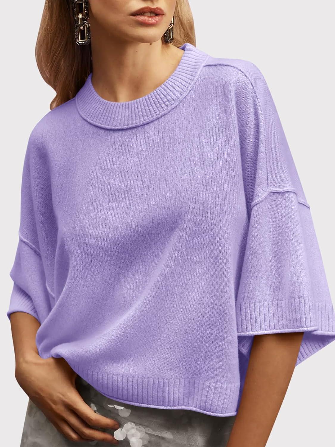 Saodimallsu Womens Short Sleeve Sweater Summer Oversized Cropped Sweaters Casual Crewneck Lightweight Knit Tops(Purple)