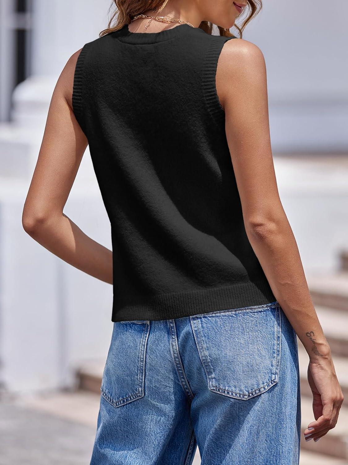 Saodimallsu Womens Sleeveless Sweater Vest Button V Neck Knit Trendy Casual Summer Cardigan with Pockets(Black)