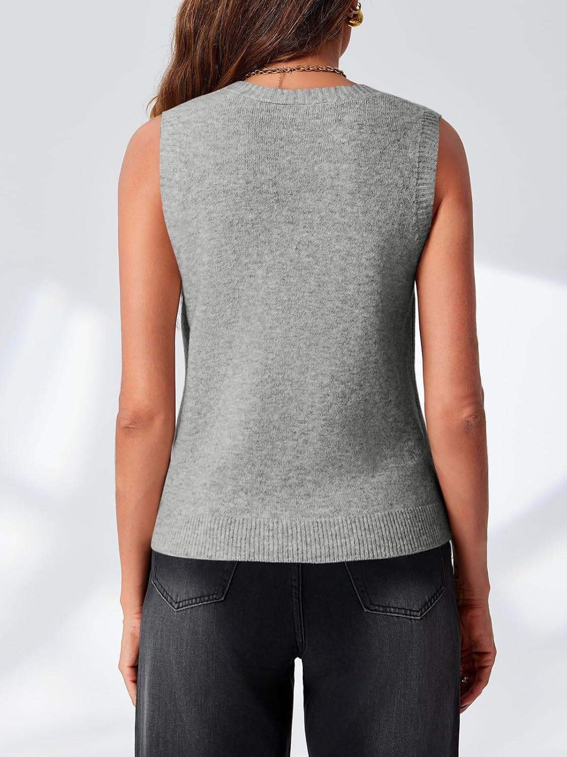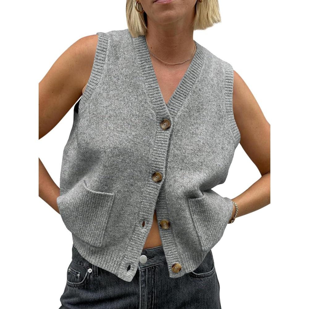 Saodimallsu Womens Sleeveless Sweater Vest Button V Neck Knit Trendy Casual Summer Cardigan with Pockets(Grey)