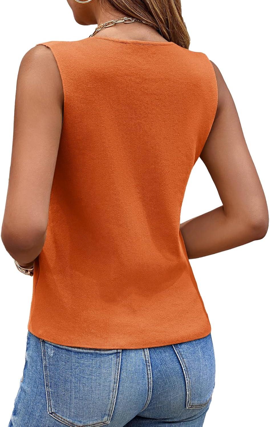 Saodimallsu Womens Sleeveless Sweater Vest Knit V Neck Button Fashion Casual Loose Spring Summer Waistcoat Cardigan(Brick Red)