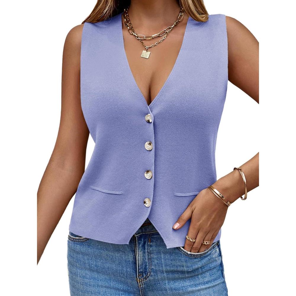 Saodimallsu Womens Sleeveless Sweater Vest Knit V Neck Button Fashion Casual Loose Spring Summer Waistcoat Cardigan(Lavender)