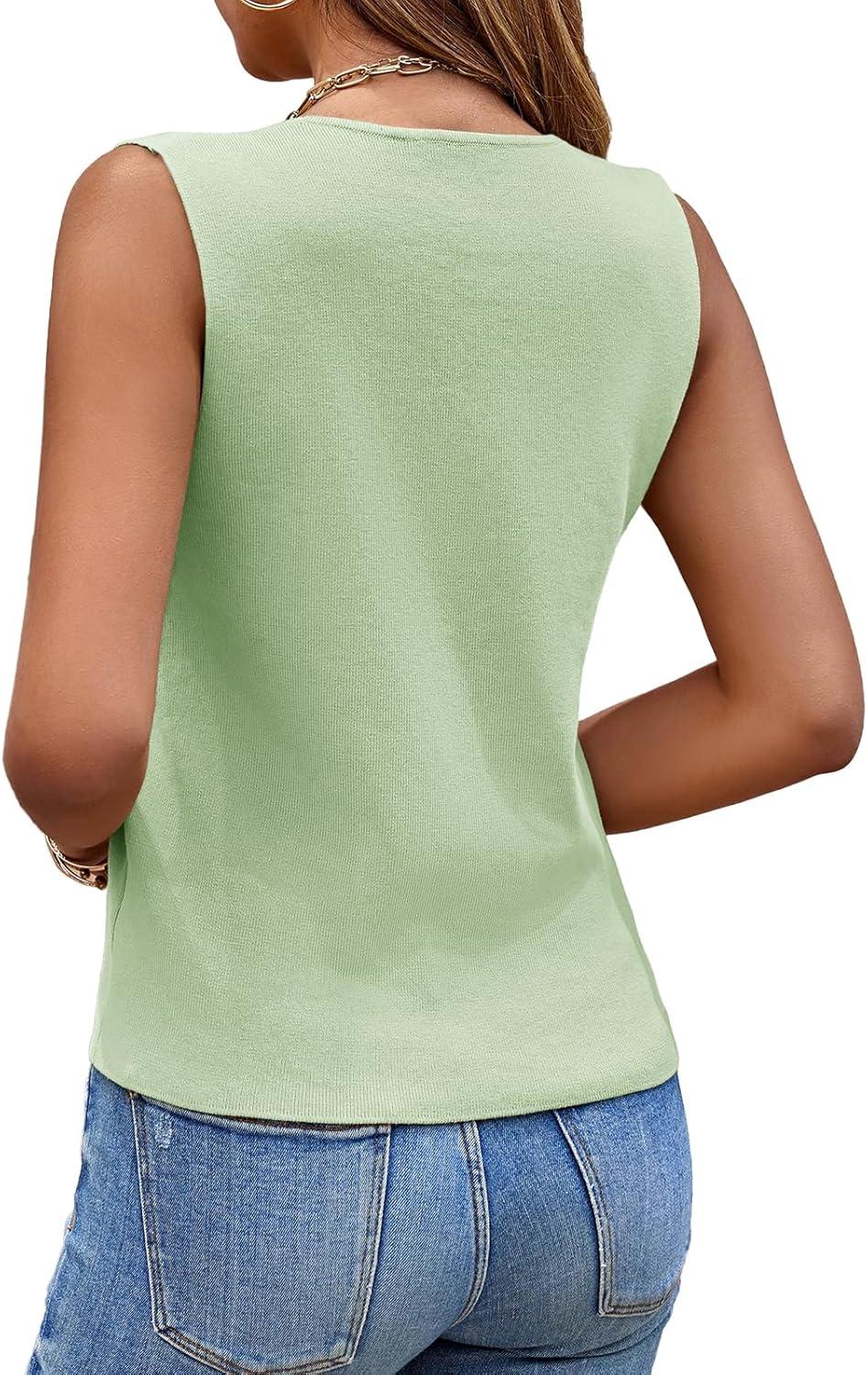 Saodimallsu Womens Sleeveless Sweater Vest Knit V Neck Button Fashion Casual Loose Spring Summer Waistcoat Cardigan(Mint Color)