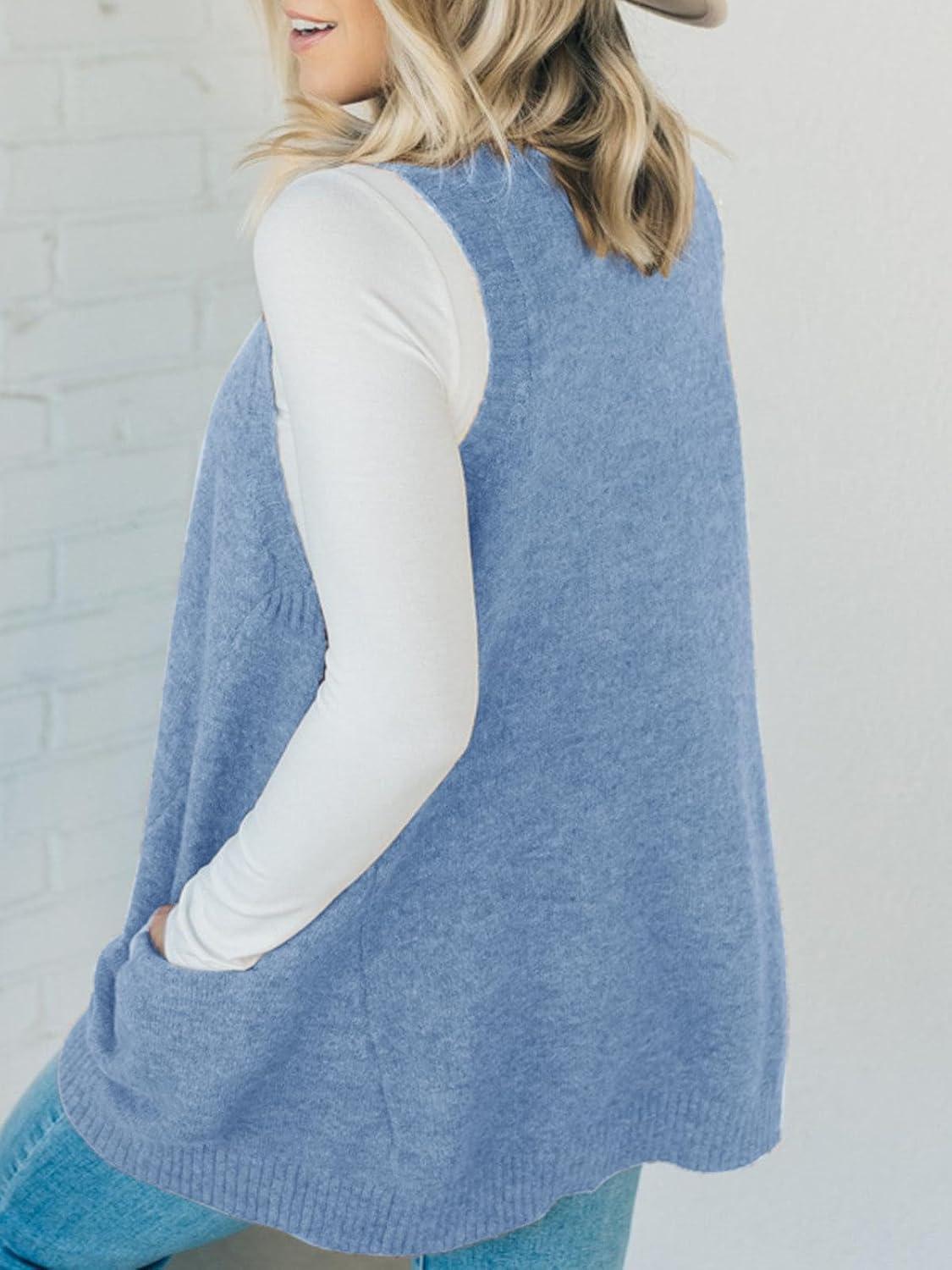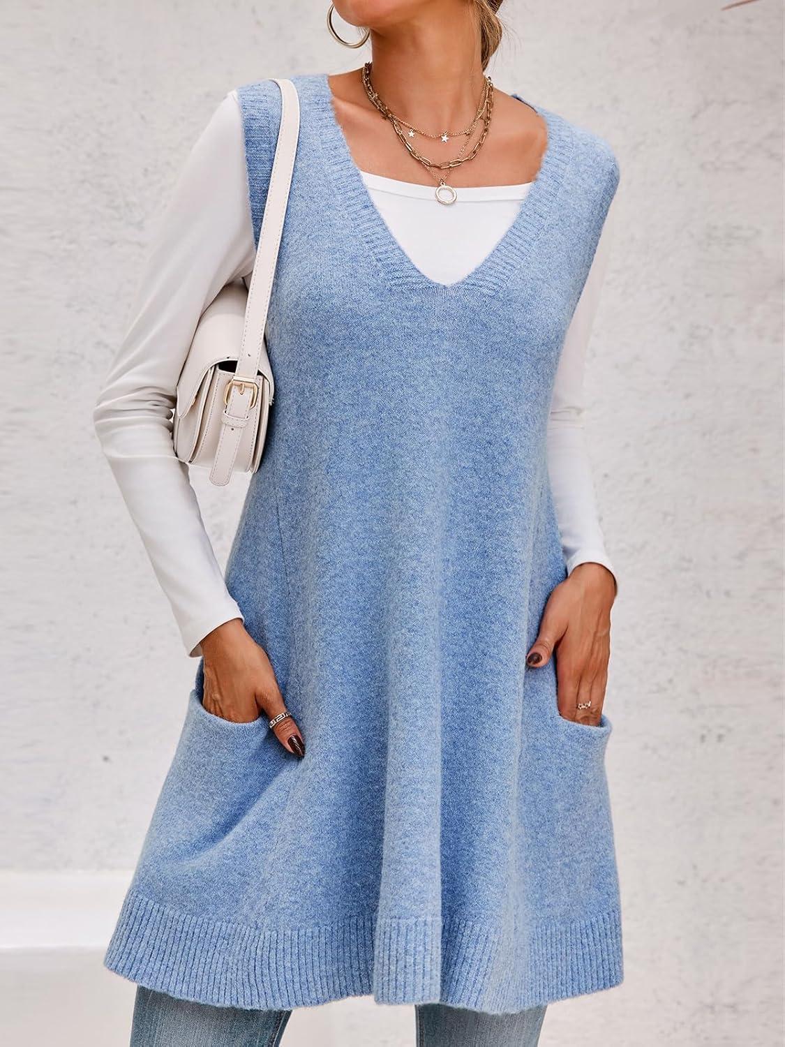 Saodimallsu Womens Sleeveless Sweater Vest V Neck Casual Loose Knit A Line Flattering Tunic Top with Pockets(Blue)